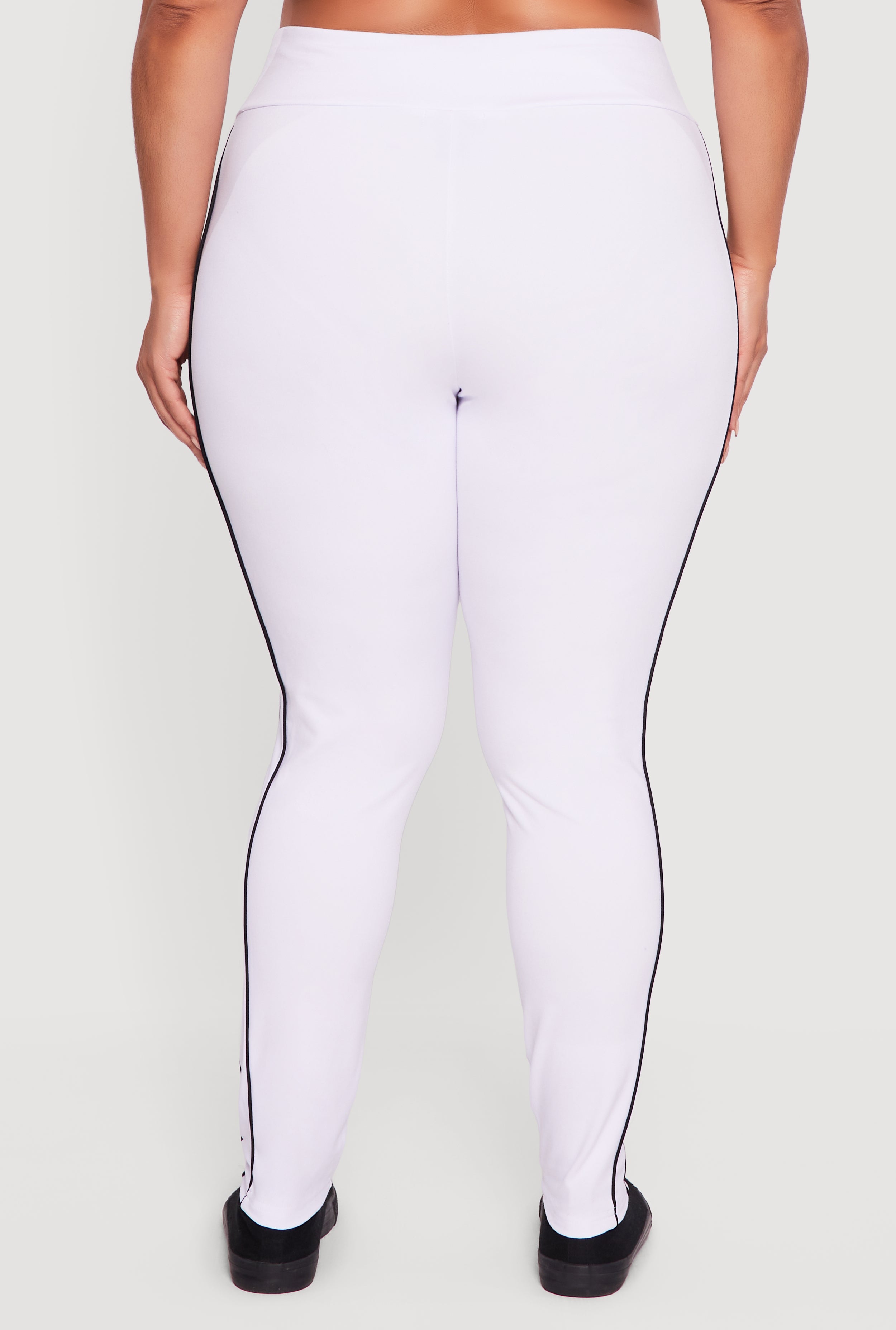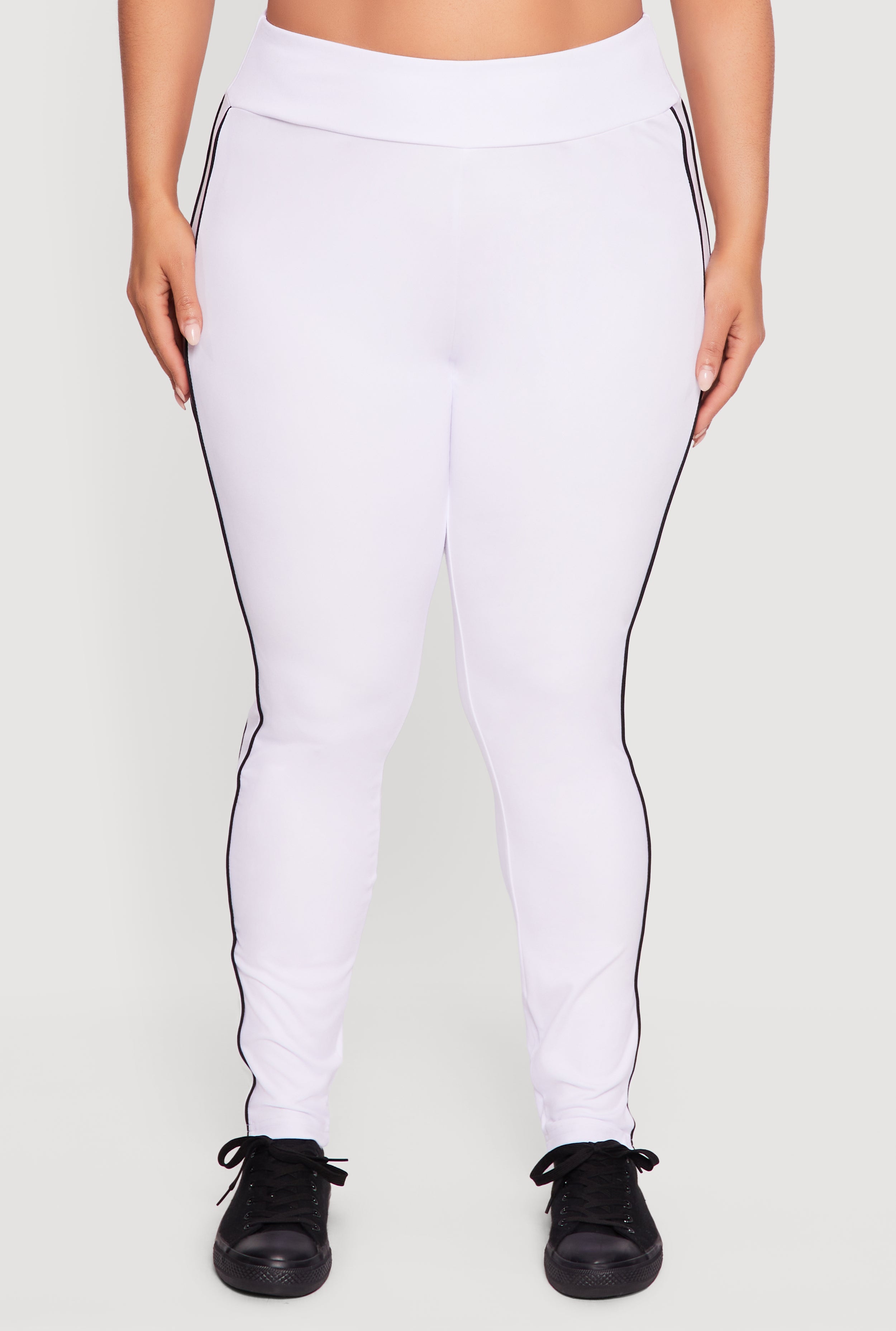 Step up your casual game with these Plus Size High Waisted Contrast Piping Side Leggings designed to flatter and move with you. Featuring a high-waisted fit and sleek skinny leg silhouette, these leggings bring a sporty edge with contrast piping down the sides. Perfect for lounging, running errands, or light workouts, they blend comfort and style effortlessly.