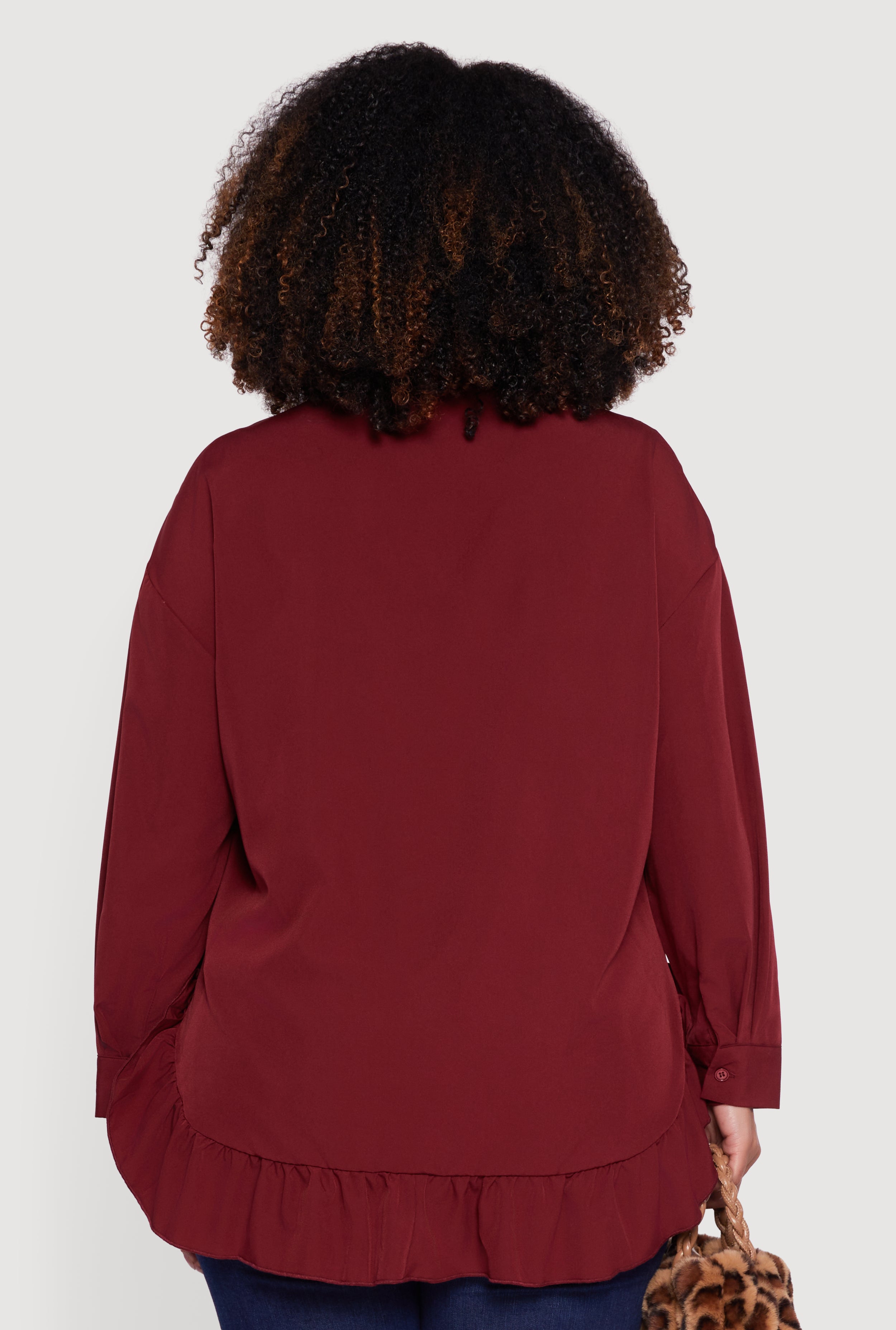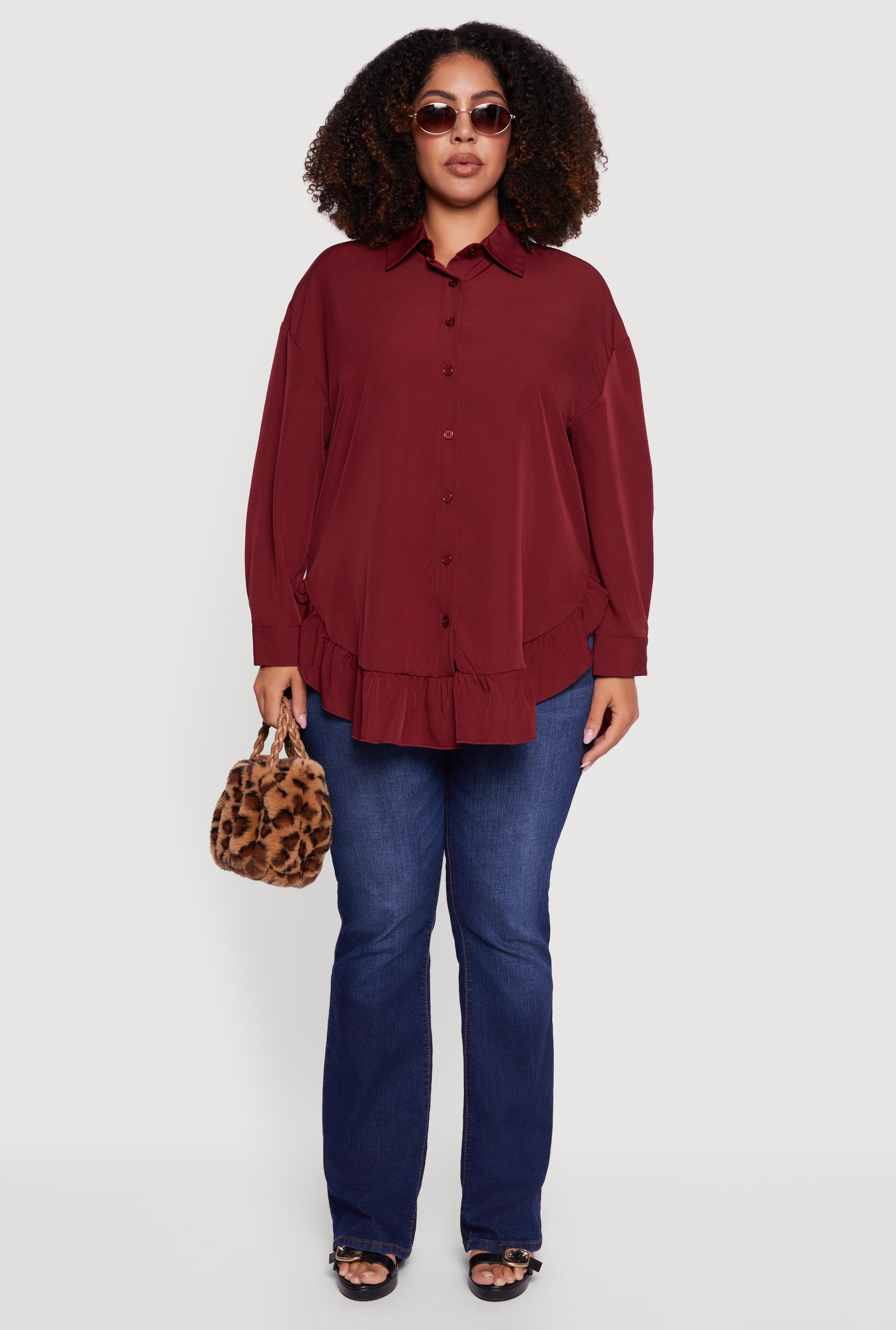 Plus Size Flounce Hem Button Front Shirt