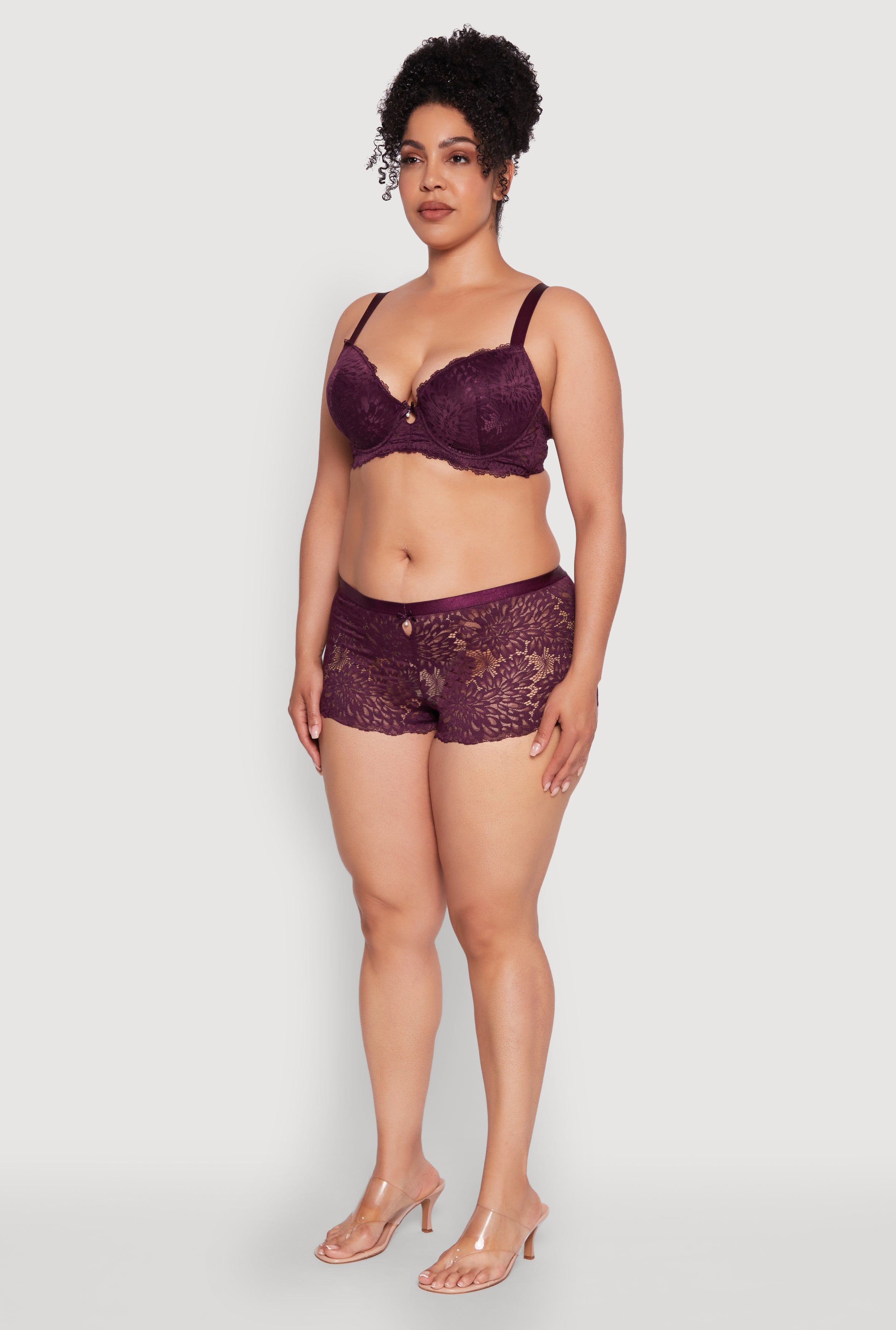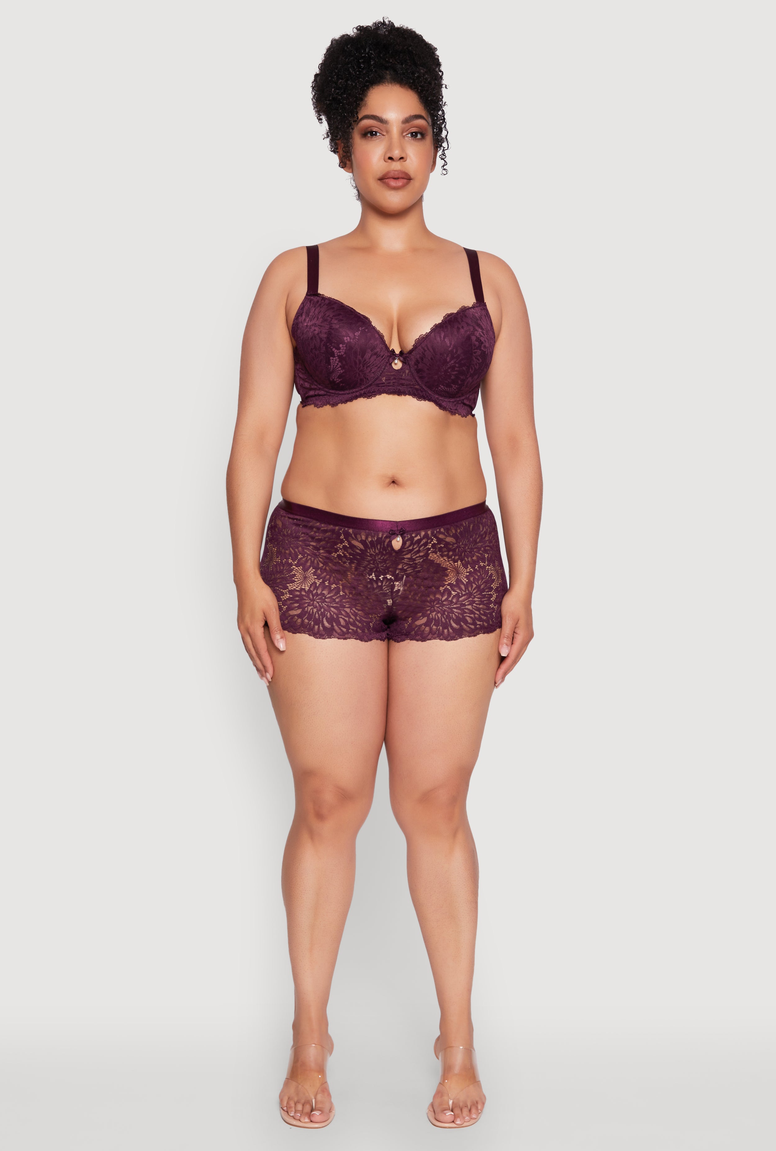 Plus Size Lace Push Up Plunge Bra with Keyhole Detail