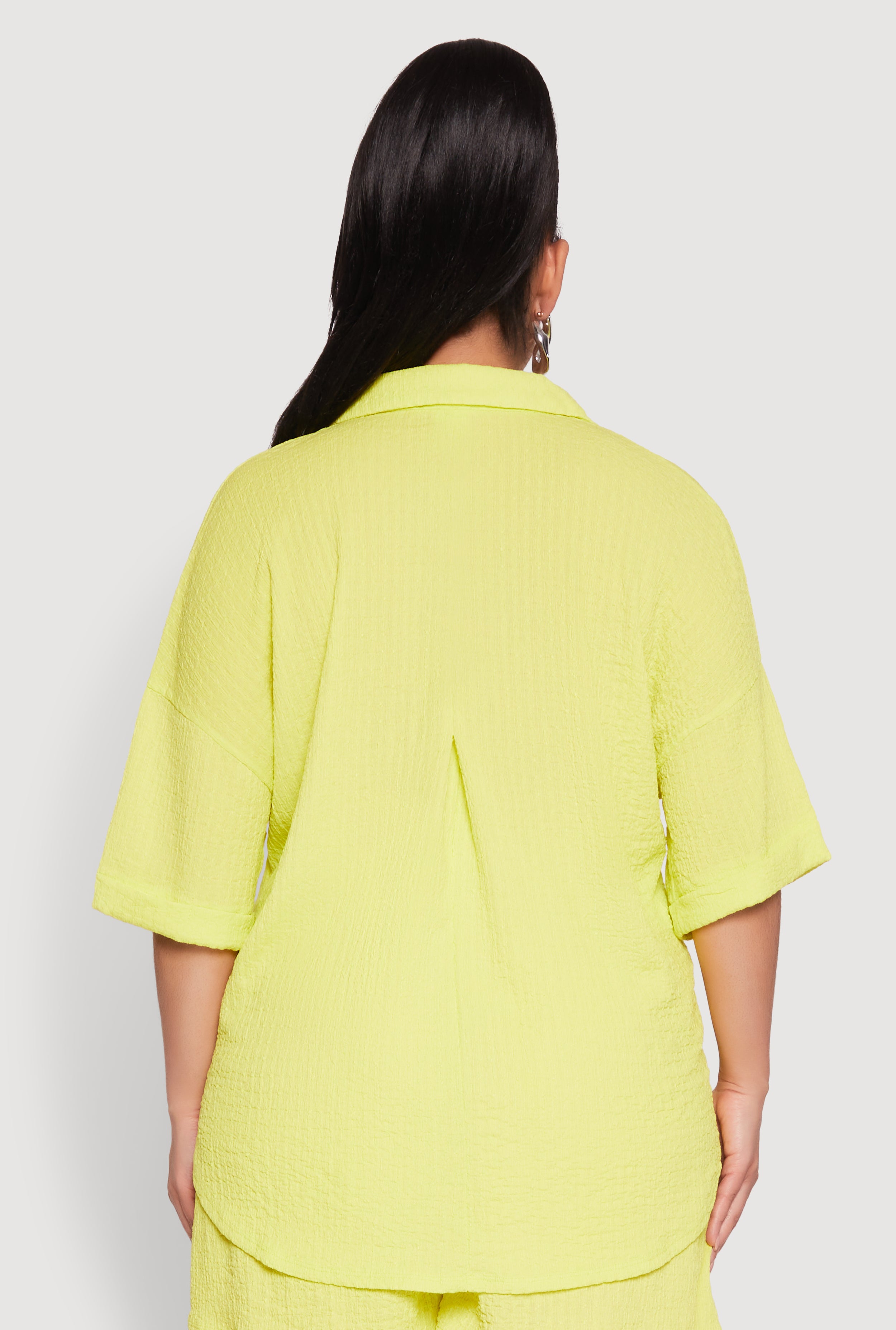 Upgrade your wardrobe with our Plus Size Textured Knit Oversized Shirt, the perfect blend of comfort and style. Designed with a classic fit and a timeless silhouette, this shirt offers a relaxed yet polished look that’s ideal for everyday wear or dressing up for a casual outing. The textured knit fabric adds a touch of visual interest, while the short sleeves and shirt collar give it a effortlessly chic vibe. Whether you're lounging at home or heading out with friends, this versatile piece is a must-have for your collection.