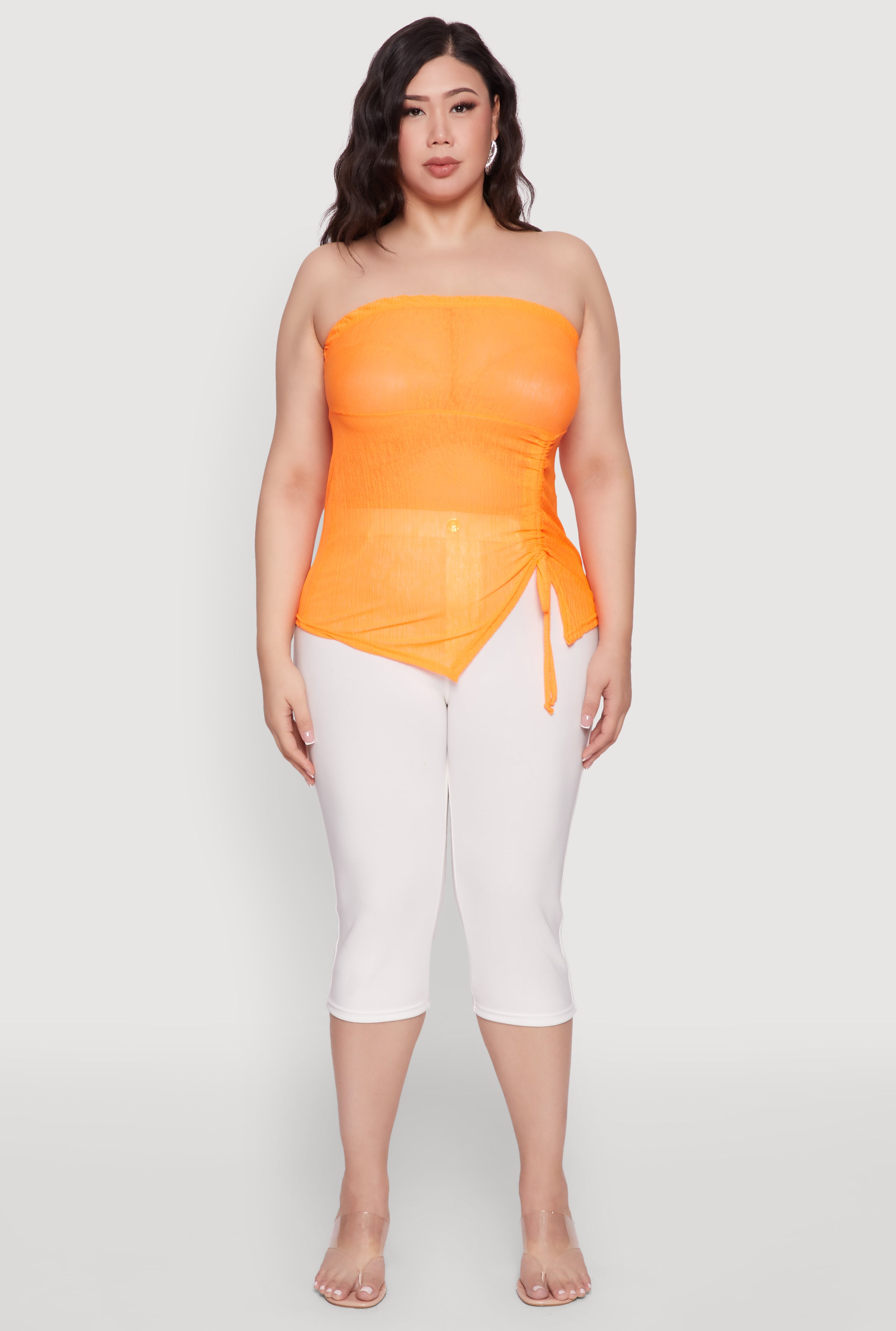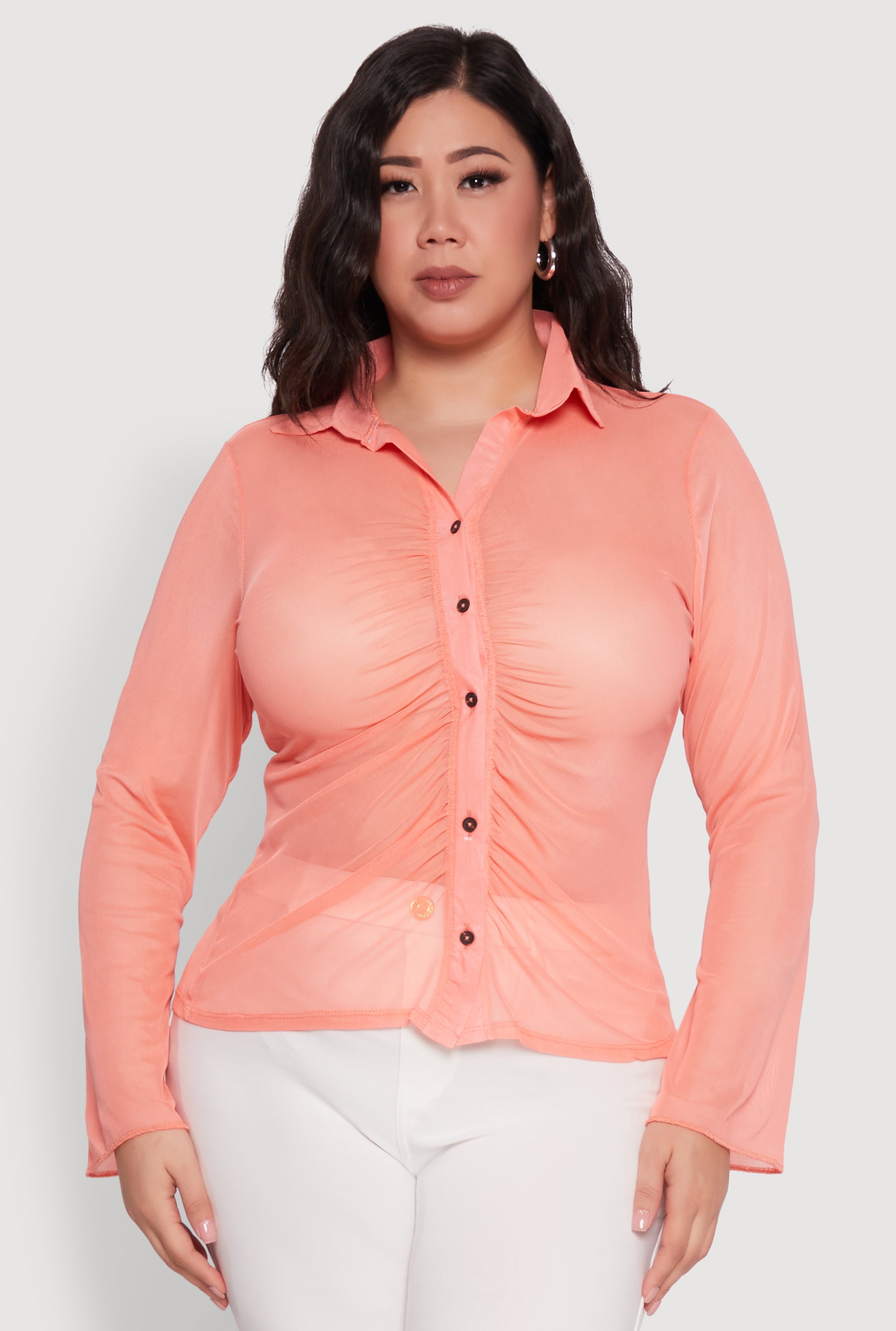 Plus Size Sheer Long Sleeve Shirt with Ruching