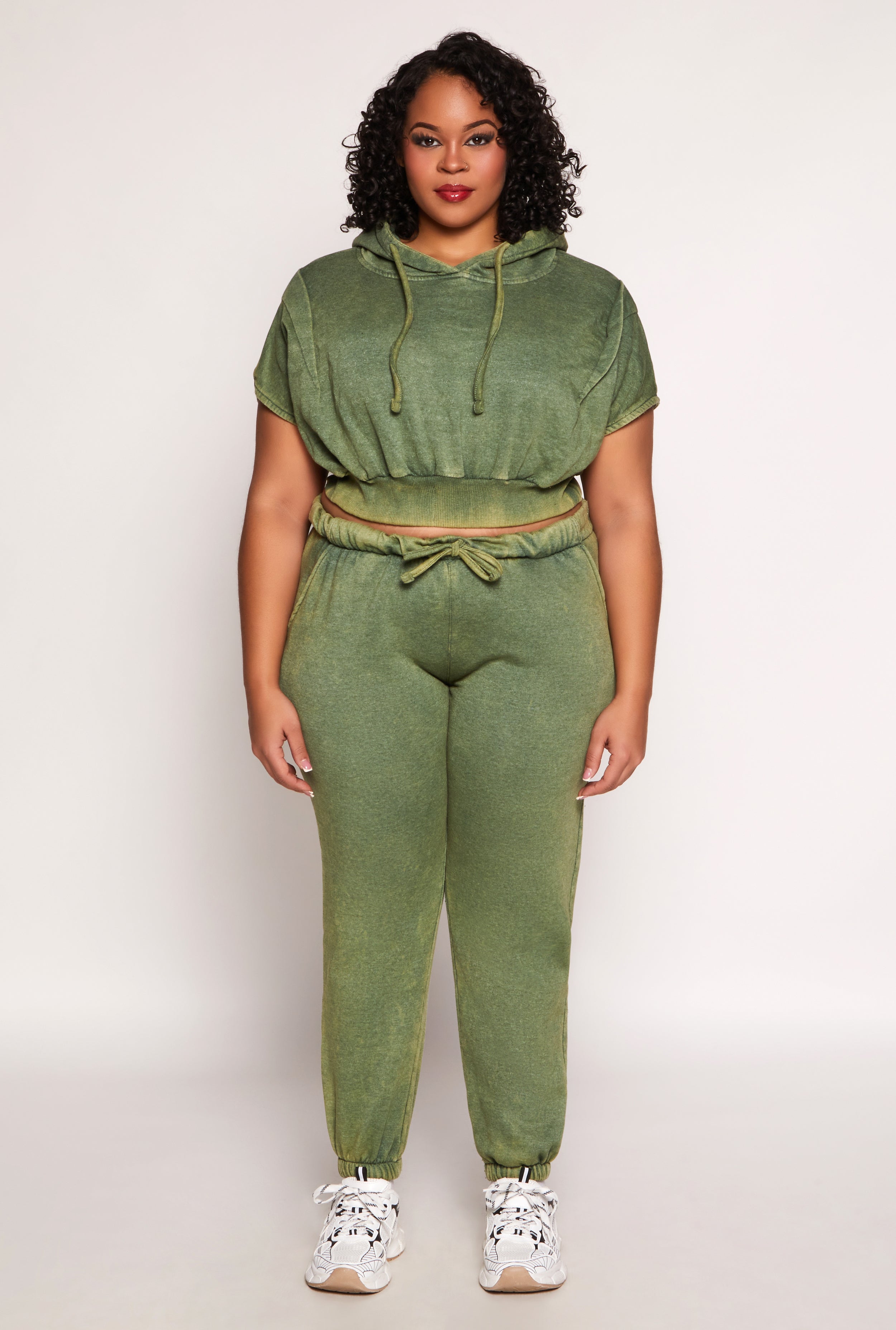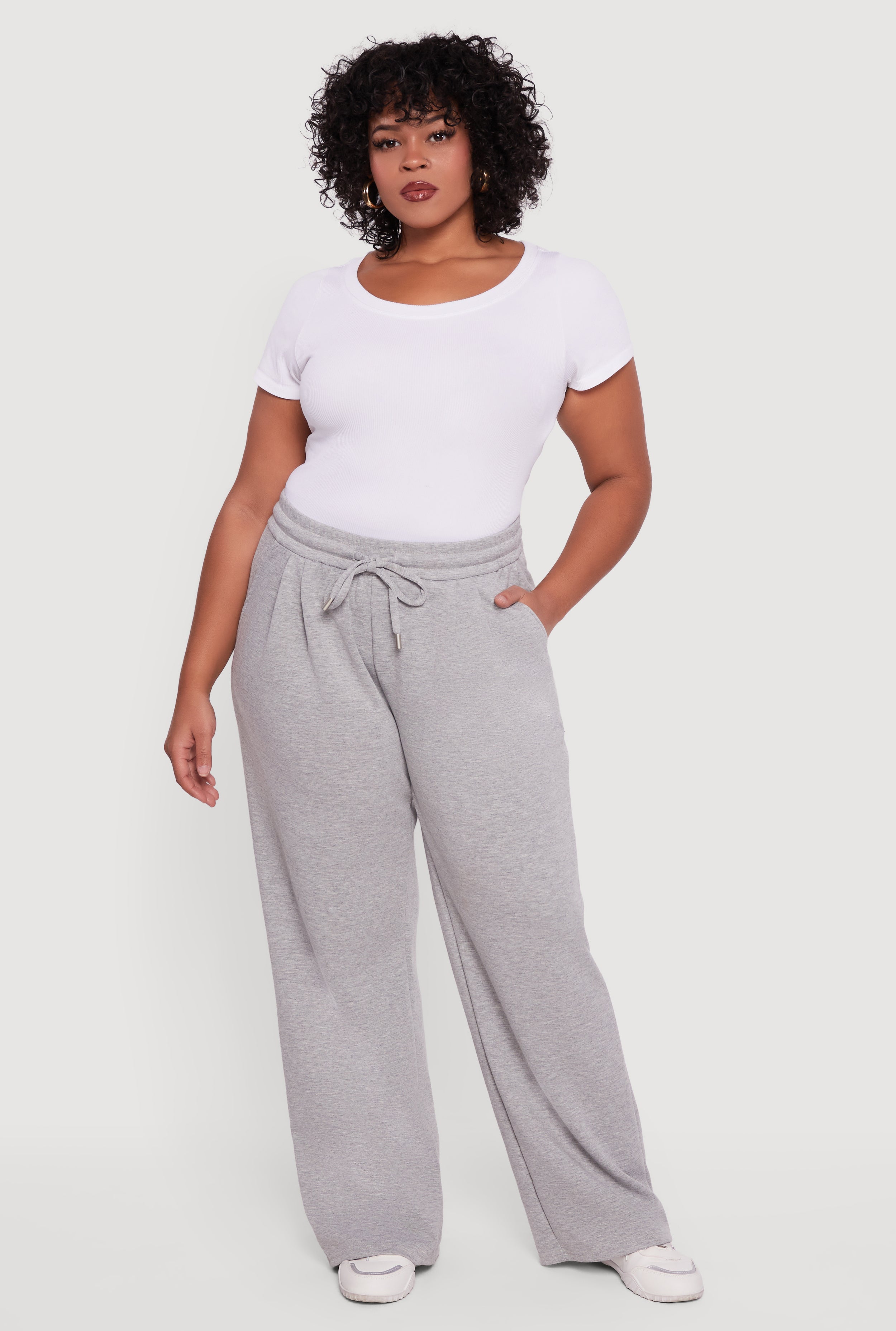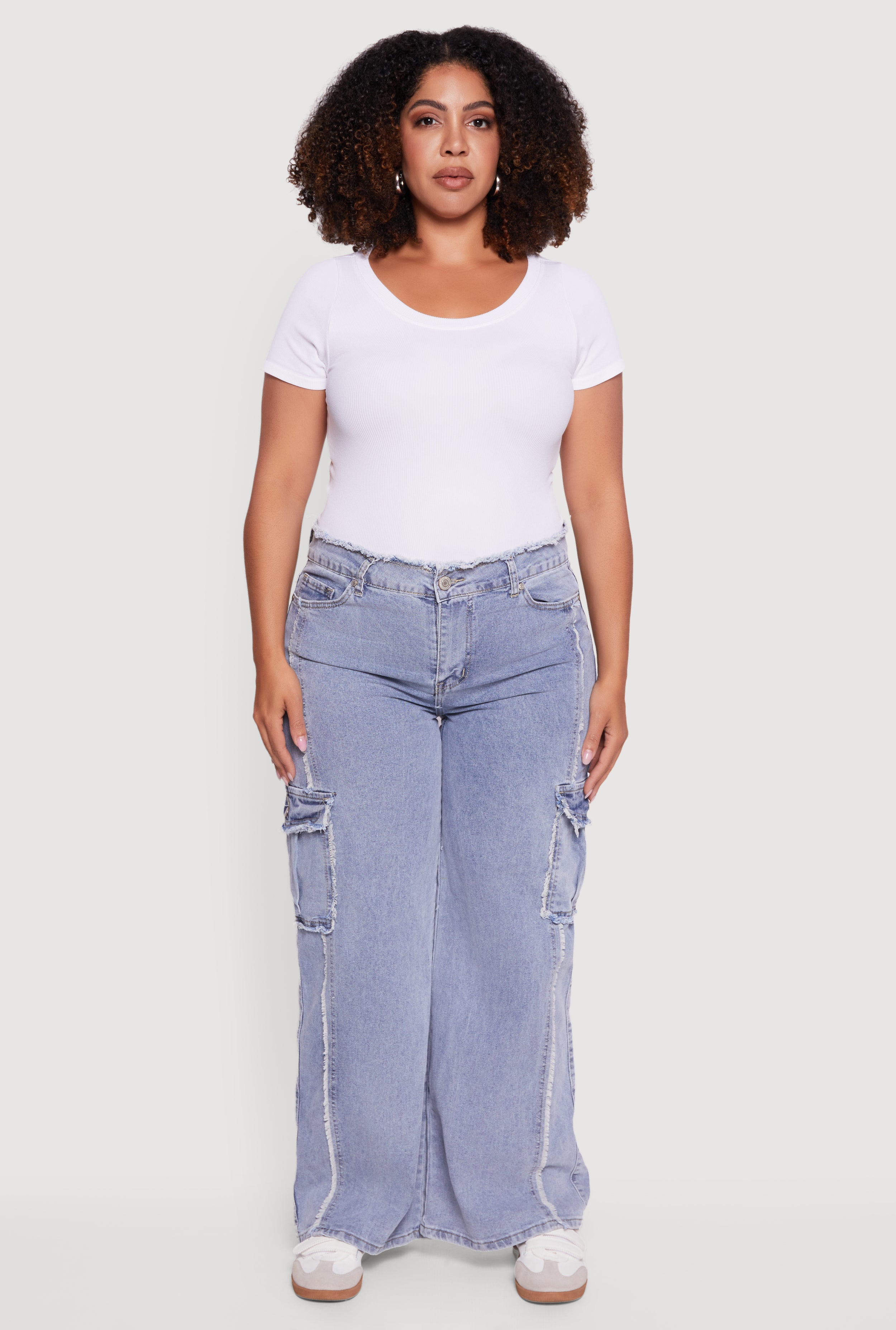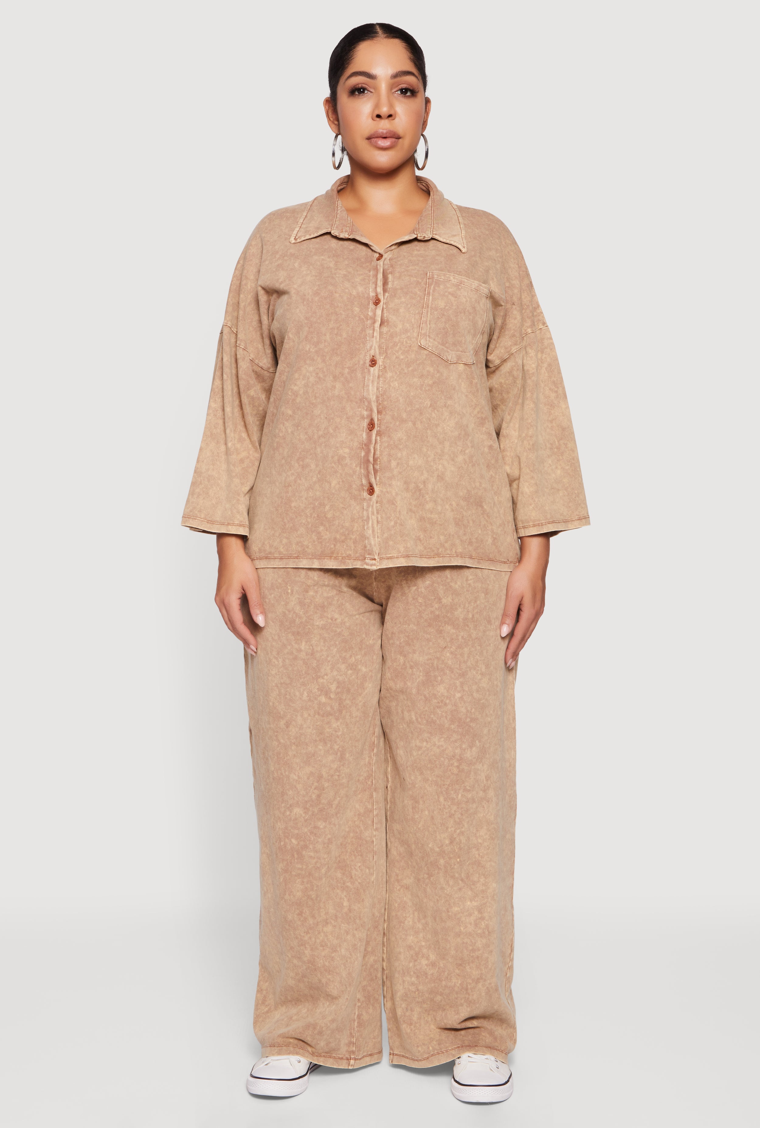Plus Size High Waisted Acid Wash Wide Leg Pants