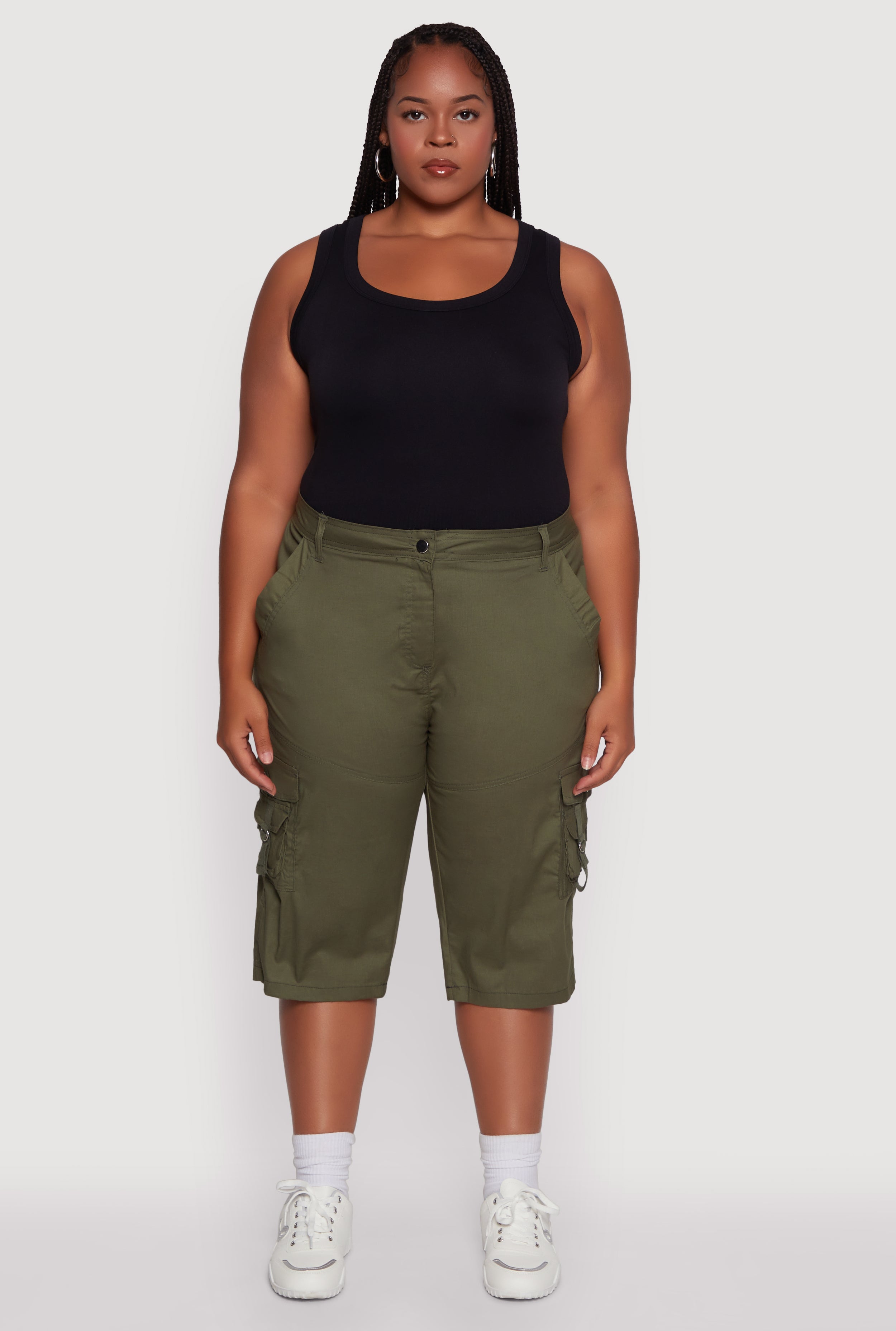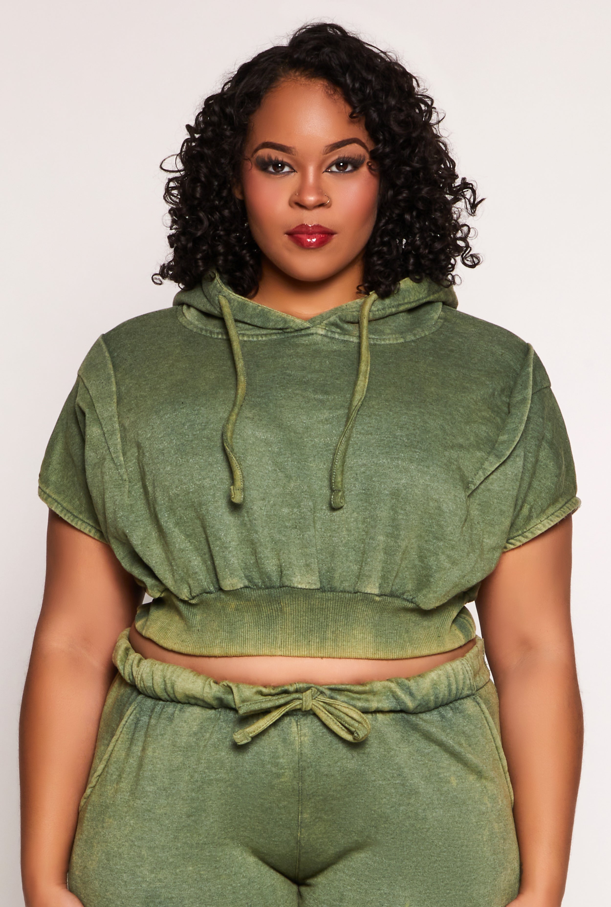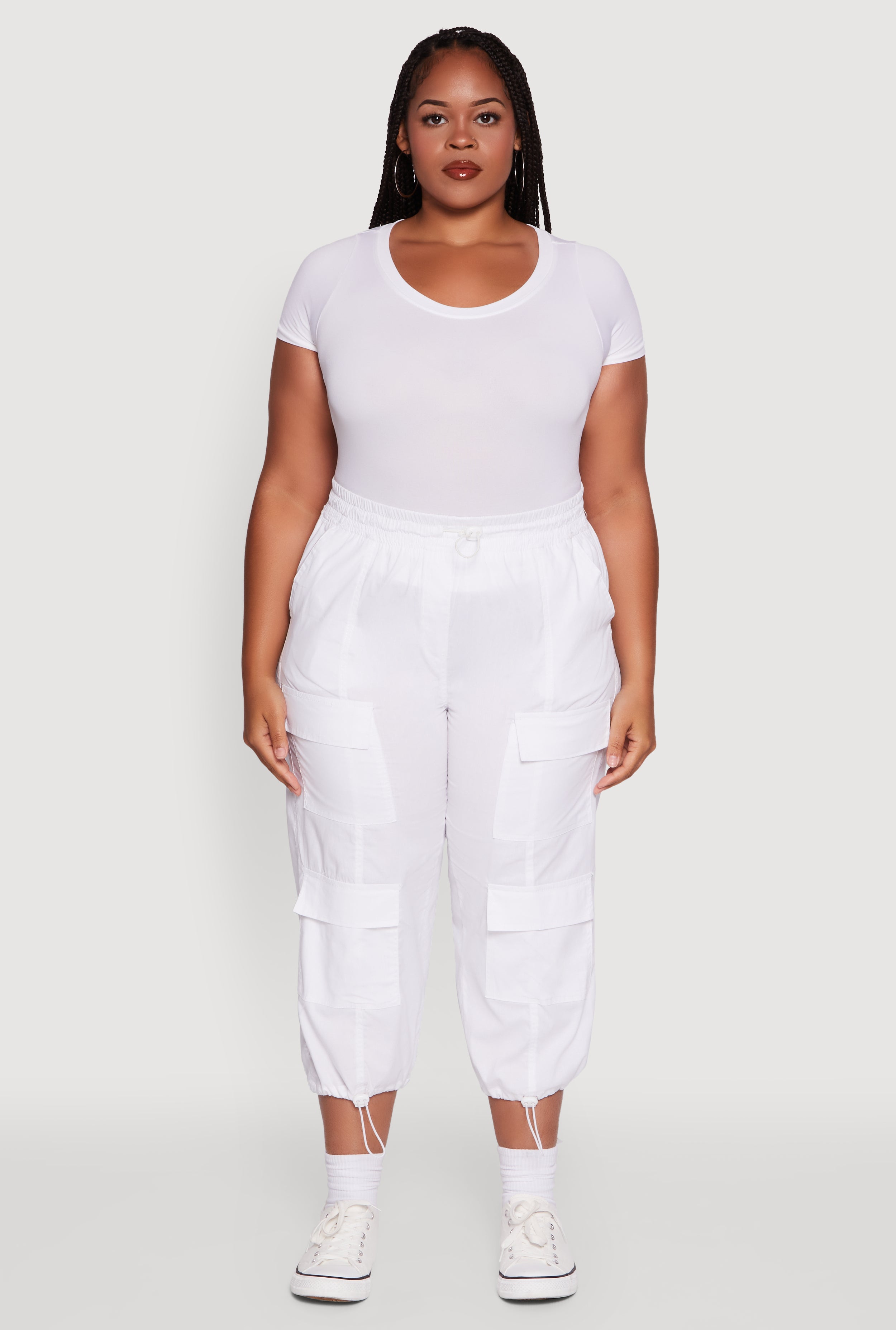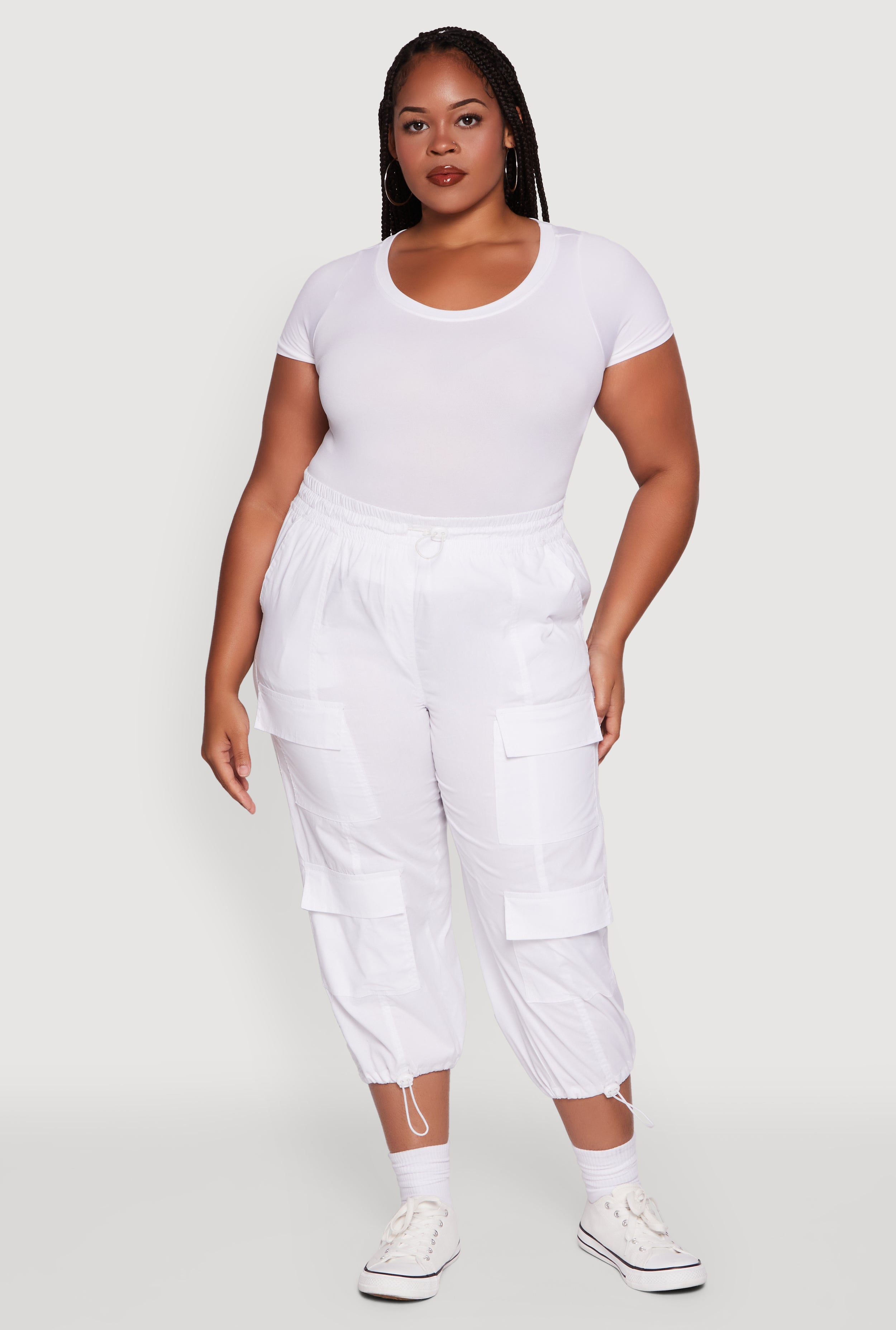 Plus Size Cargo Pocket Sleeve Cropped Track Jacket