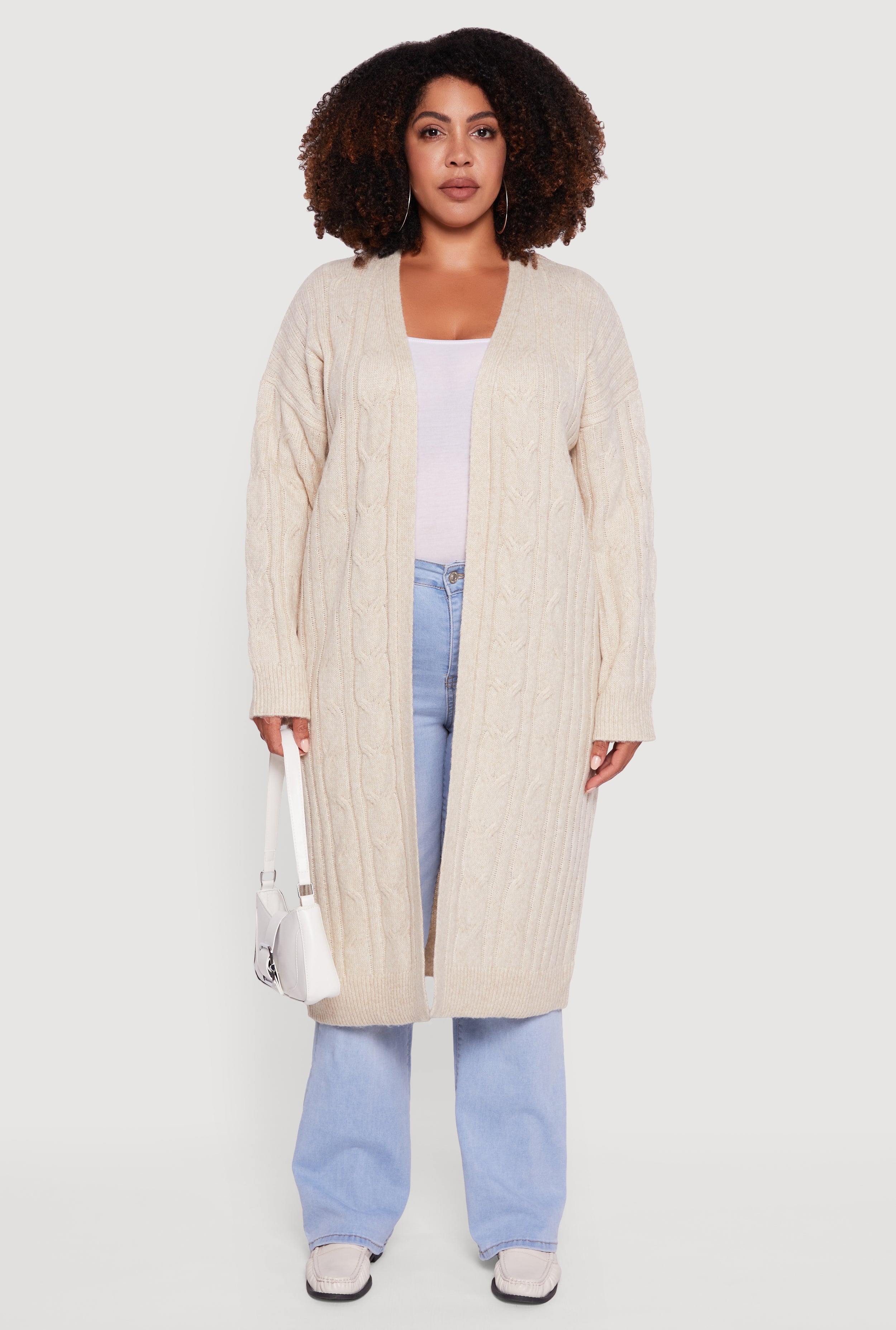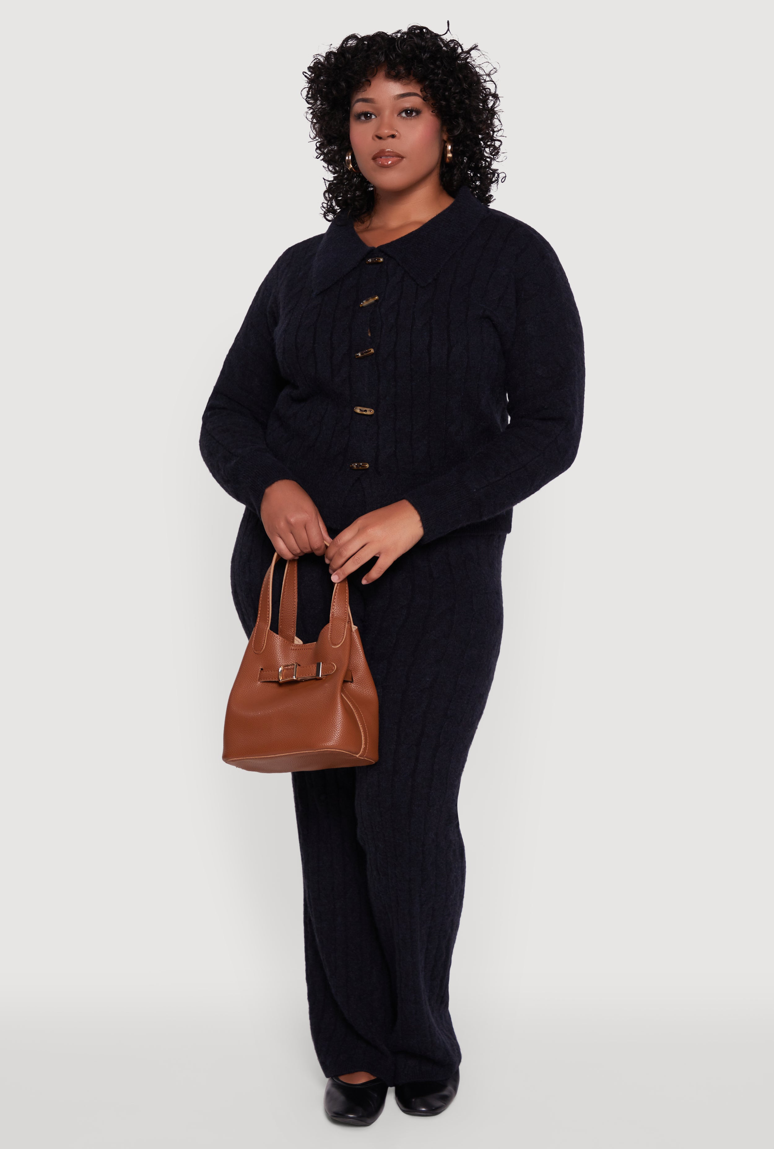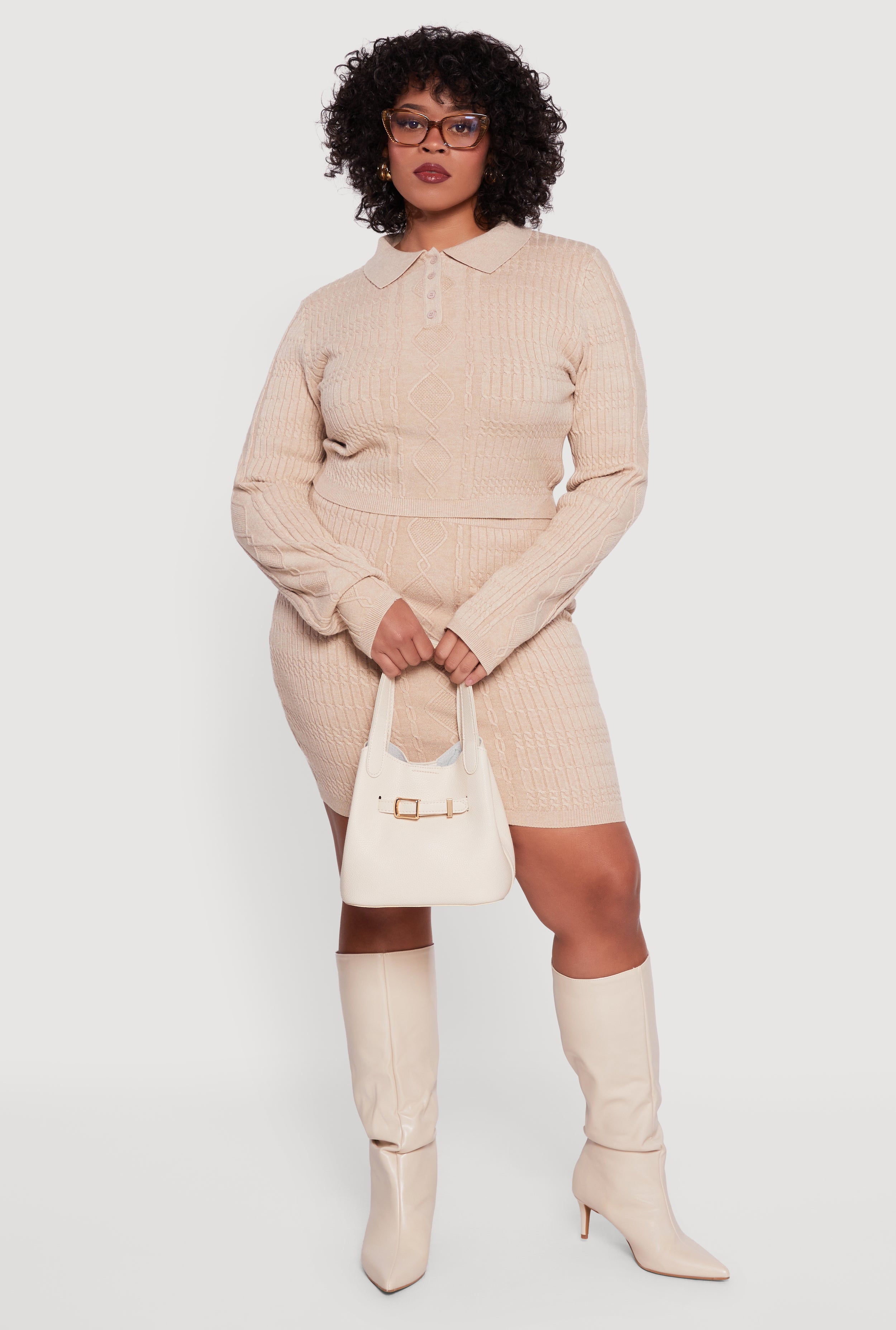 Plus Size Long Sleeve Polo Collar Cable Knit Sweater