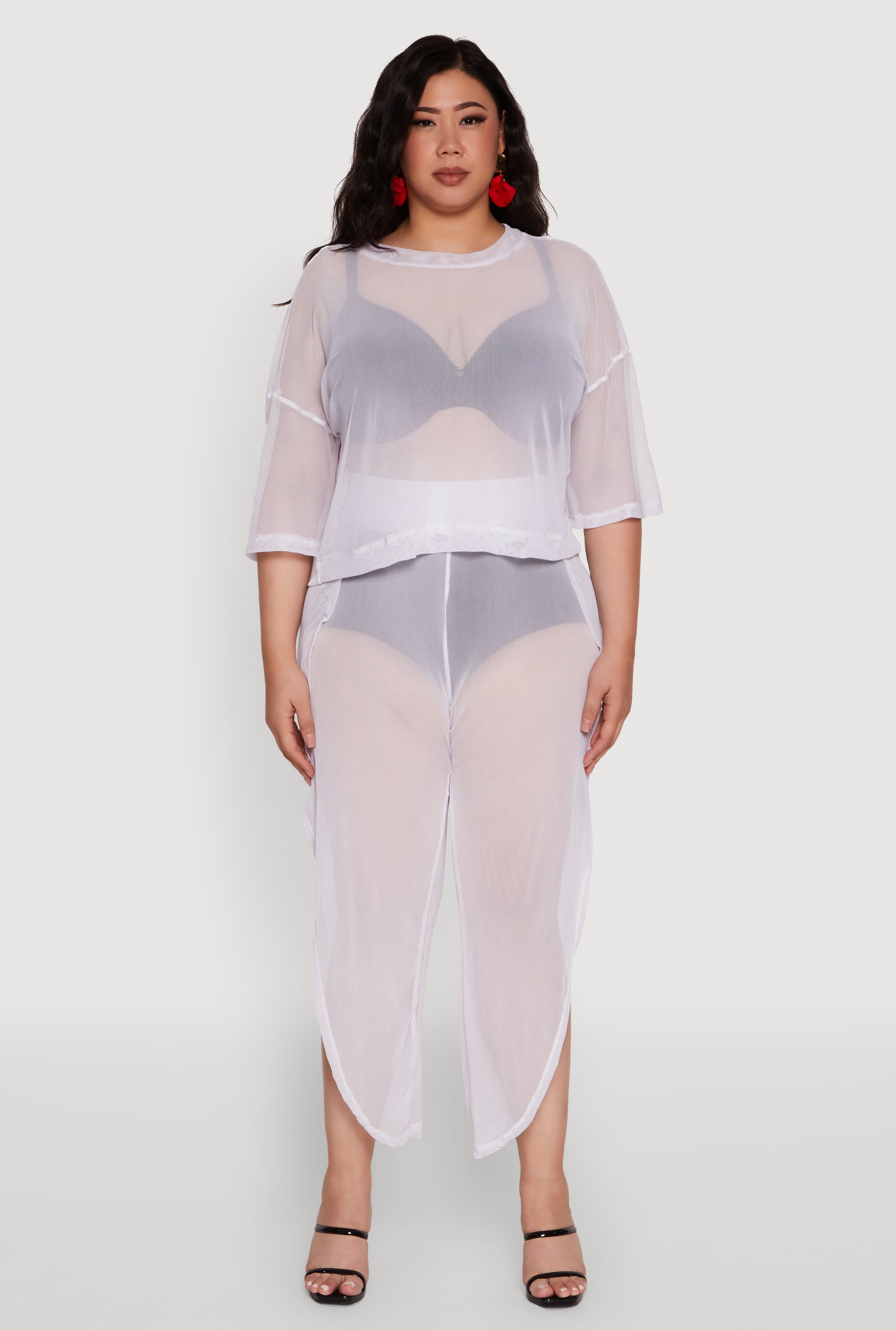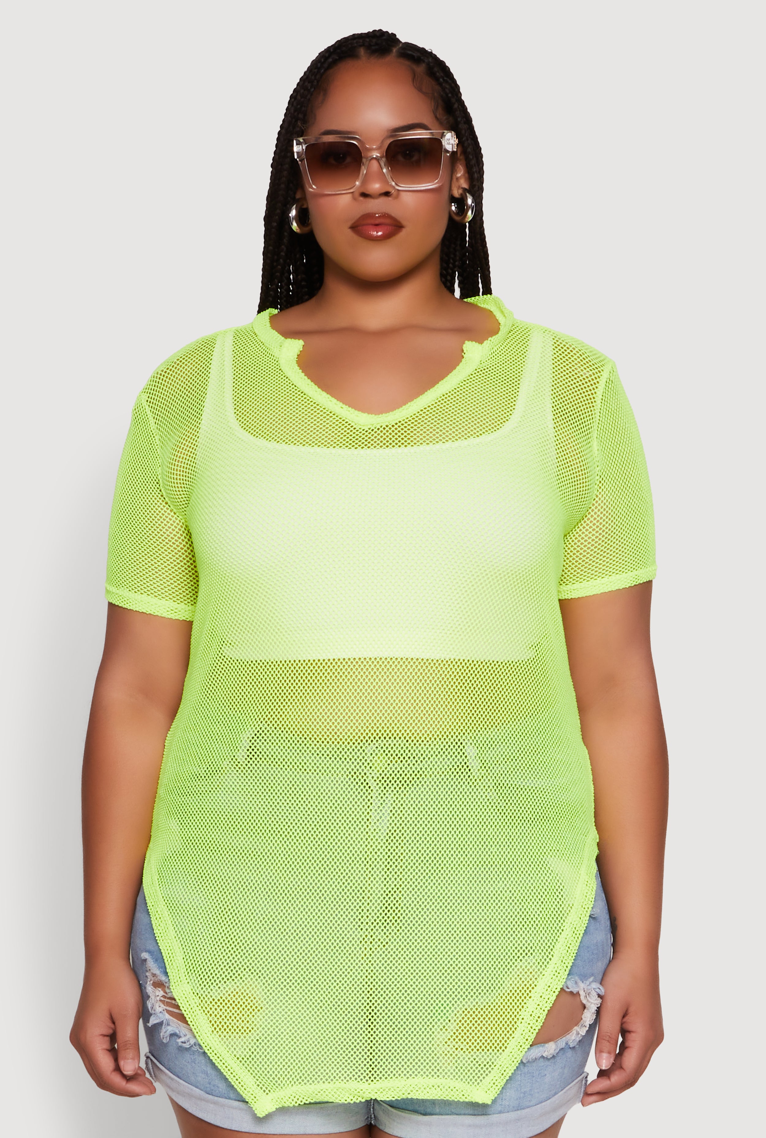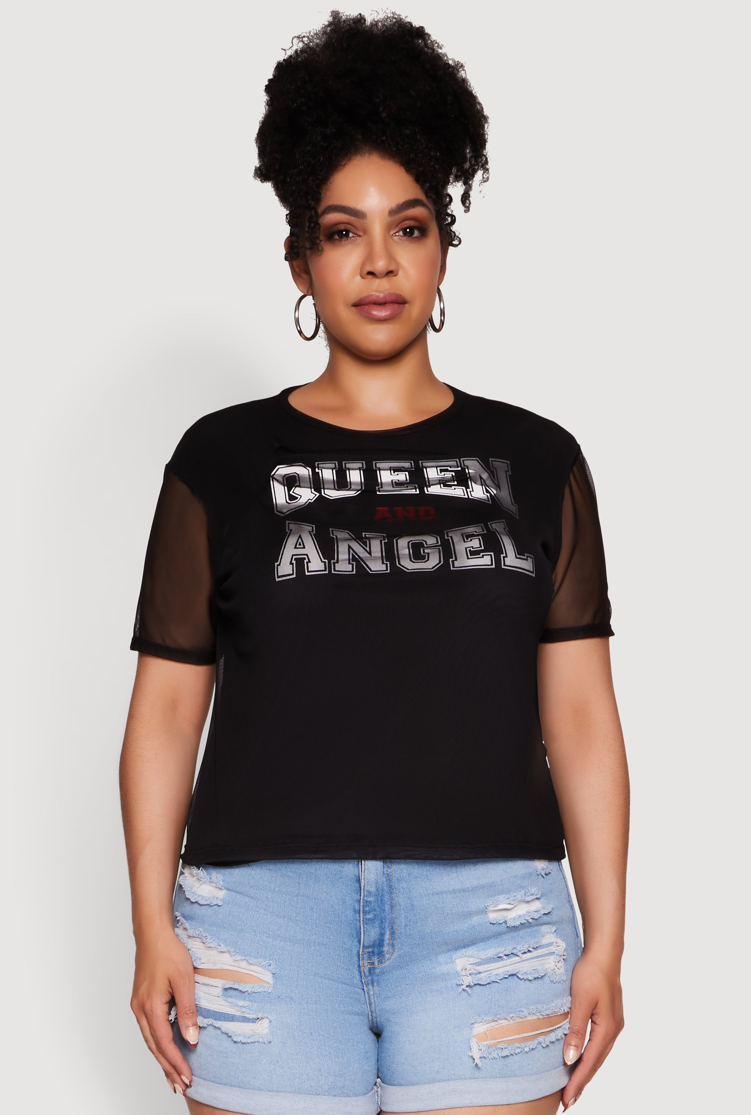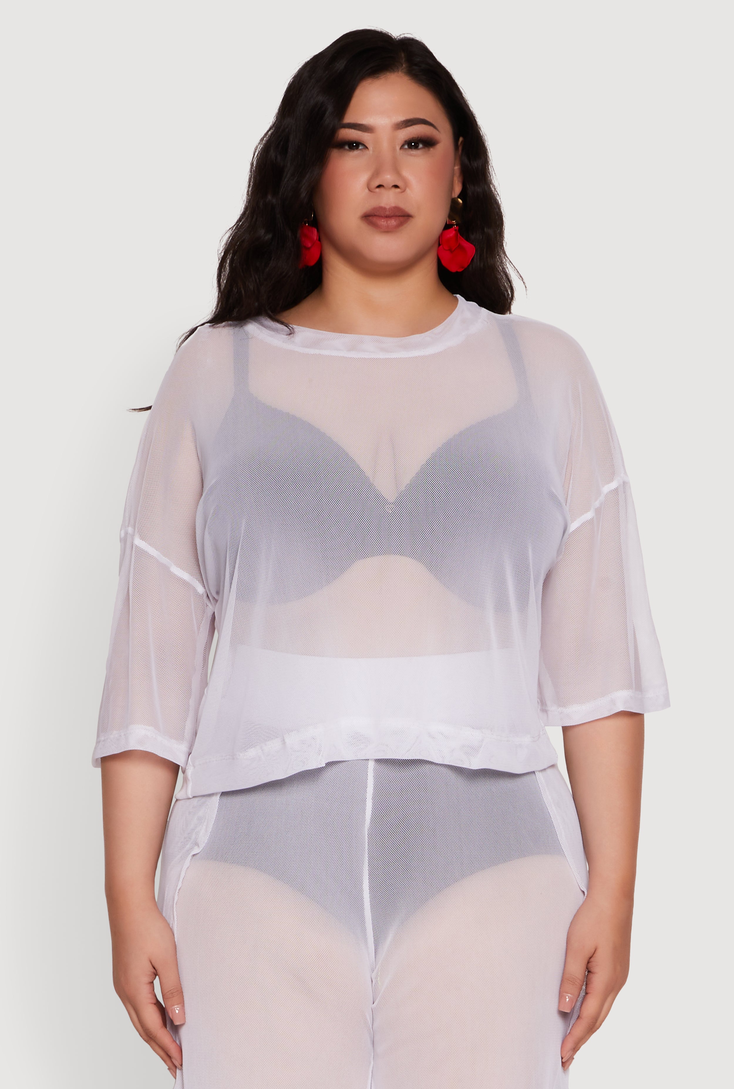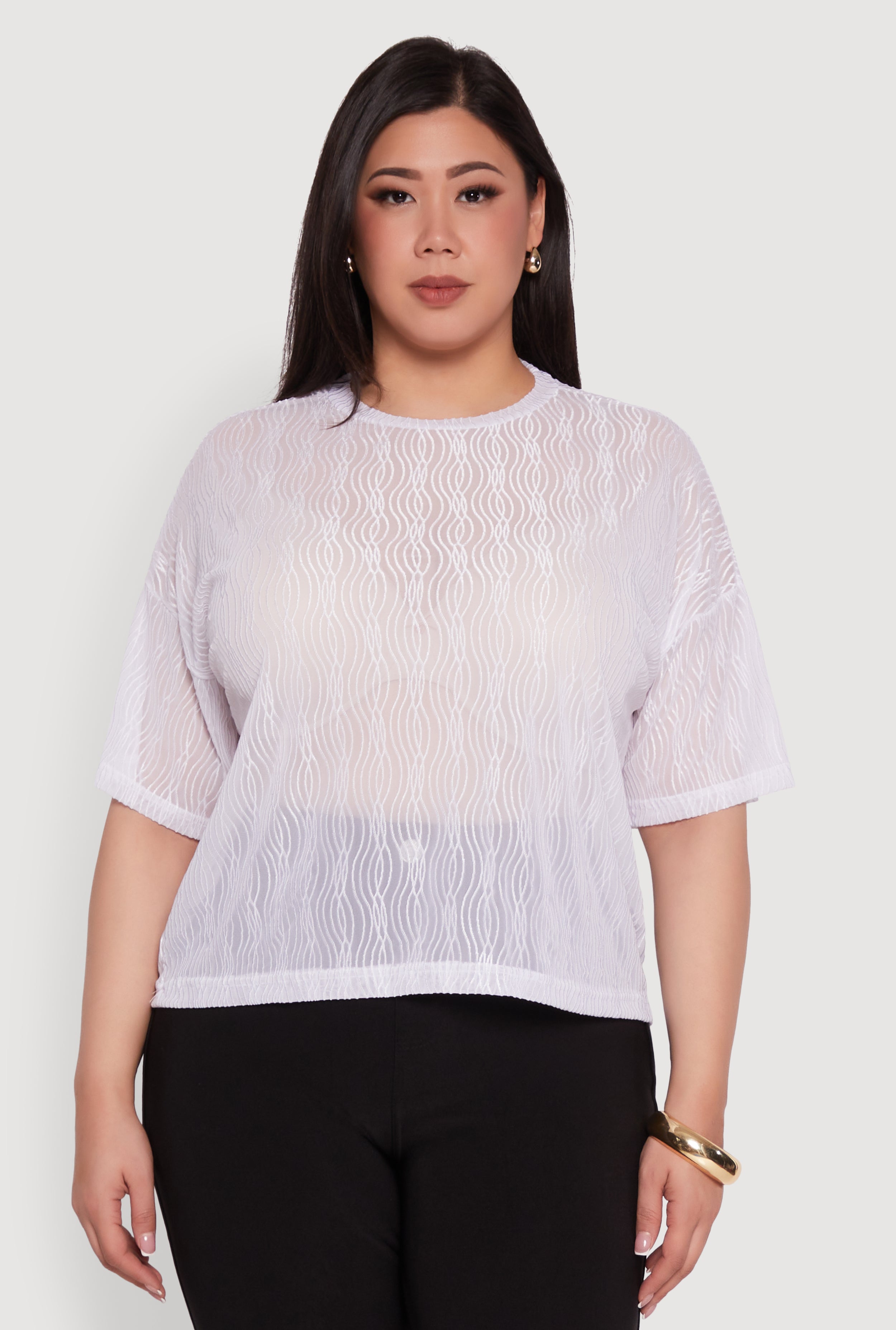 Plus Size Trendy Mesh Crew Neck Short Sleeve Top