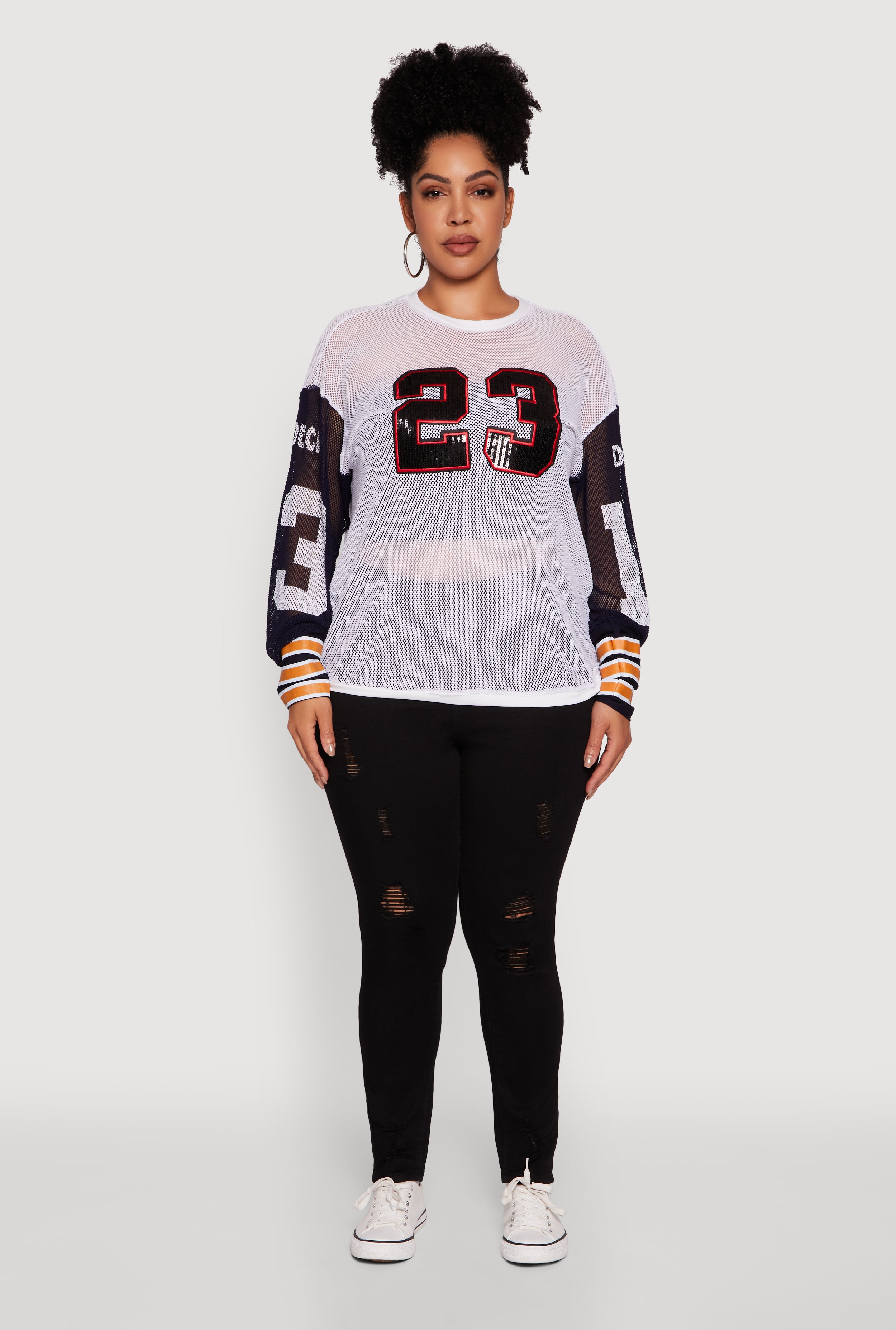 Plus Size 23 Sequin Fishnet Graphic Print Long Sleeve Top