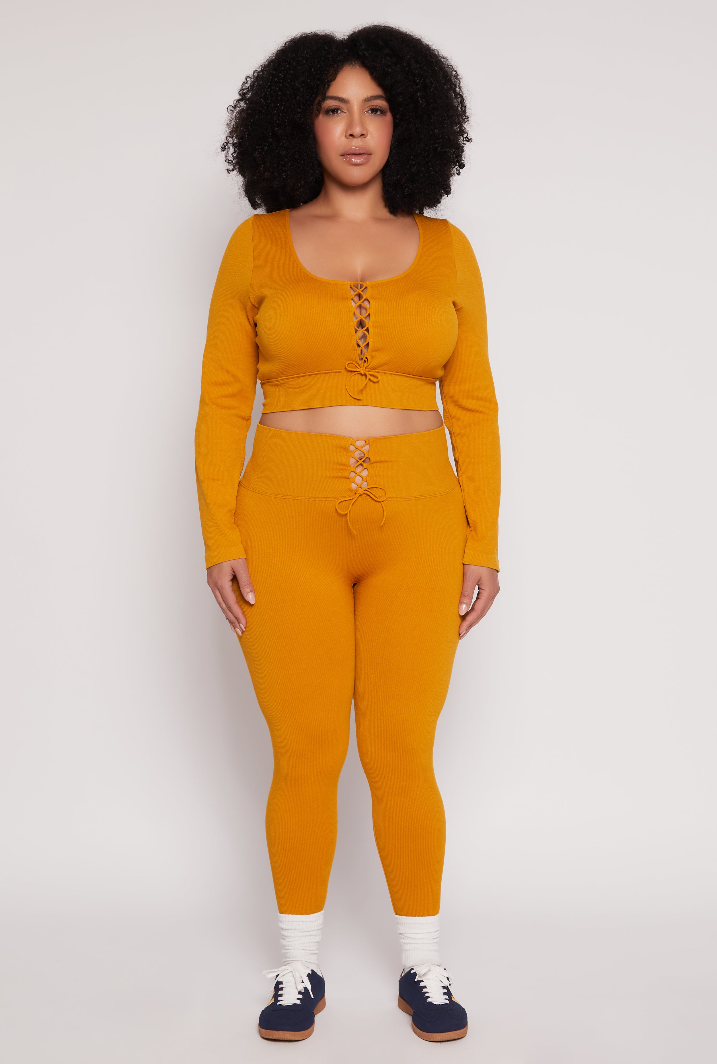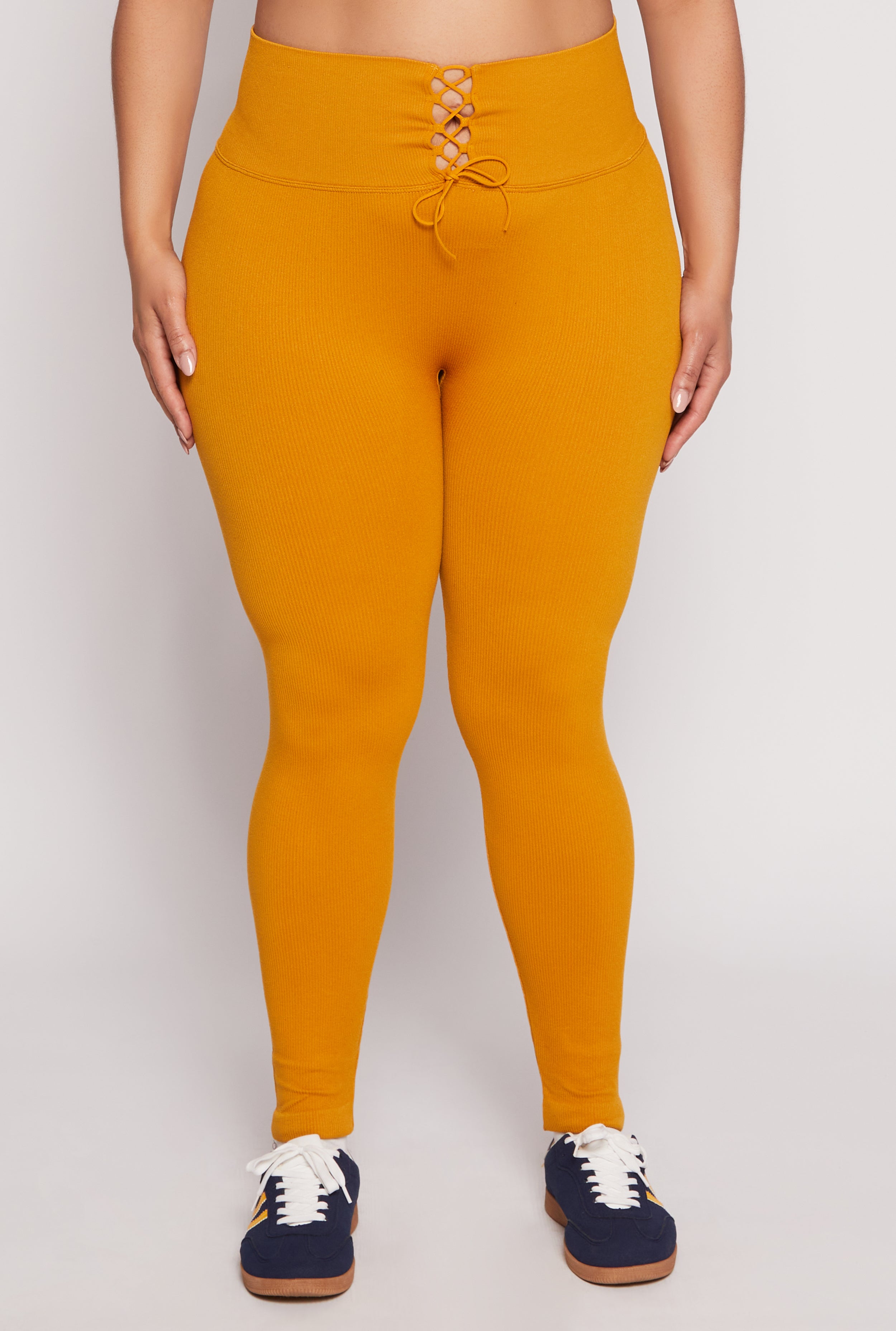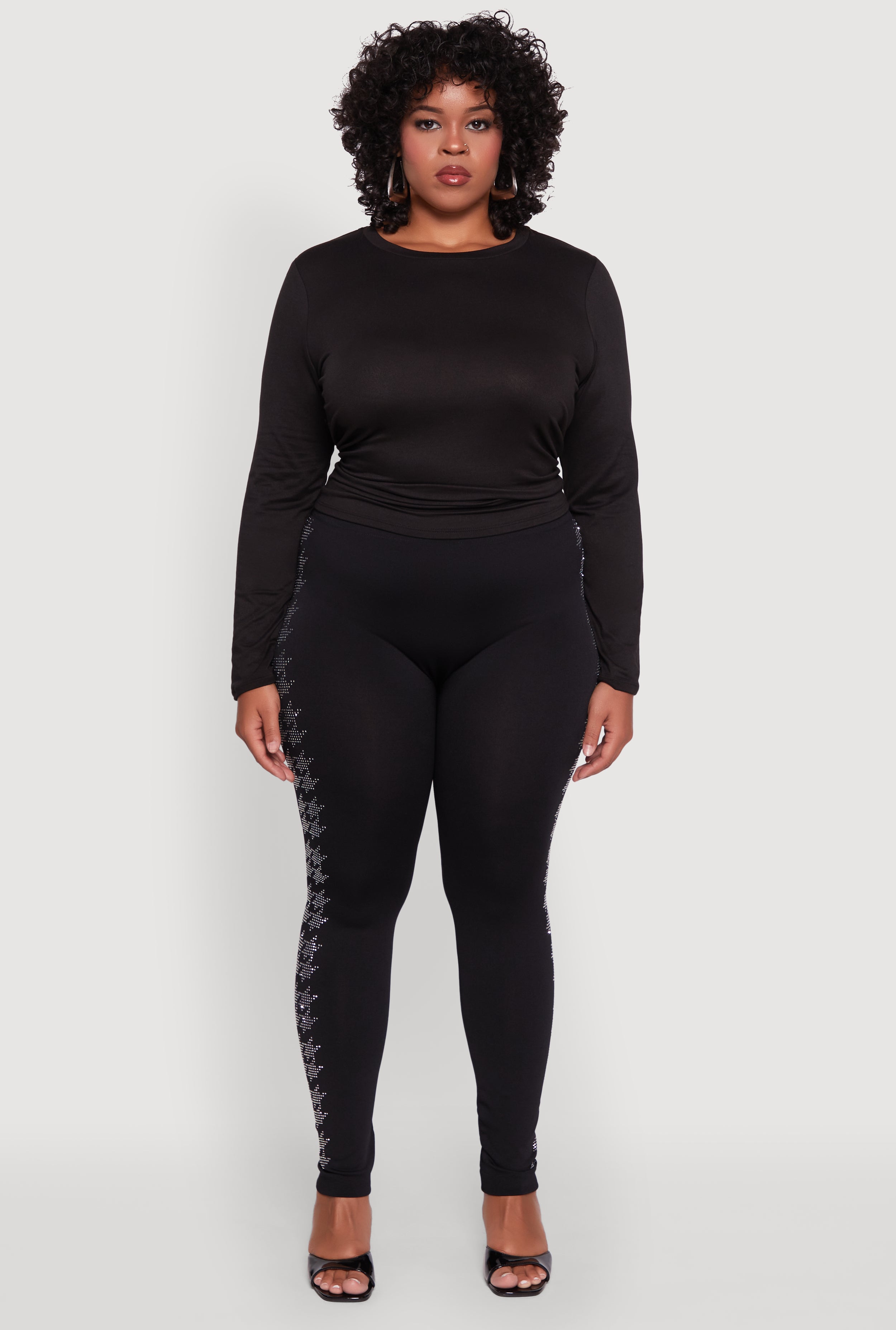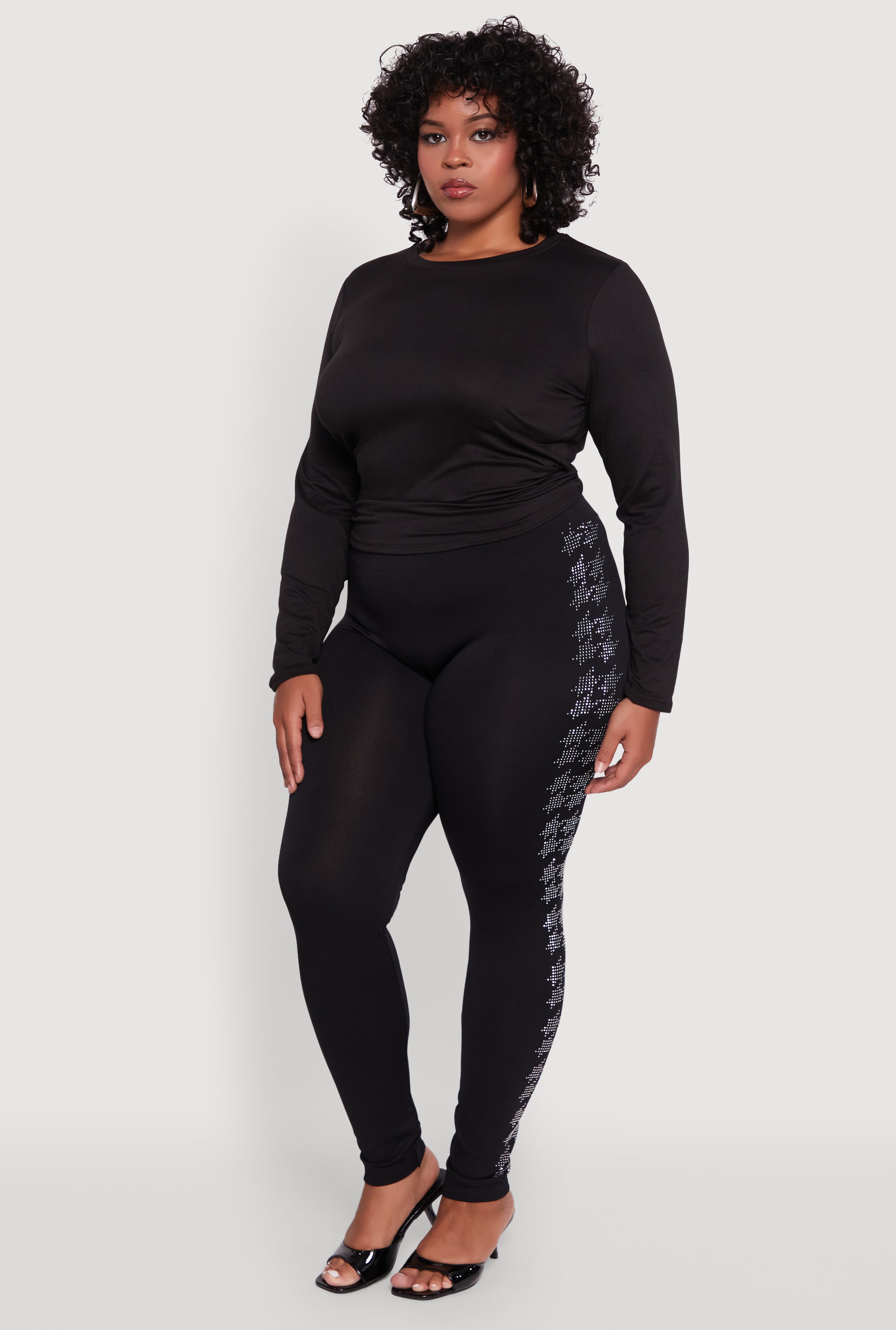 Plus Size Seamless High Waisted Houndstooth Rhinestone Trim Leggings