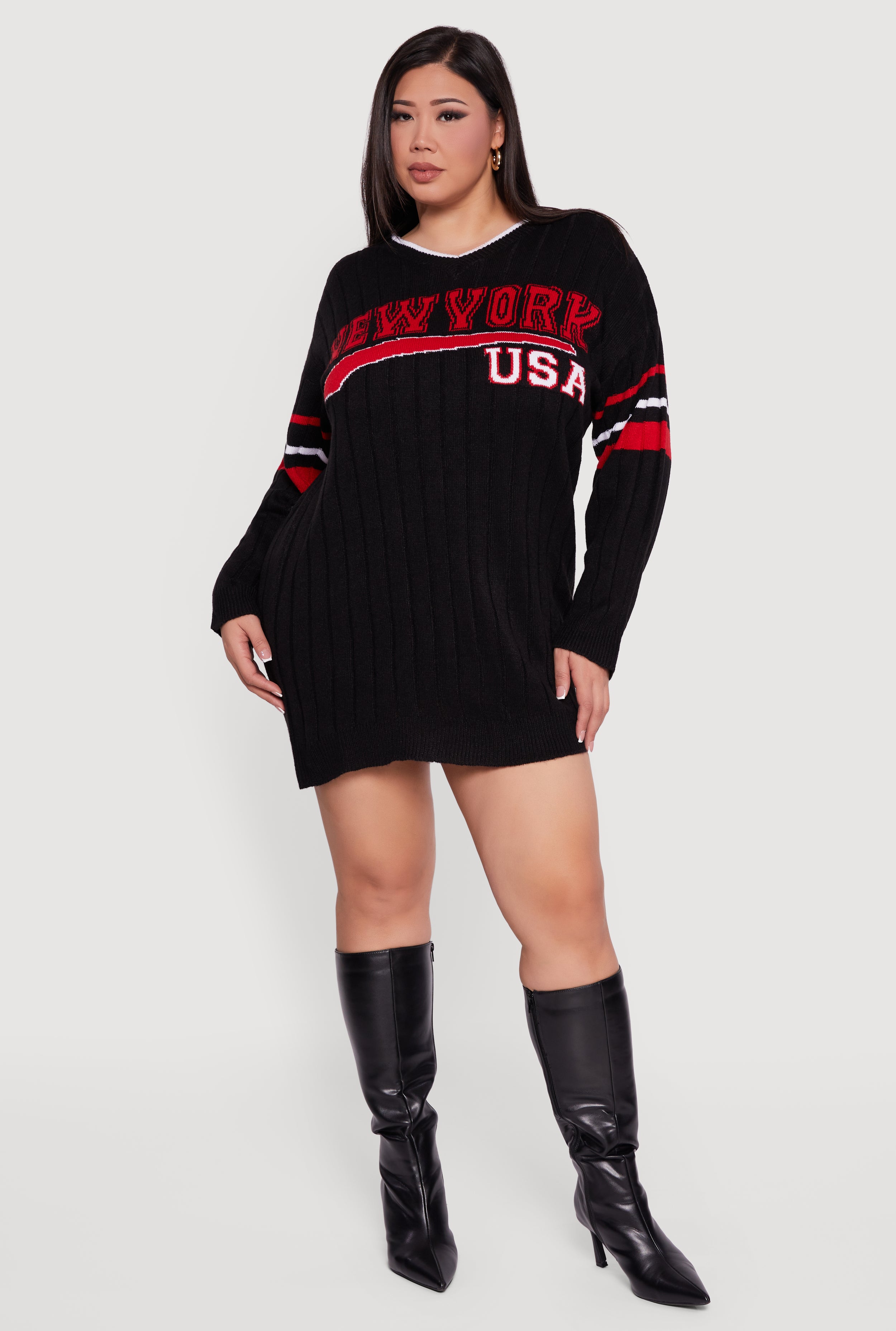 Plus Size New York USA Graphic Long Sleeve Sweater Dress