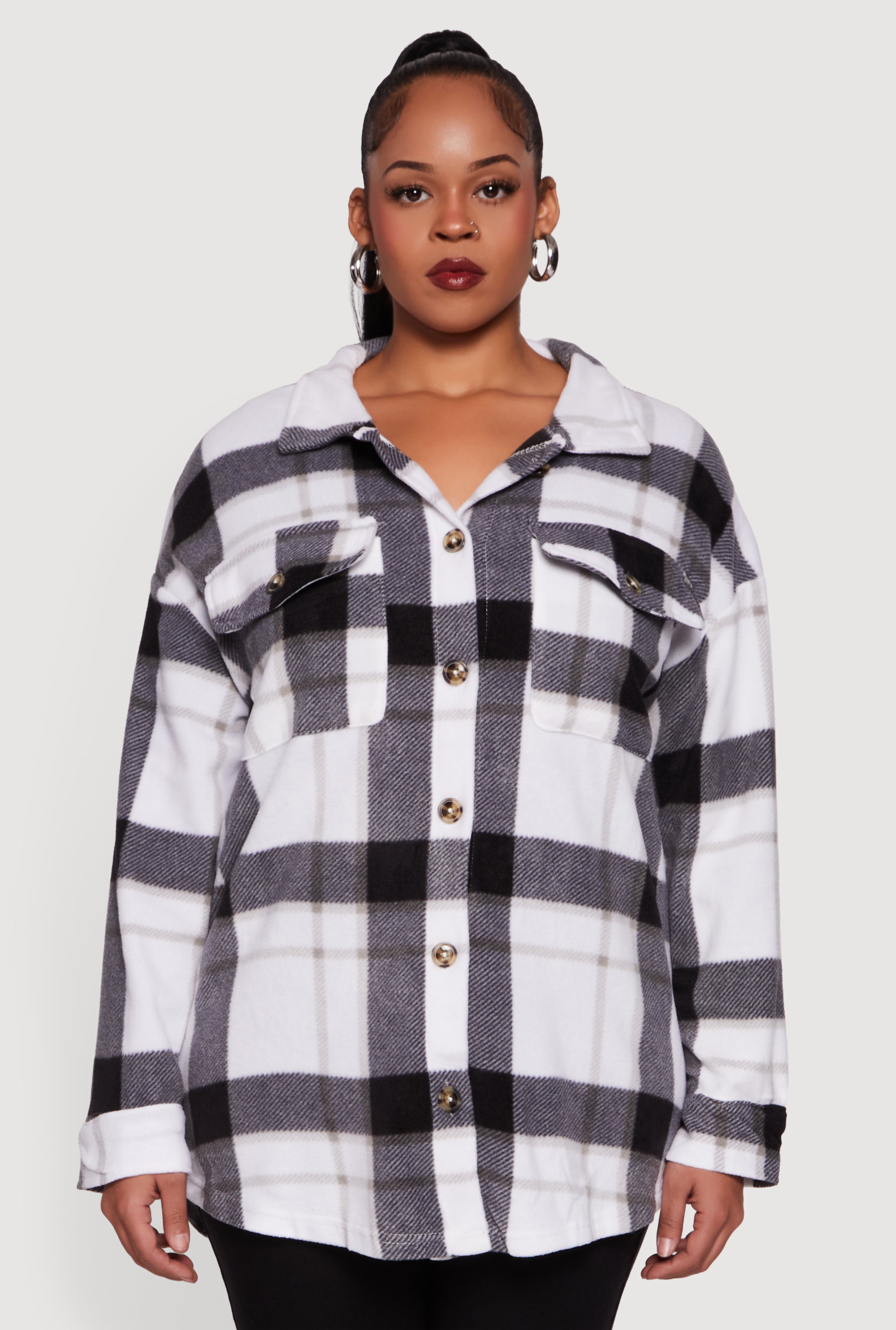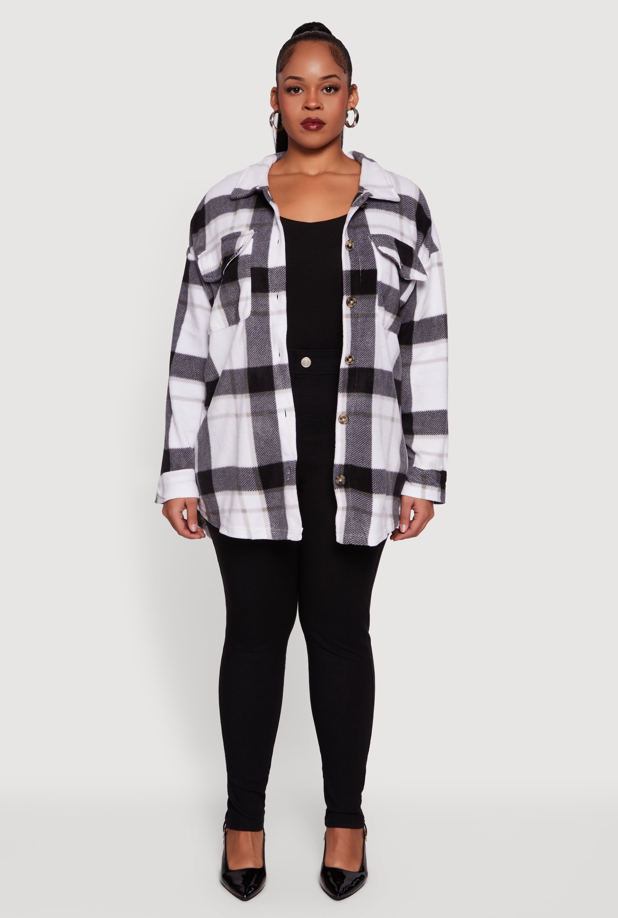Plus Size Faux Leather Woven Detail Snap Button Front Shacket