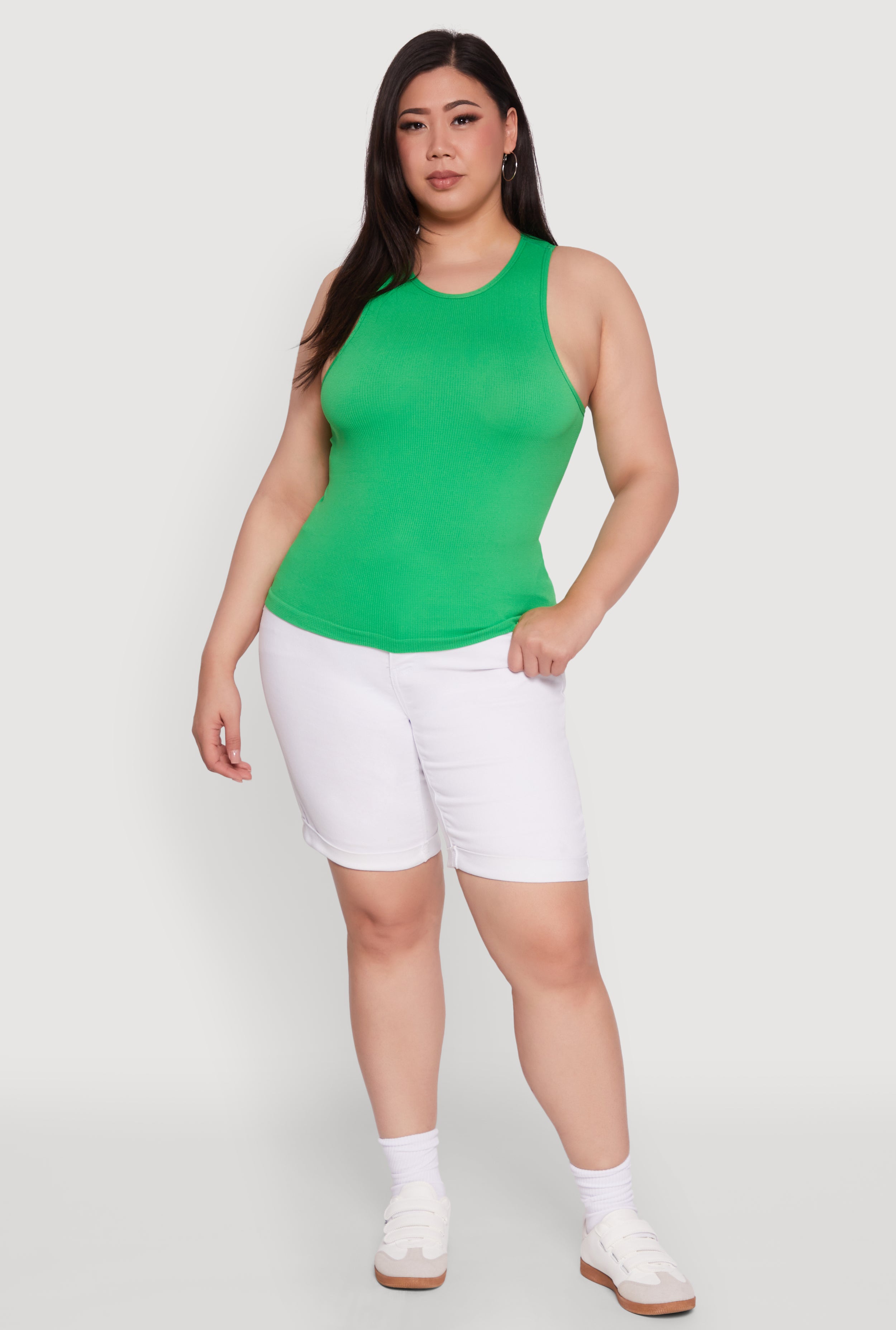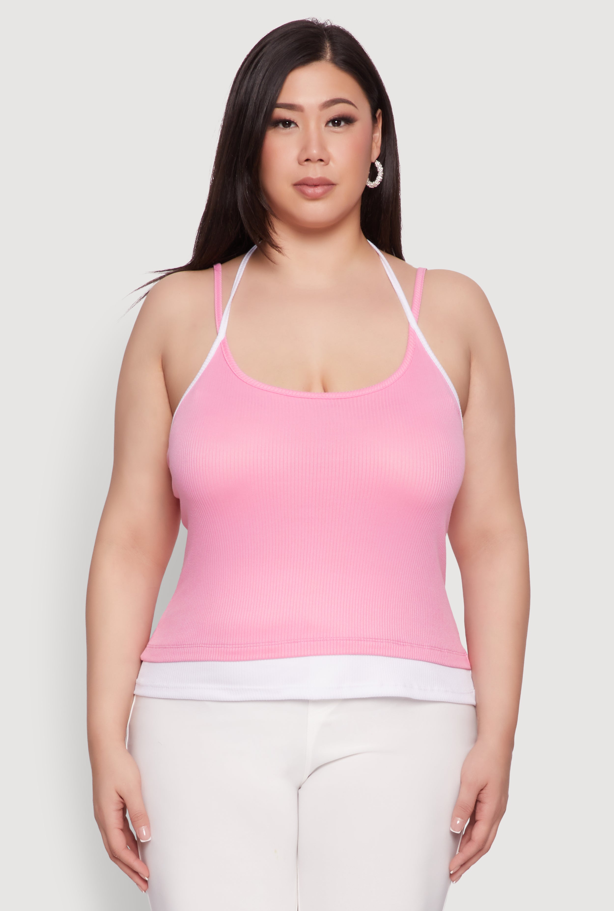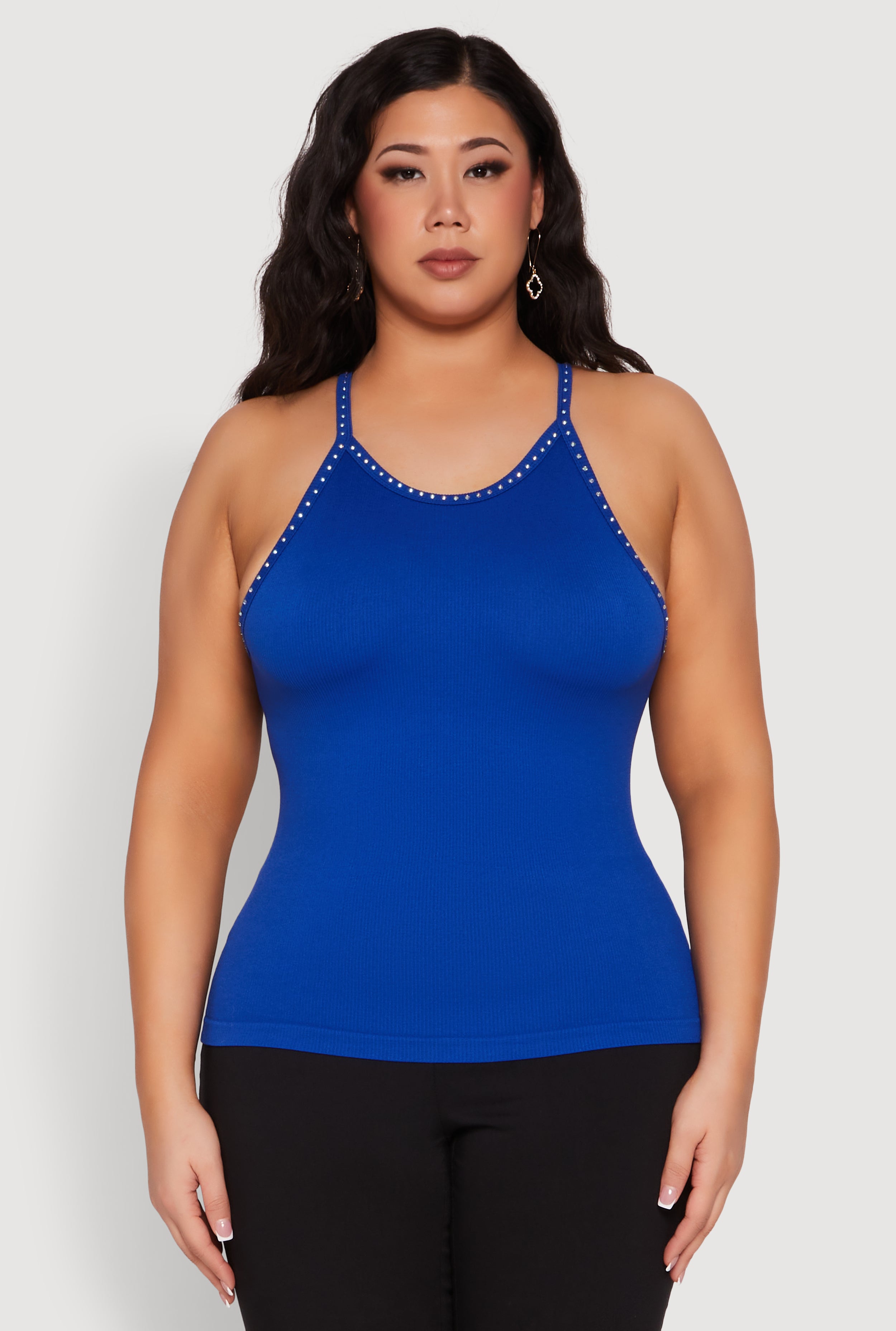 Plus Size Seamless Ribbed Rhinestone Trim Cami