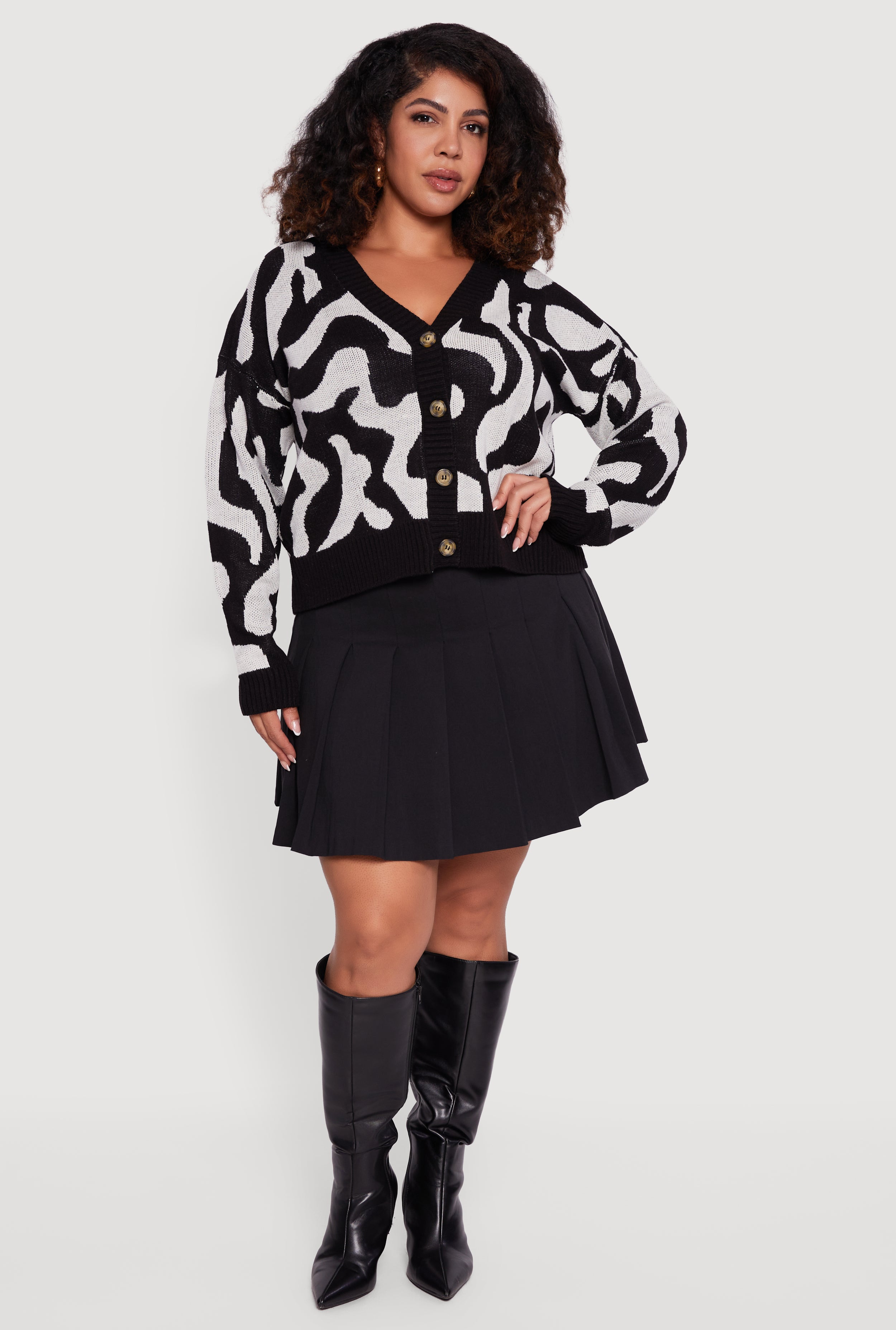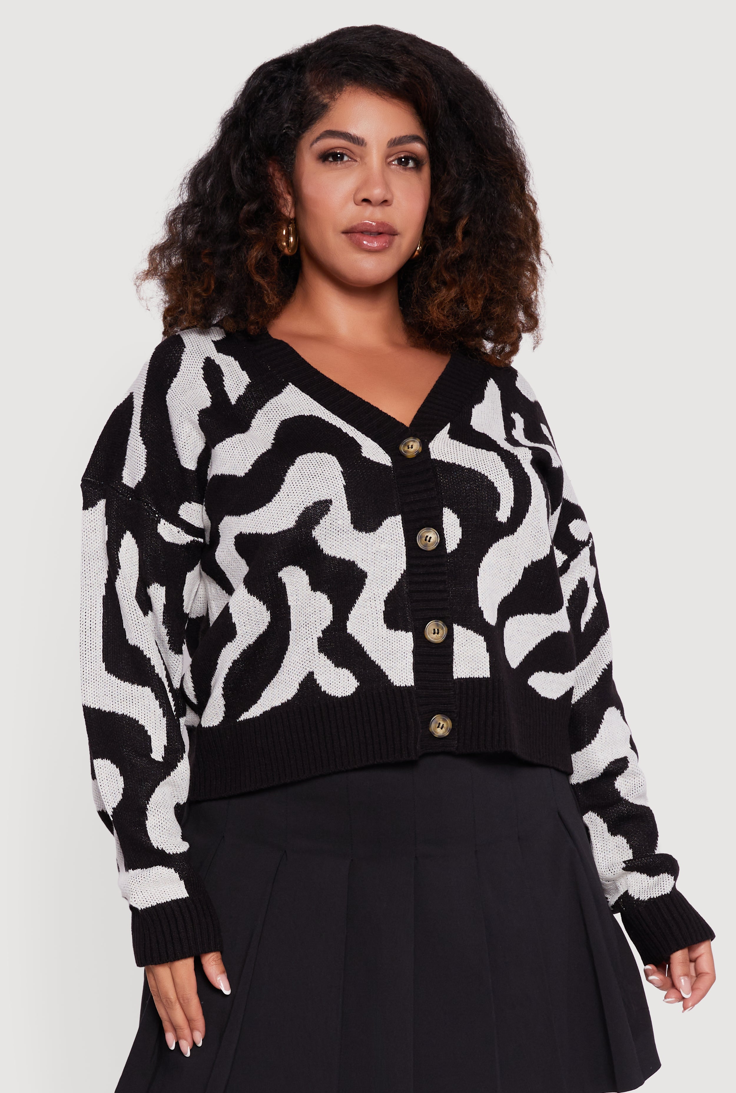 Plus Size Swirl Print Button Front Long Sleeve Cardigan