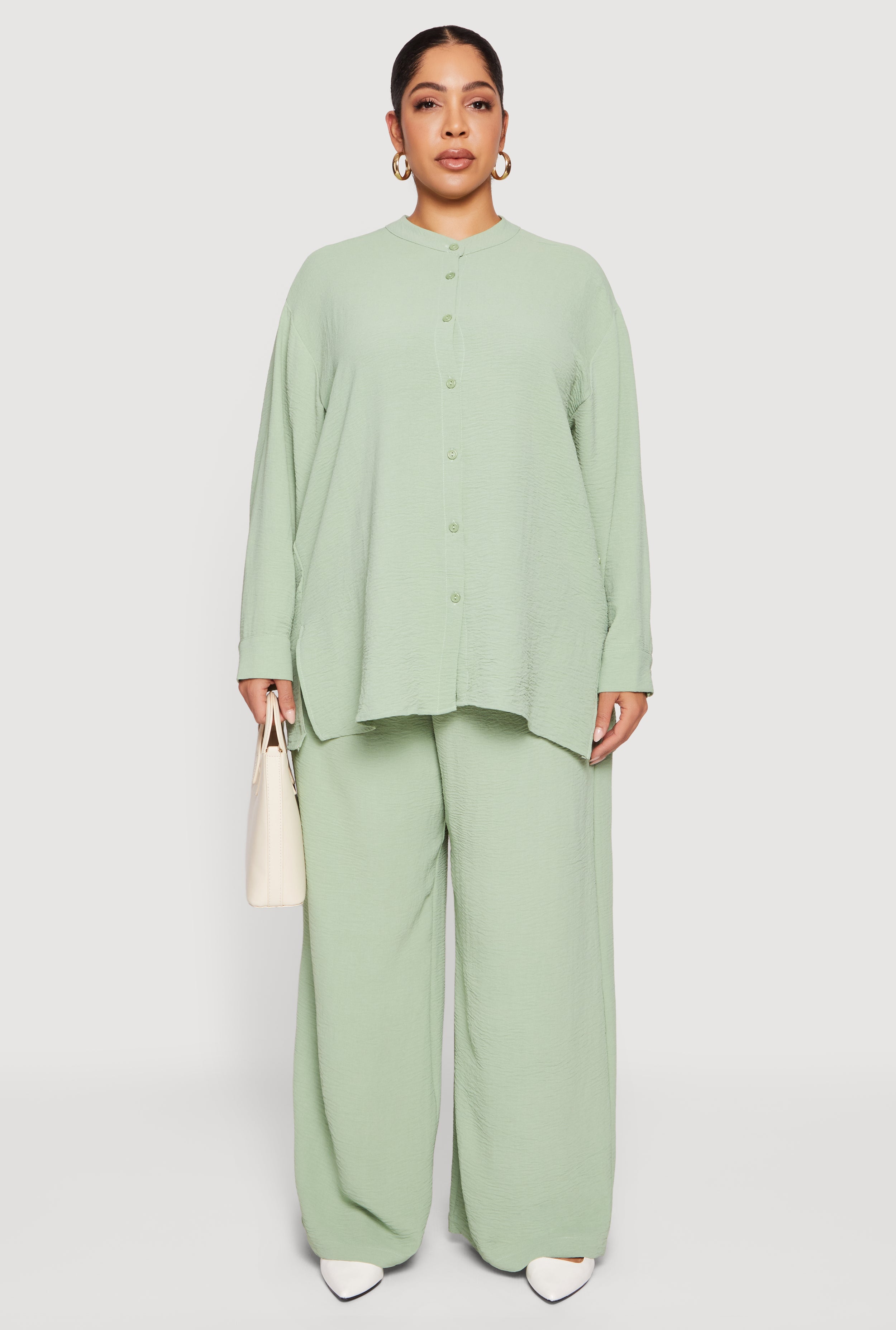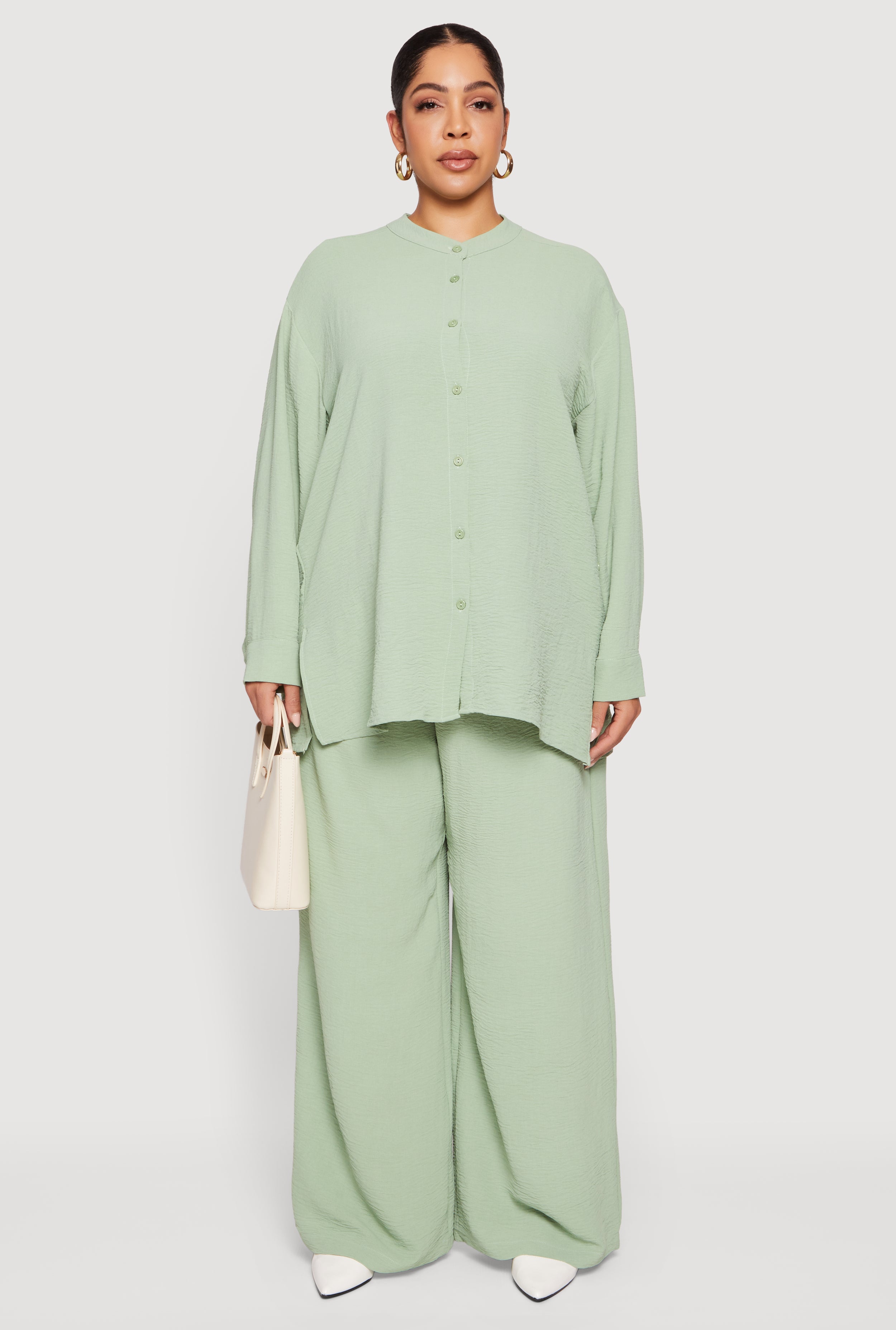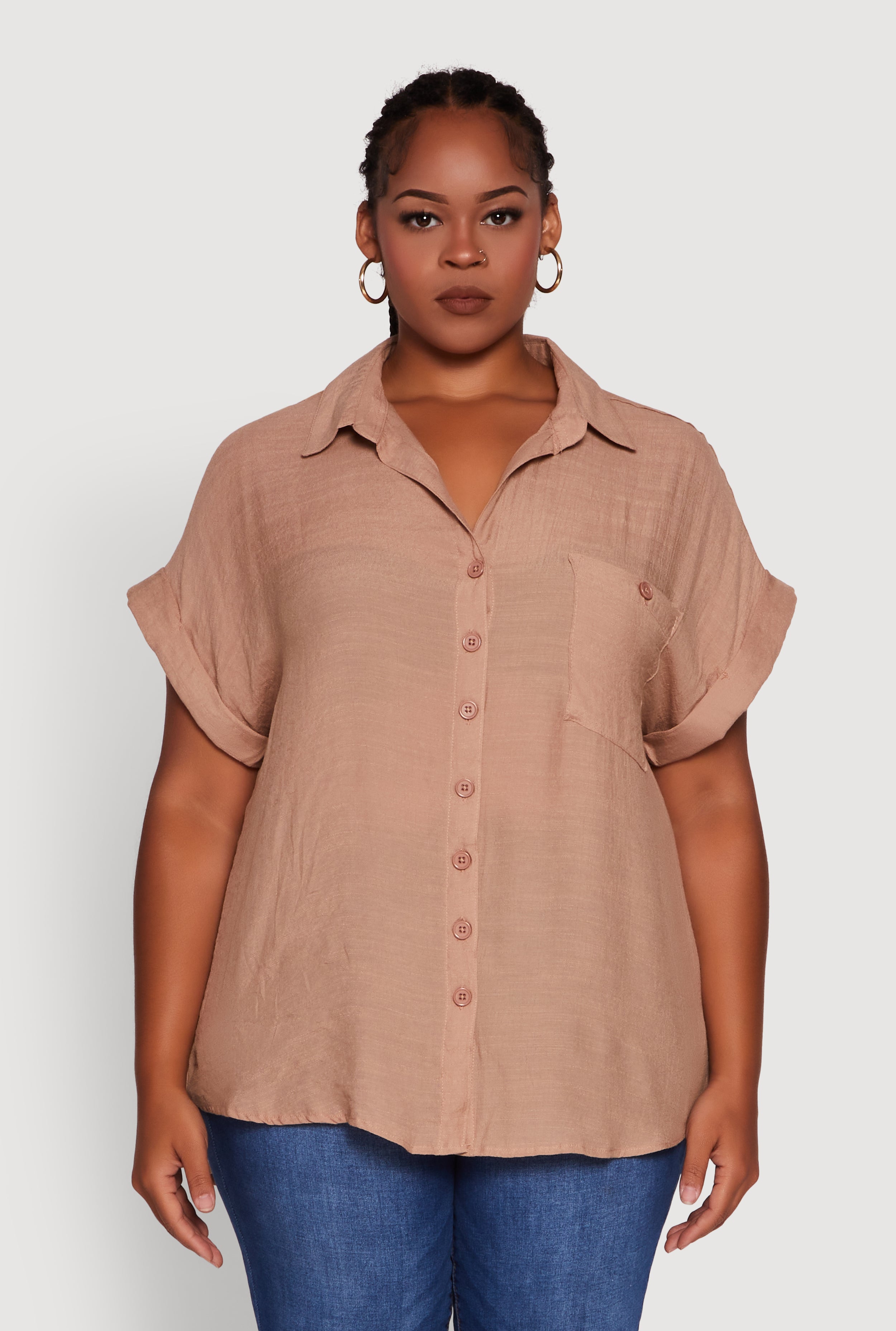 Plus Size Gauze Knit Button Front Dolman Sleeve Shirt