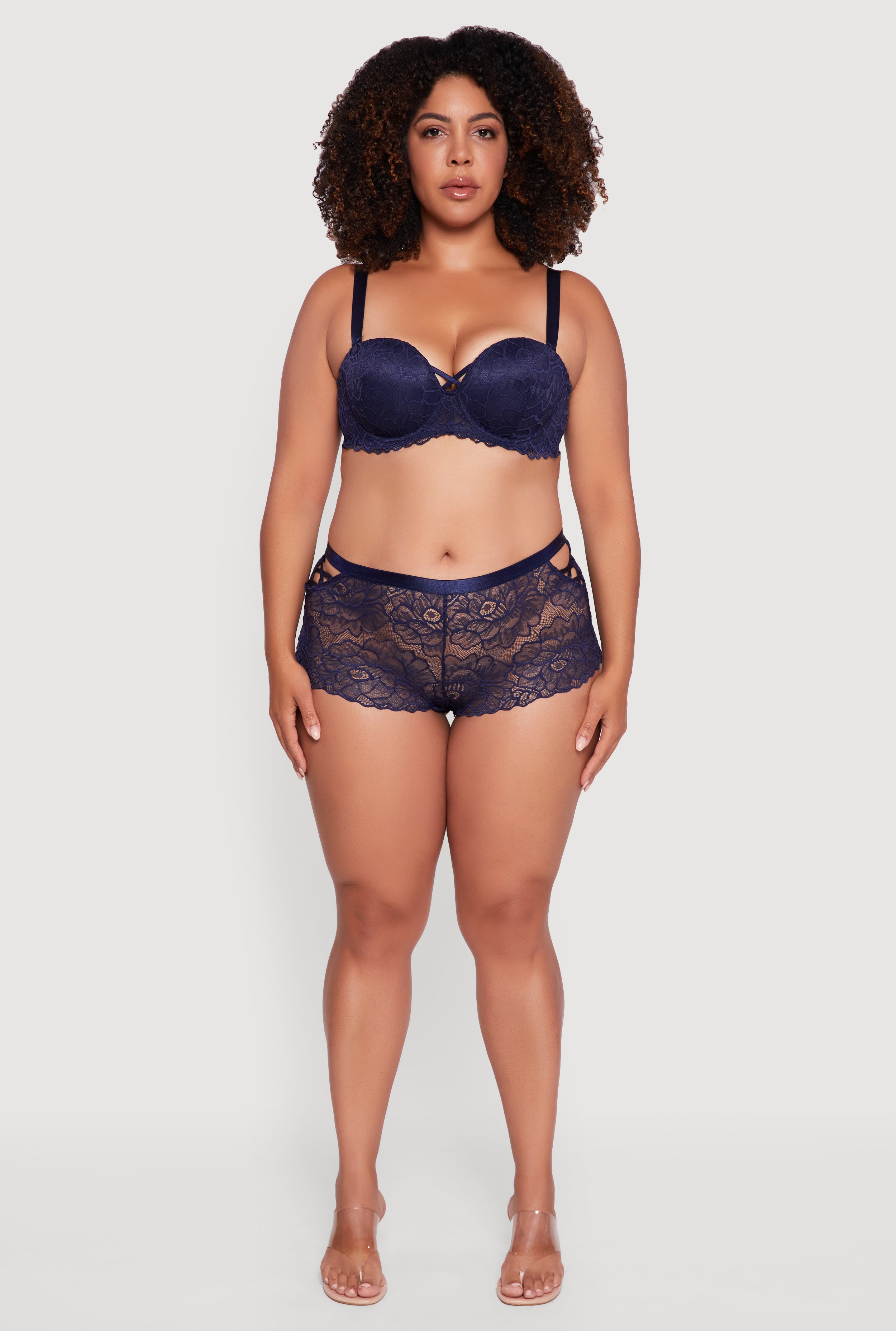 Plus Size Caged V Back Scalloped Lace Boyshort Panty