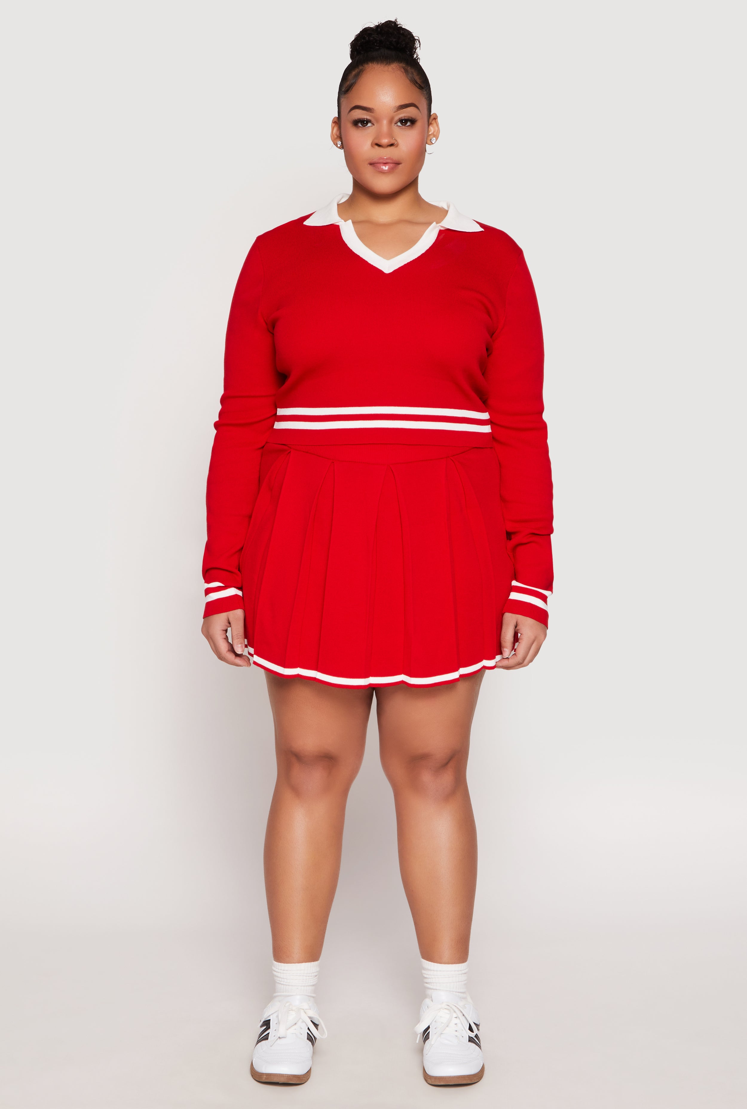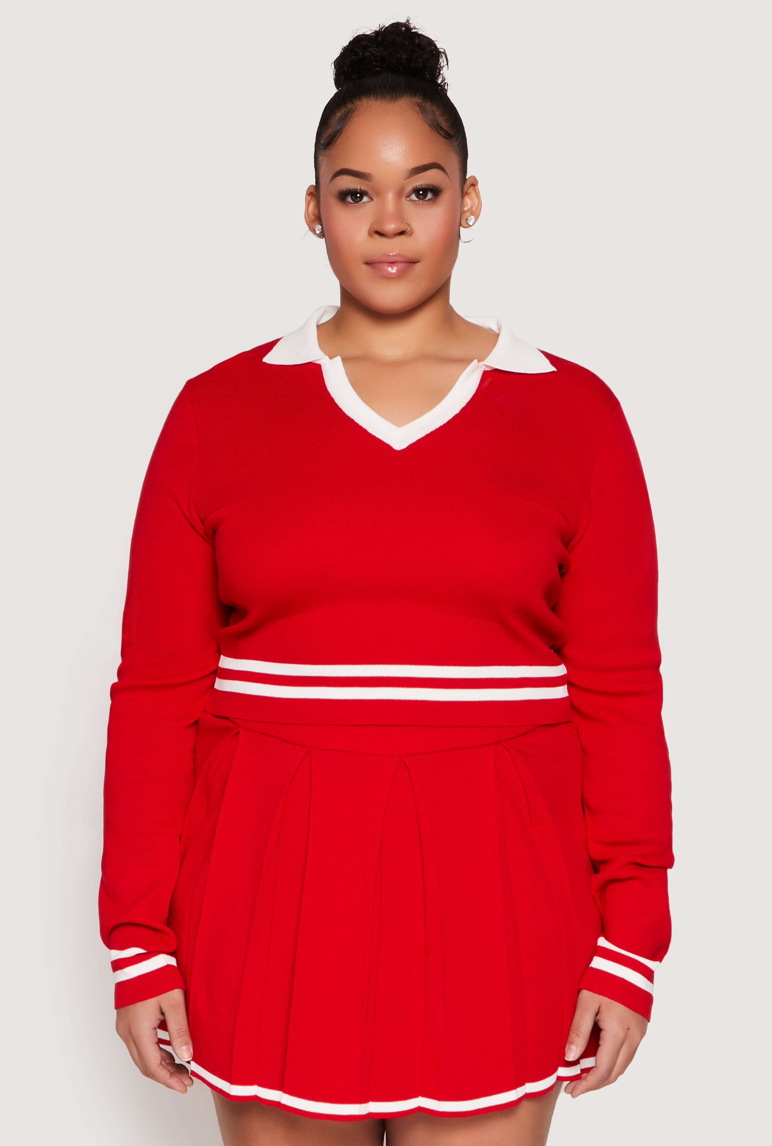 Plus Size Daisy Varsity Stripe Detail Cropped Sweater