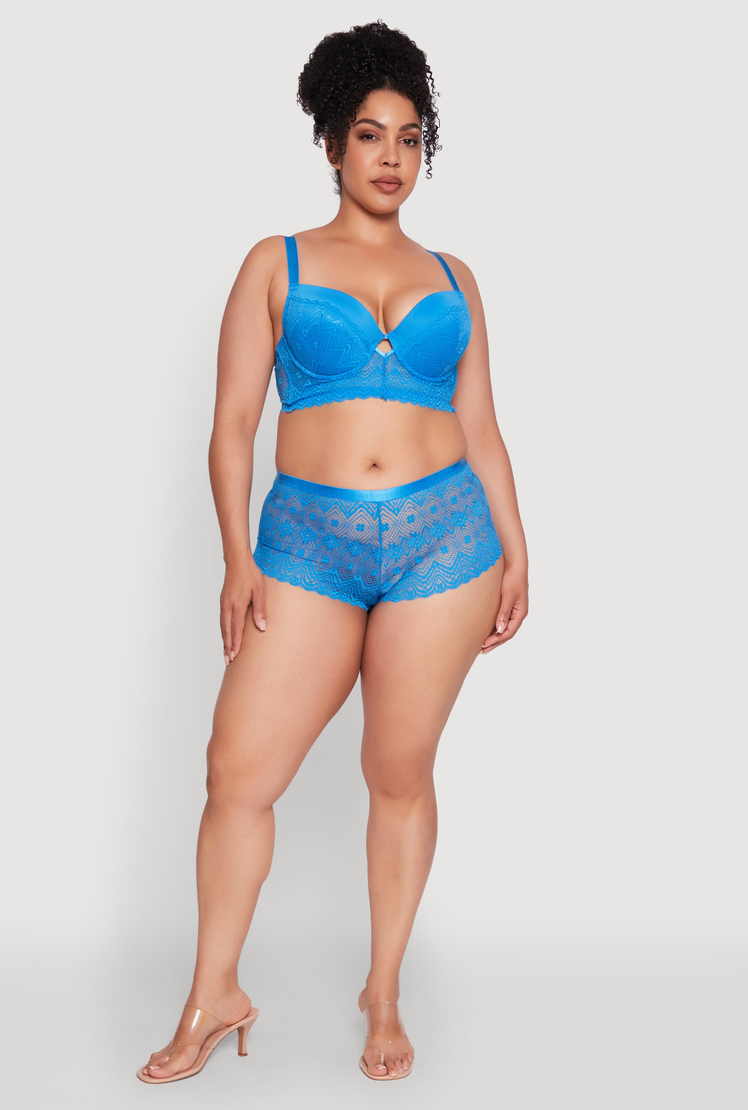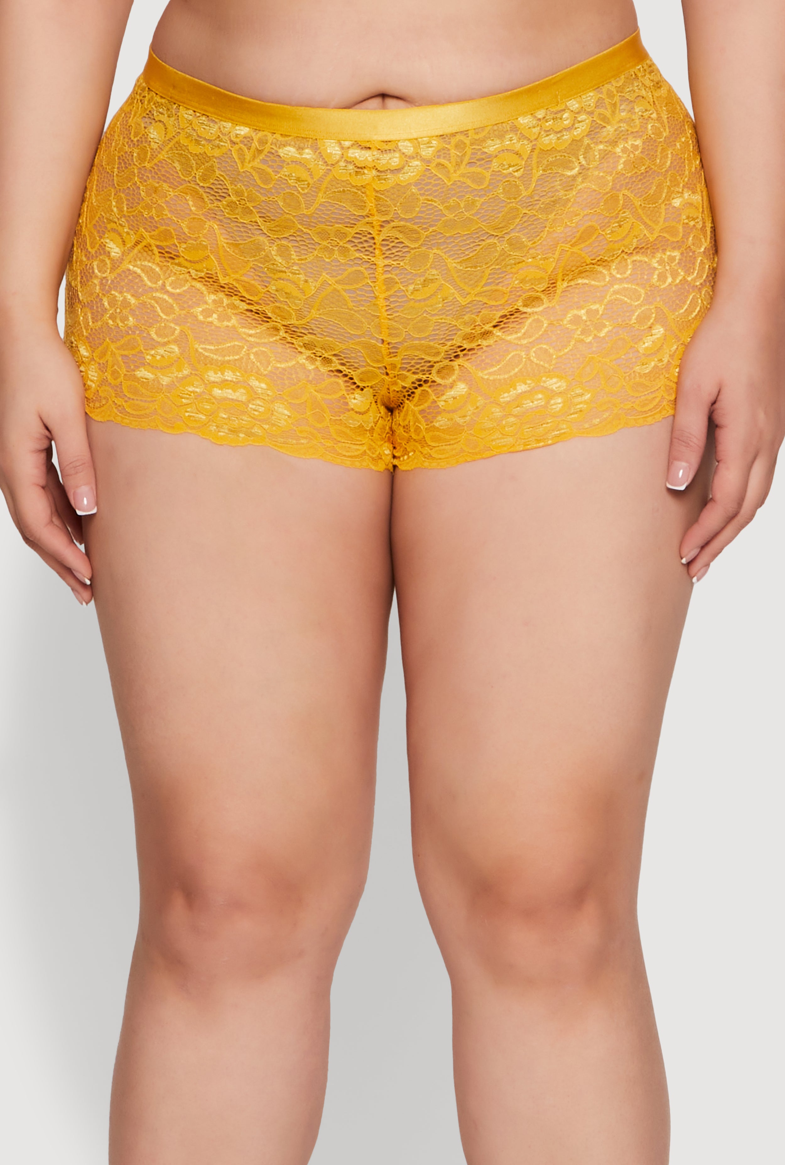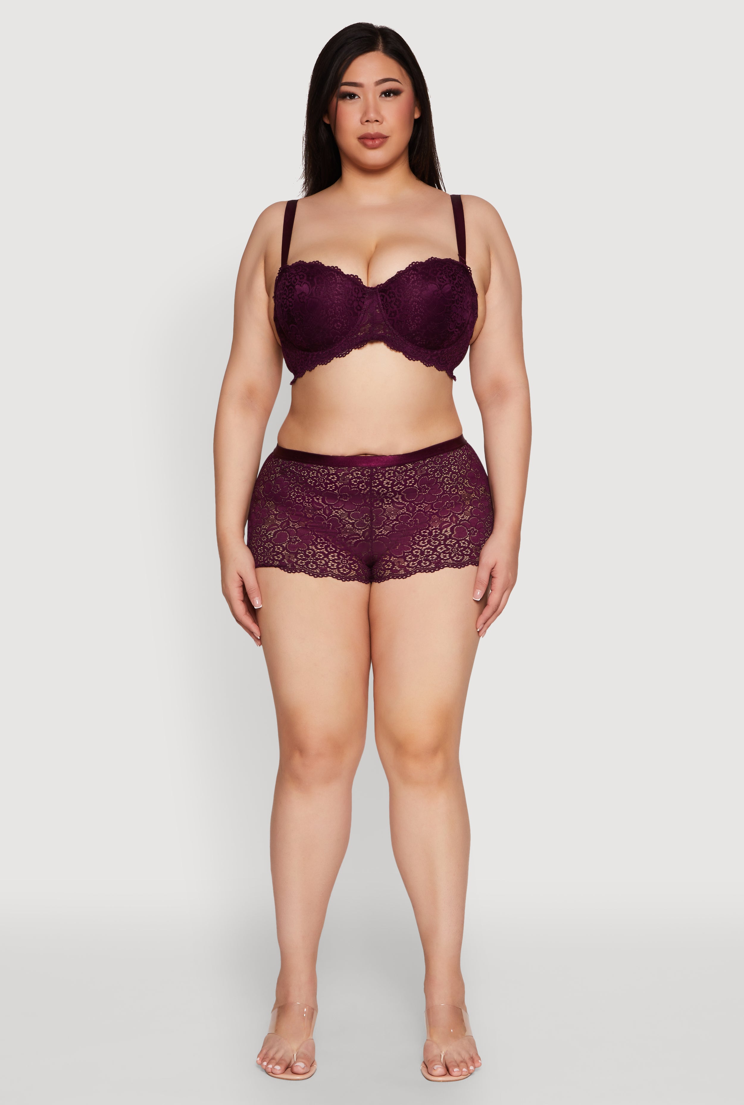 Plus Size Scalloped Floral Lace Boyshort Panty
