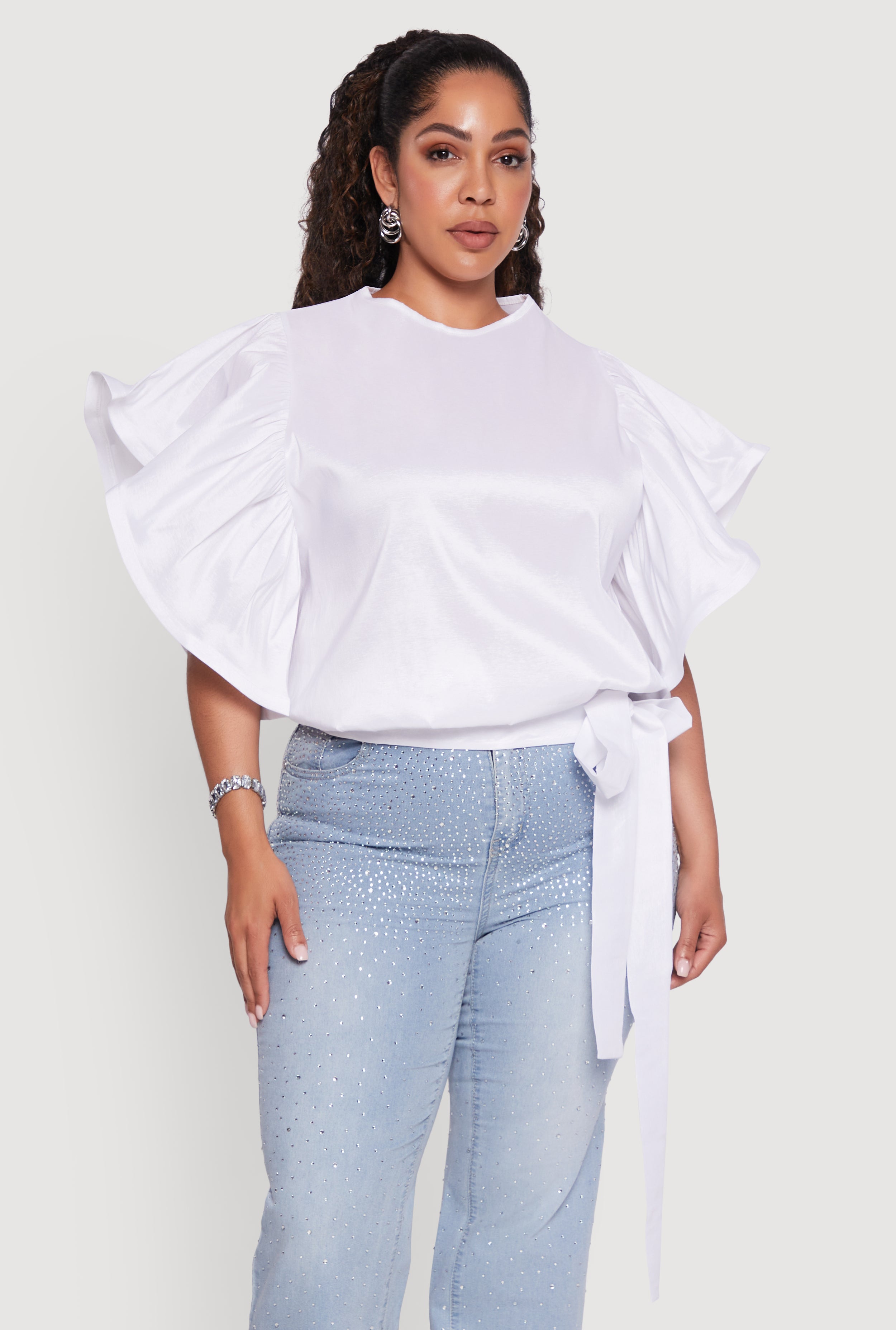 Plus Size Flutter Sleeve Blouse with Tie Waist Belt