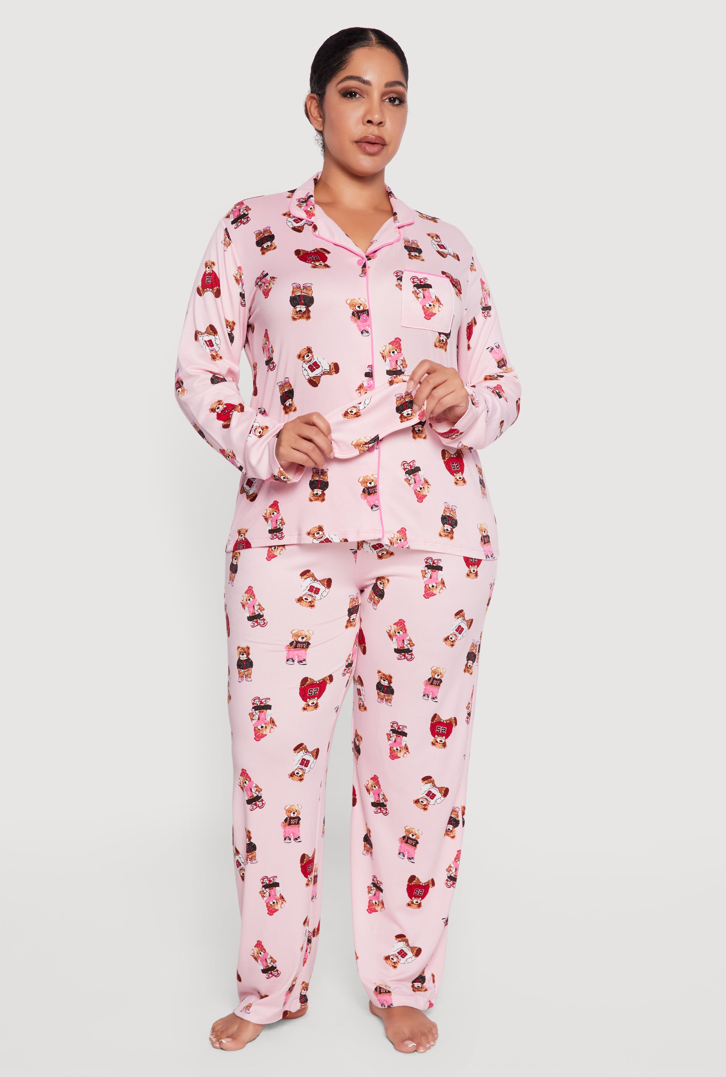 Plus Size Assorted Bear Graphic Pajama Top and Pants with Sleep Mask