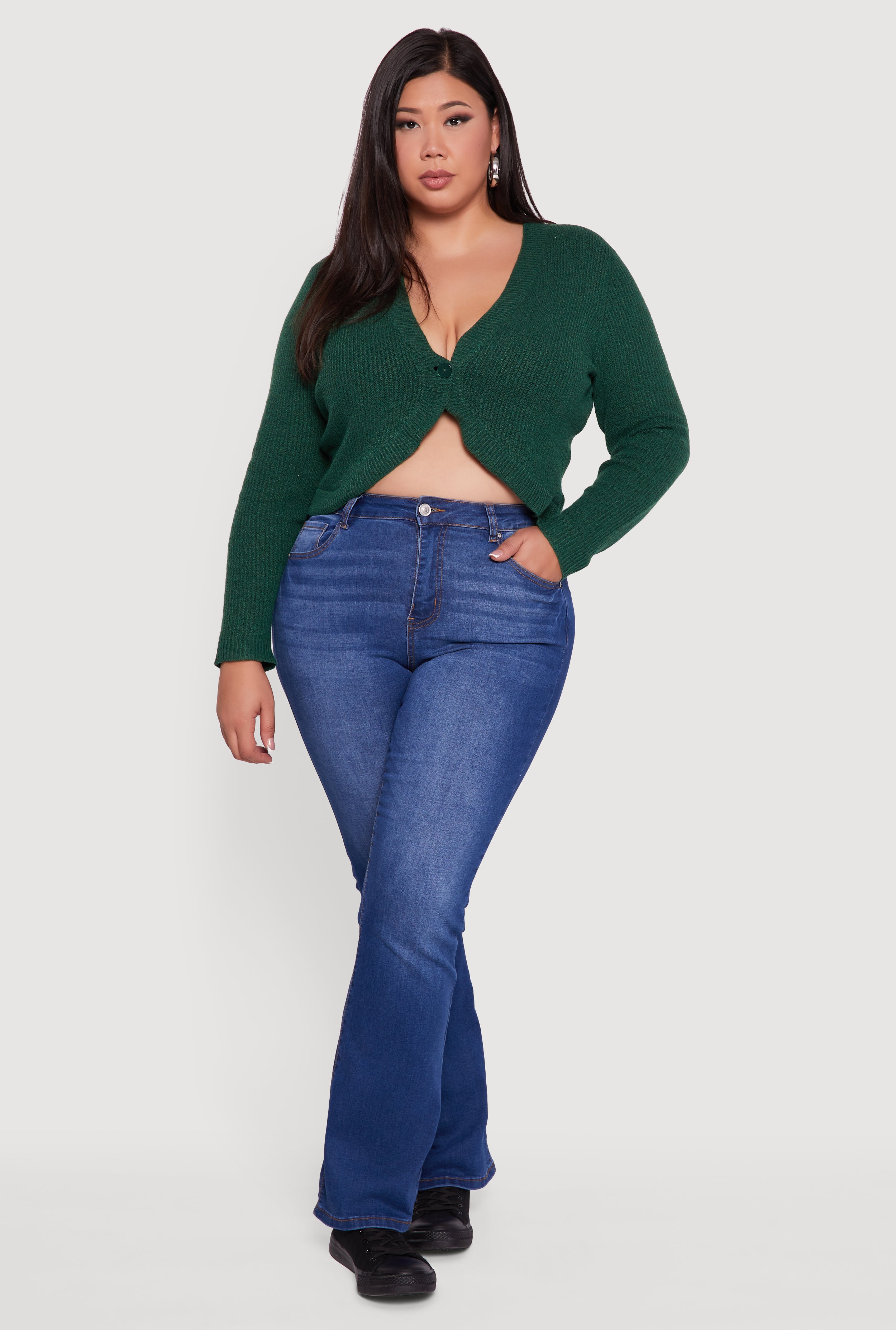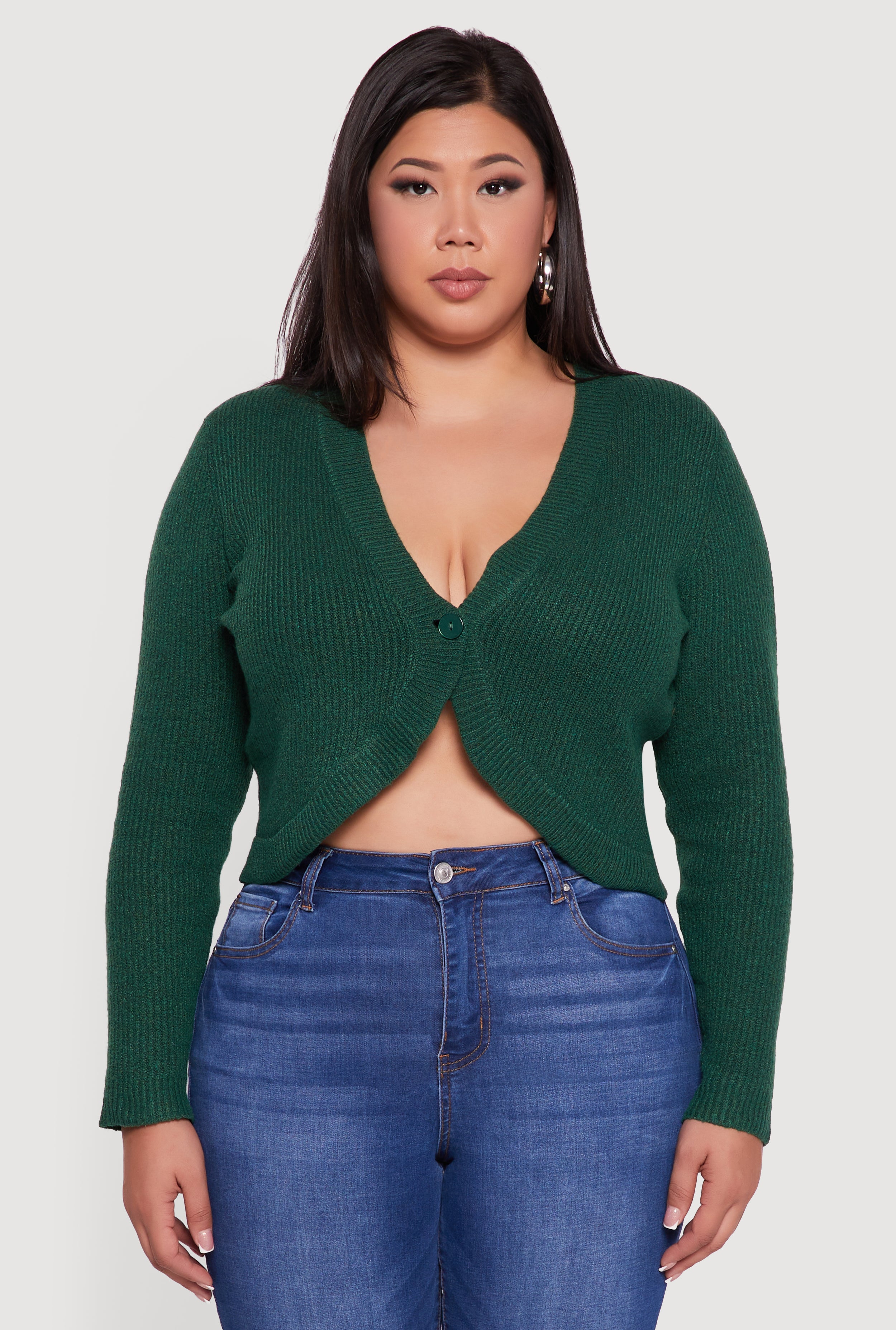 Plus Size One Button Long Sleeve Cropped Cardigan