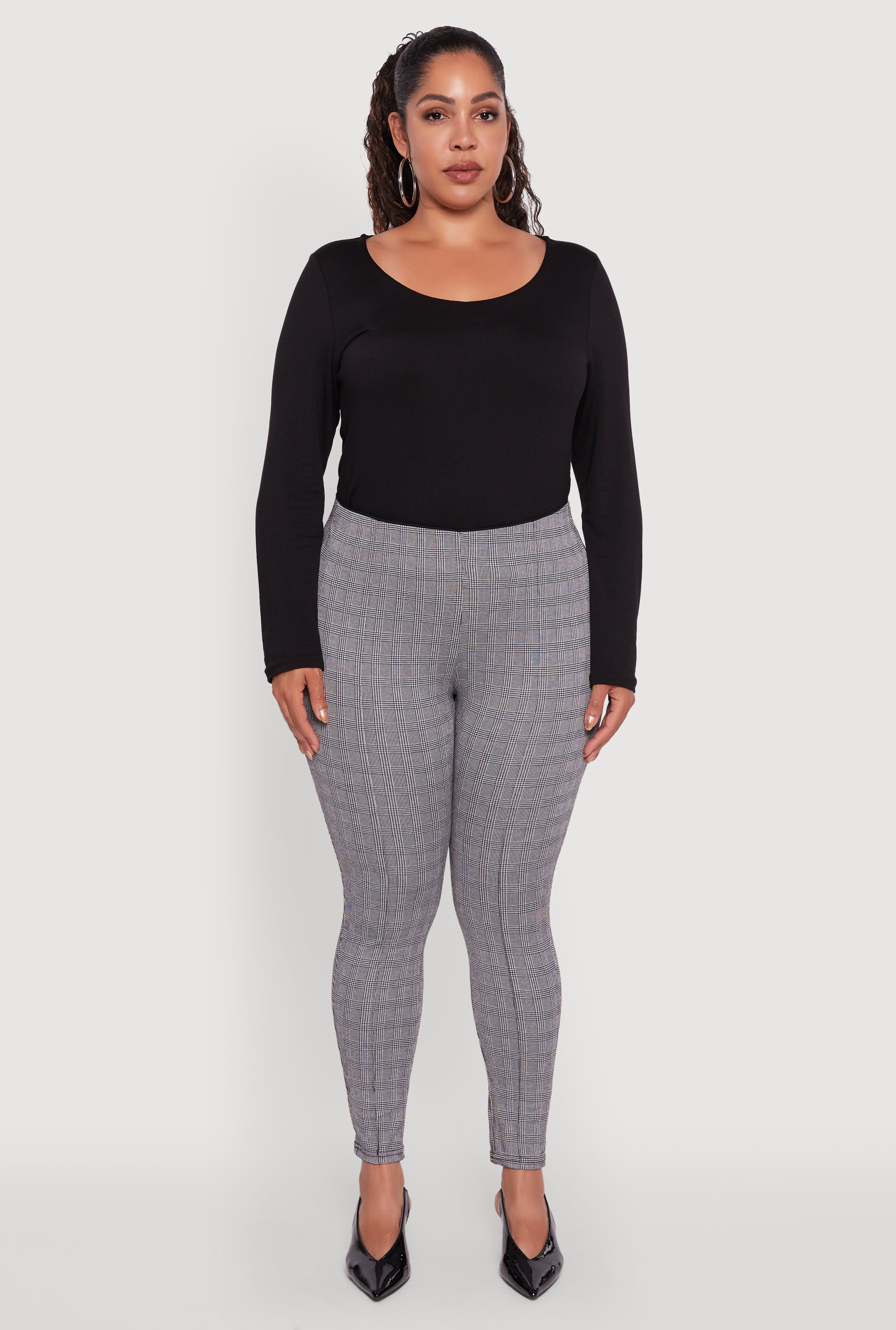 Plus Size High Waisted Plaid Skinny Dress Pants