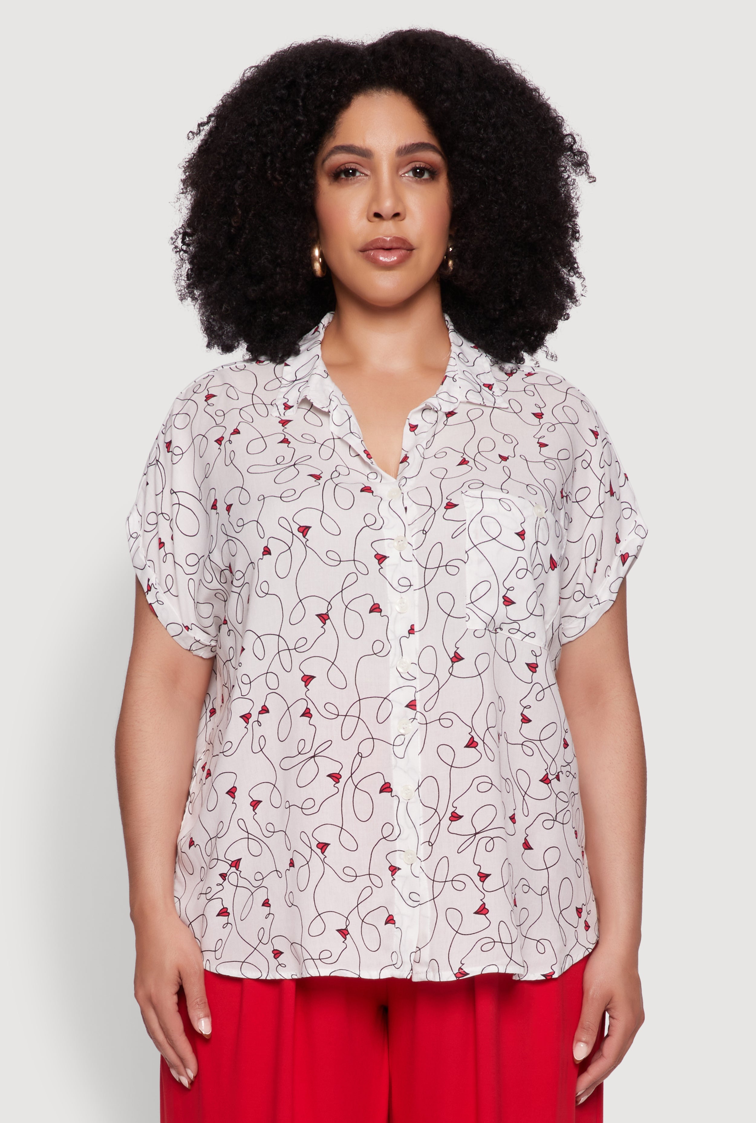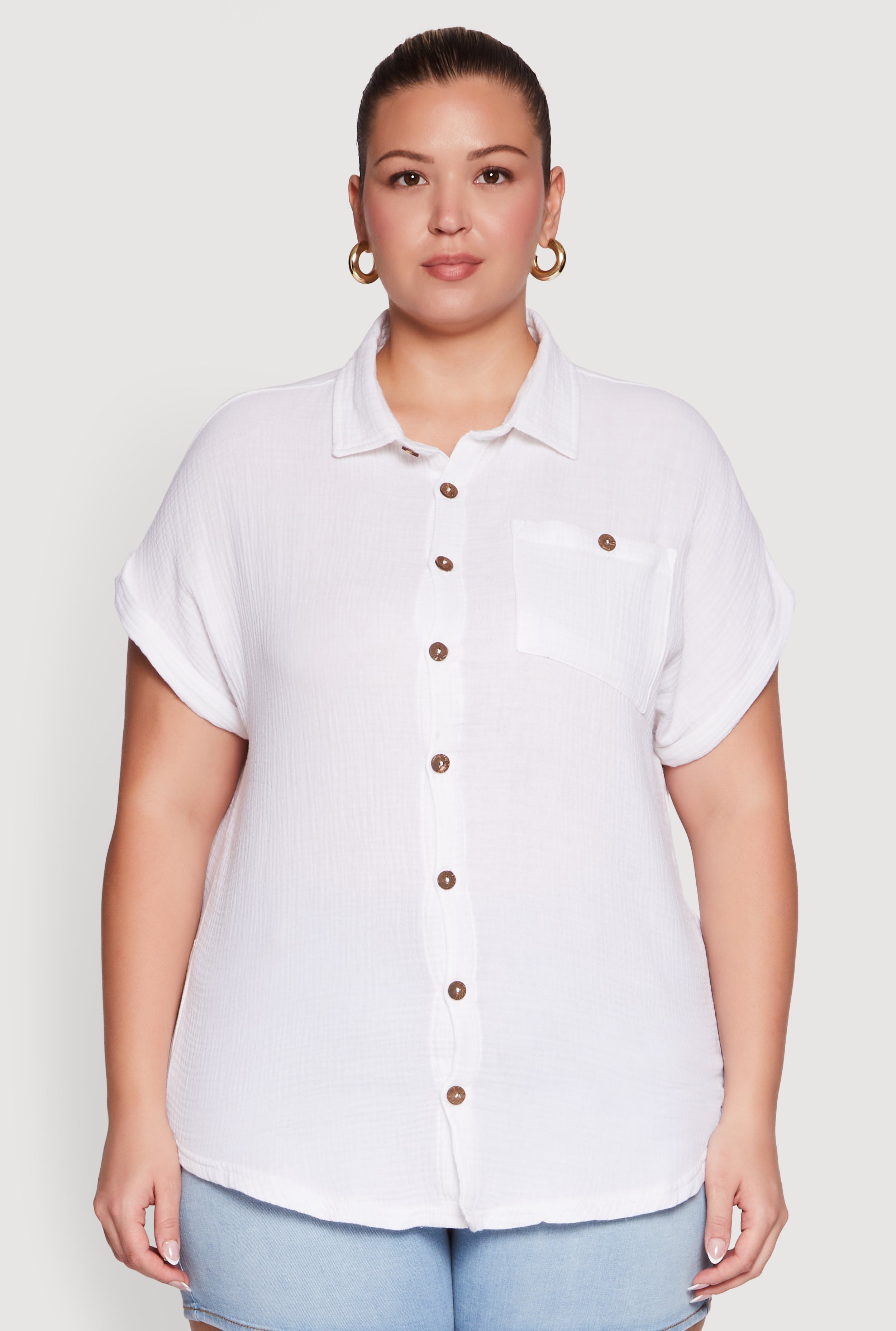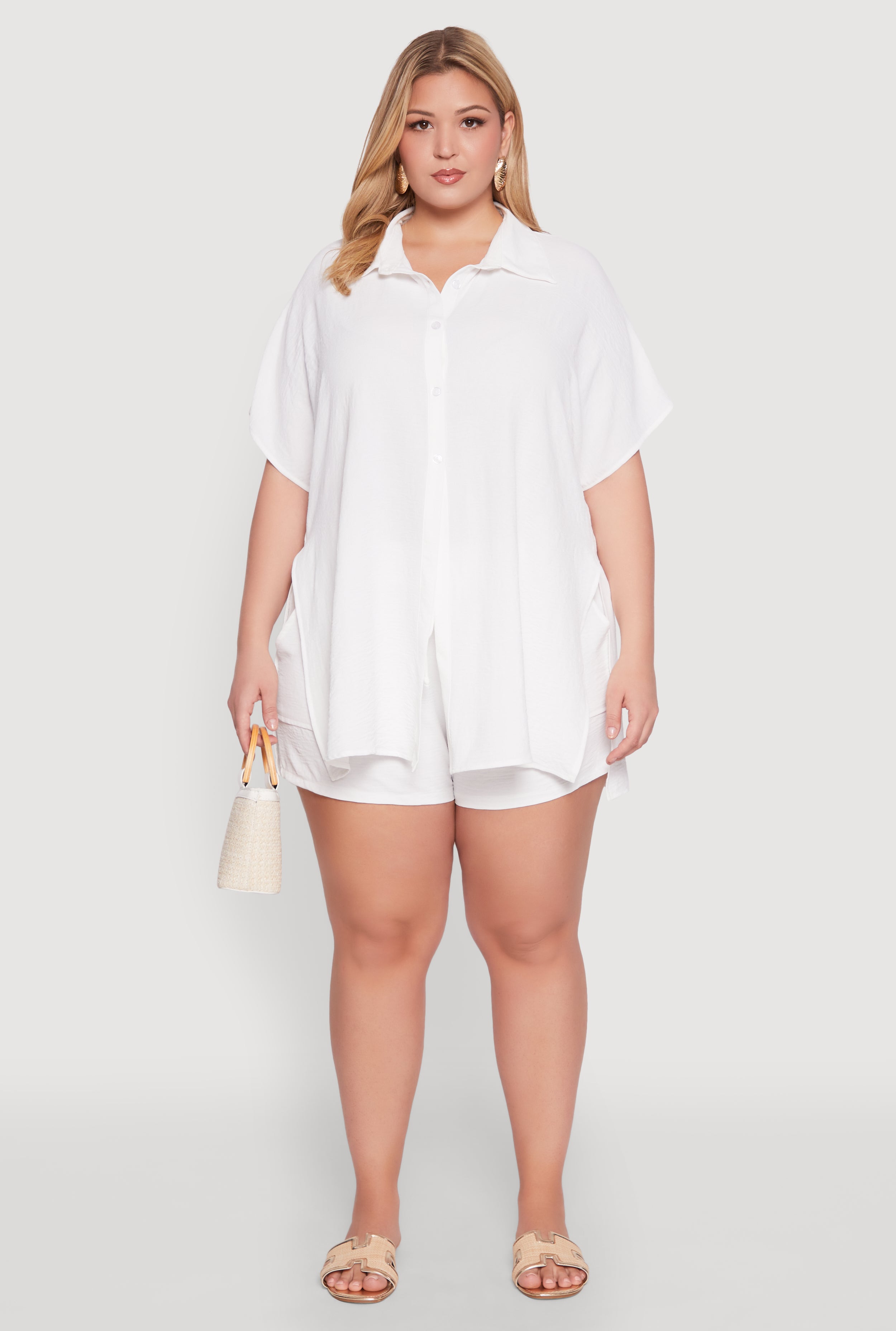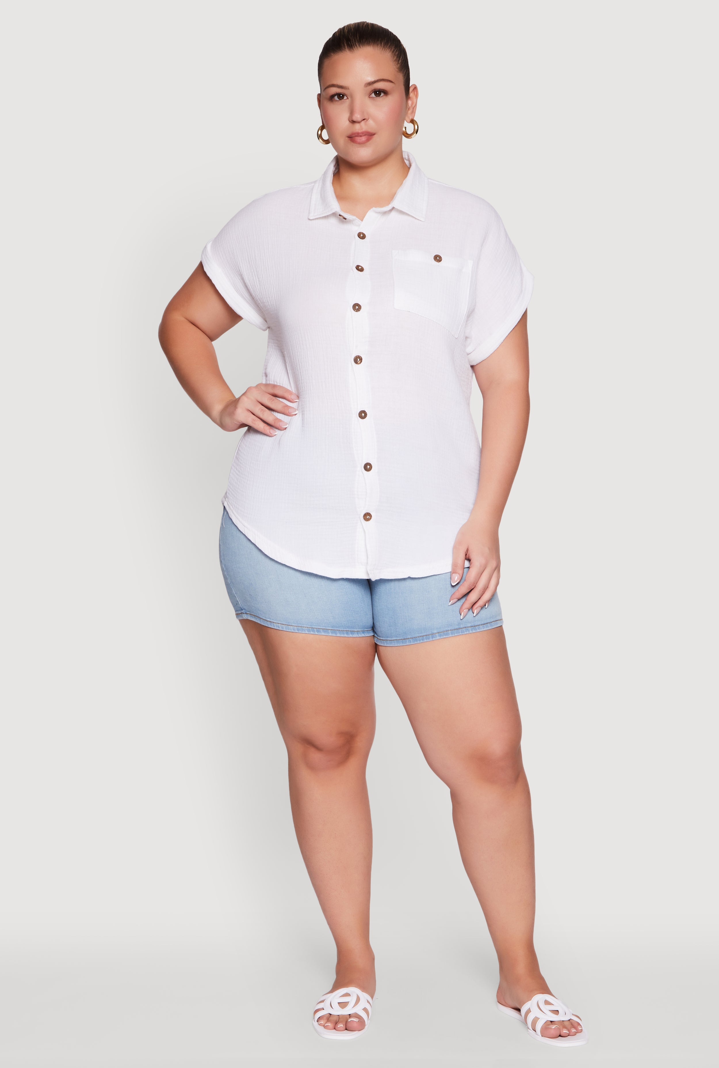 Plus Size Chic Boxy Button Front Short Sleeve Shirt