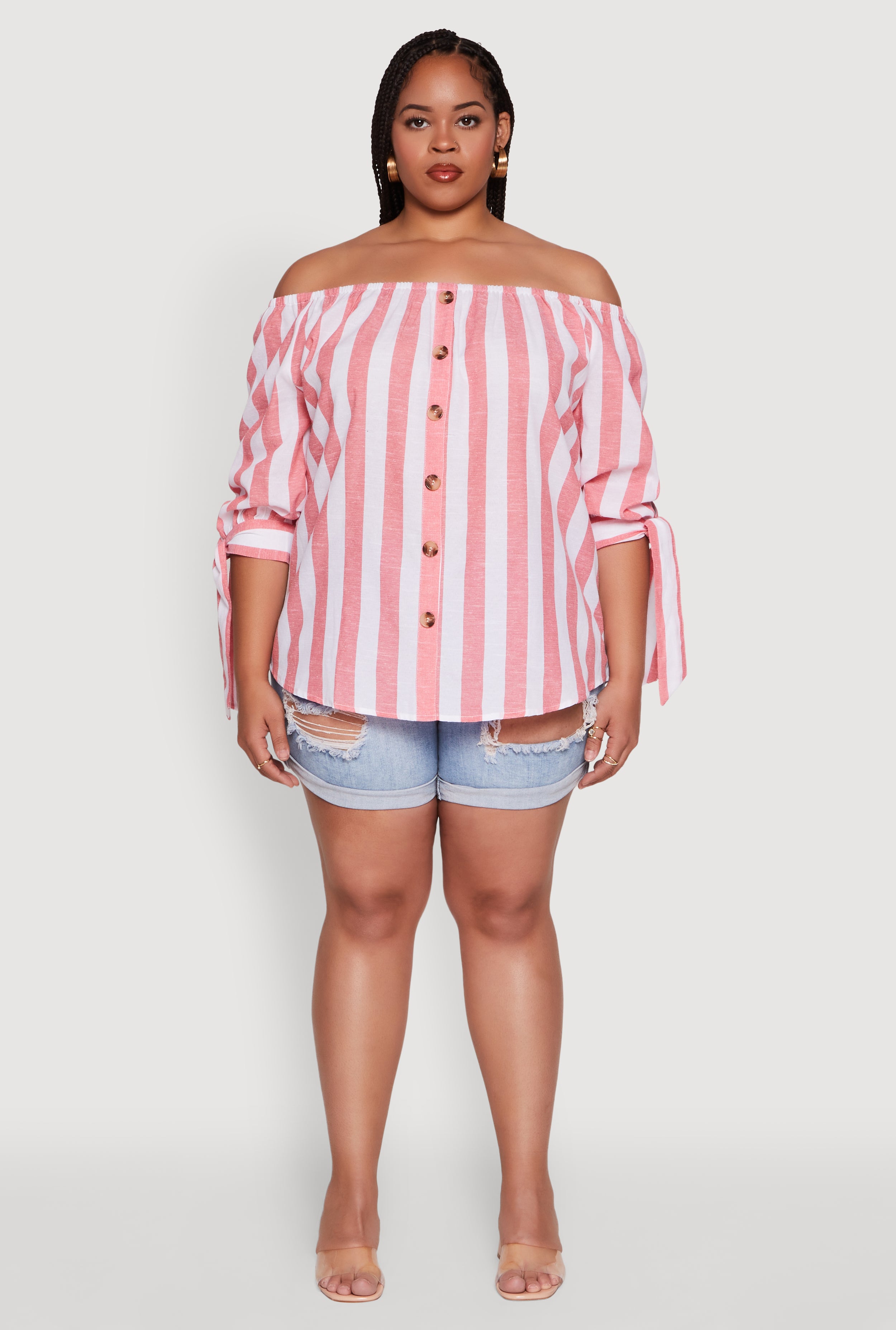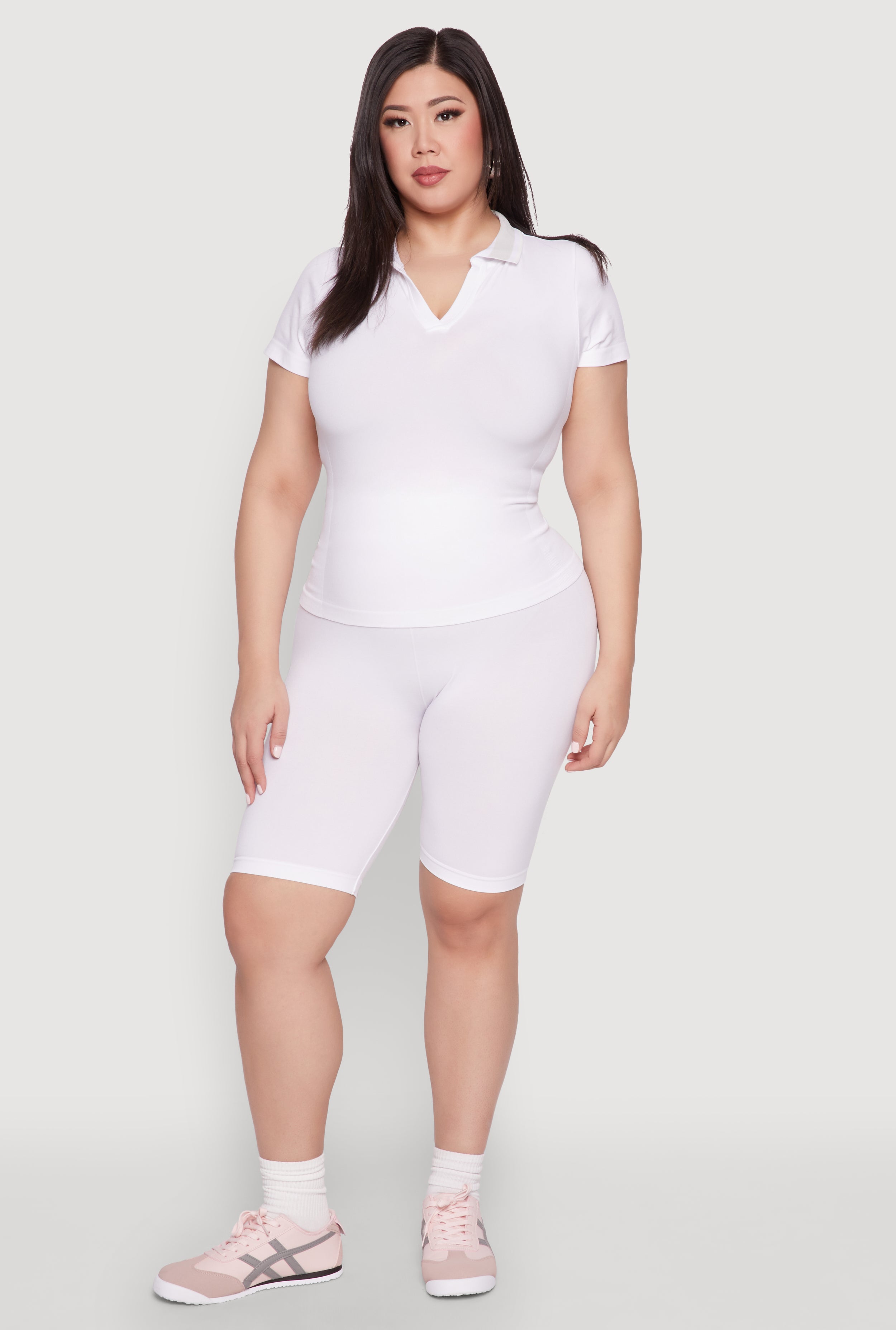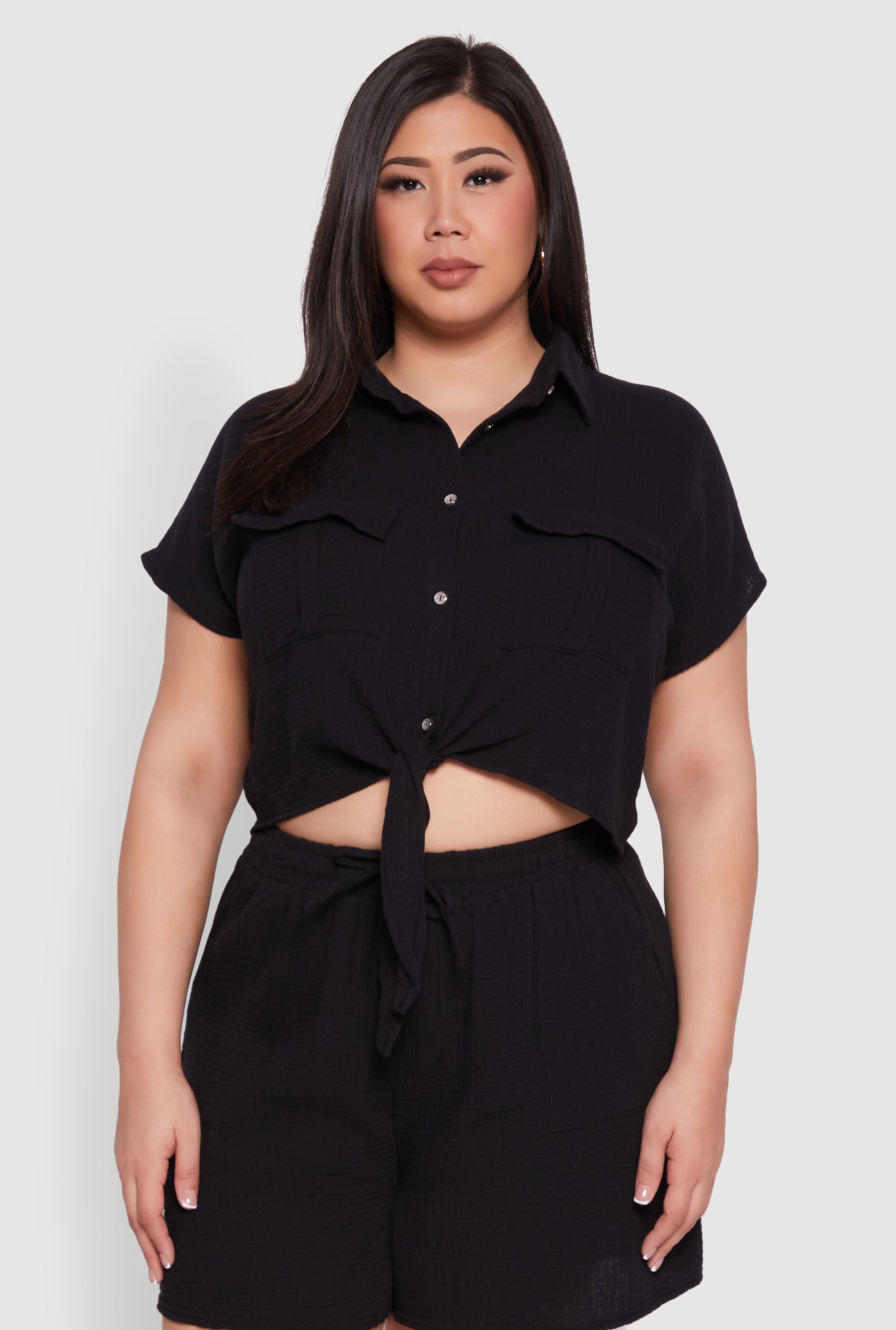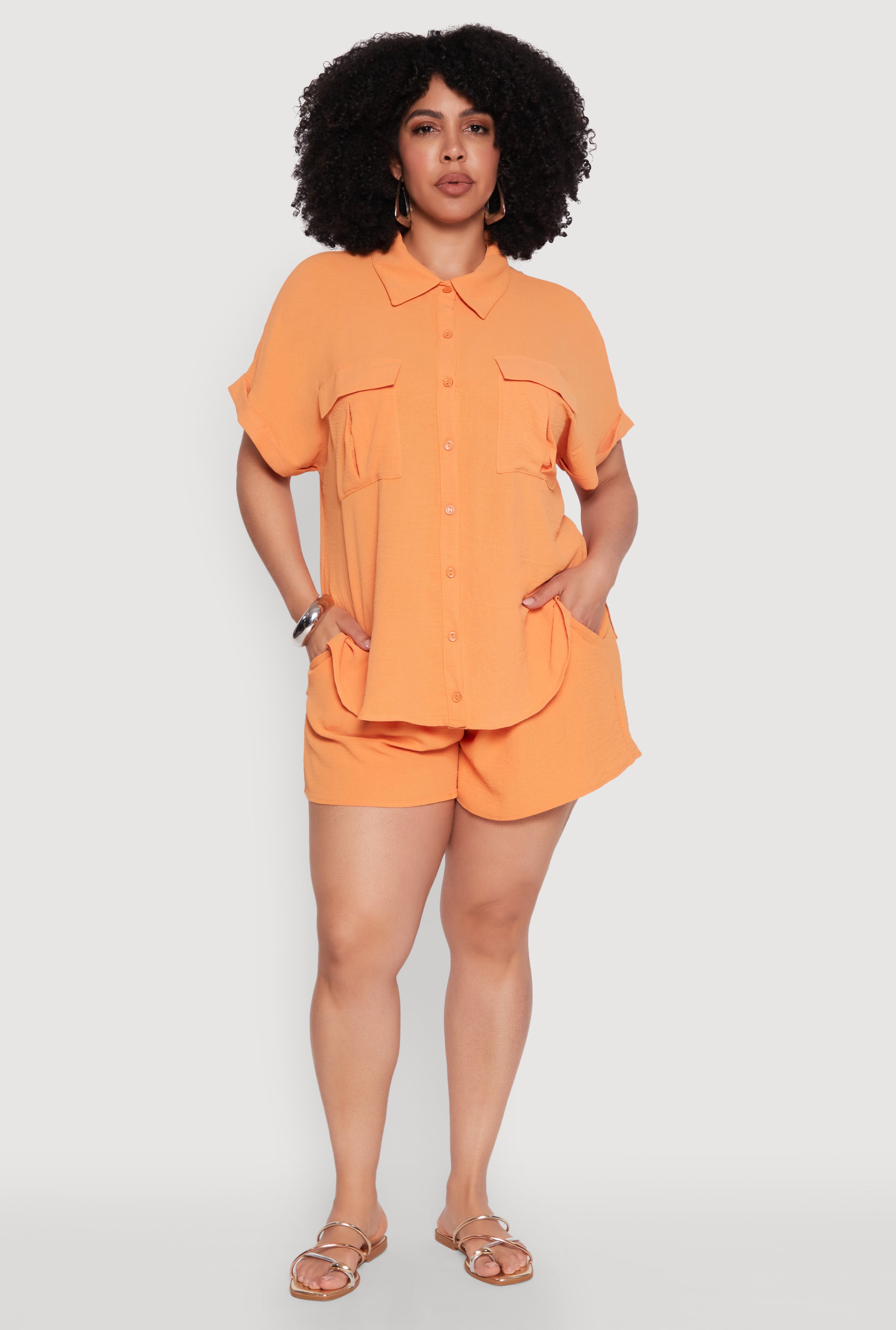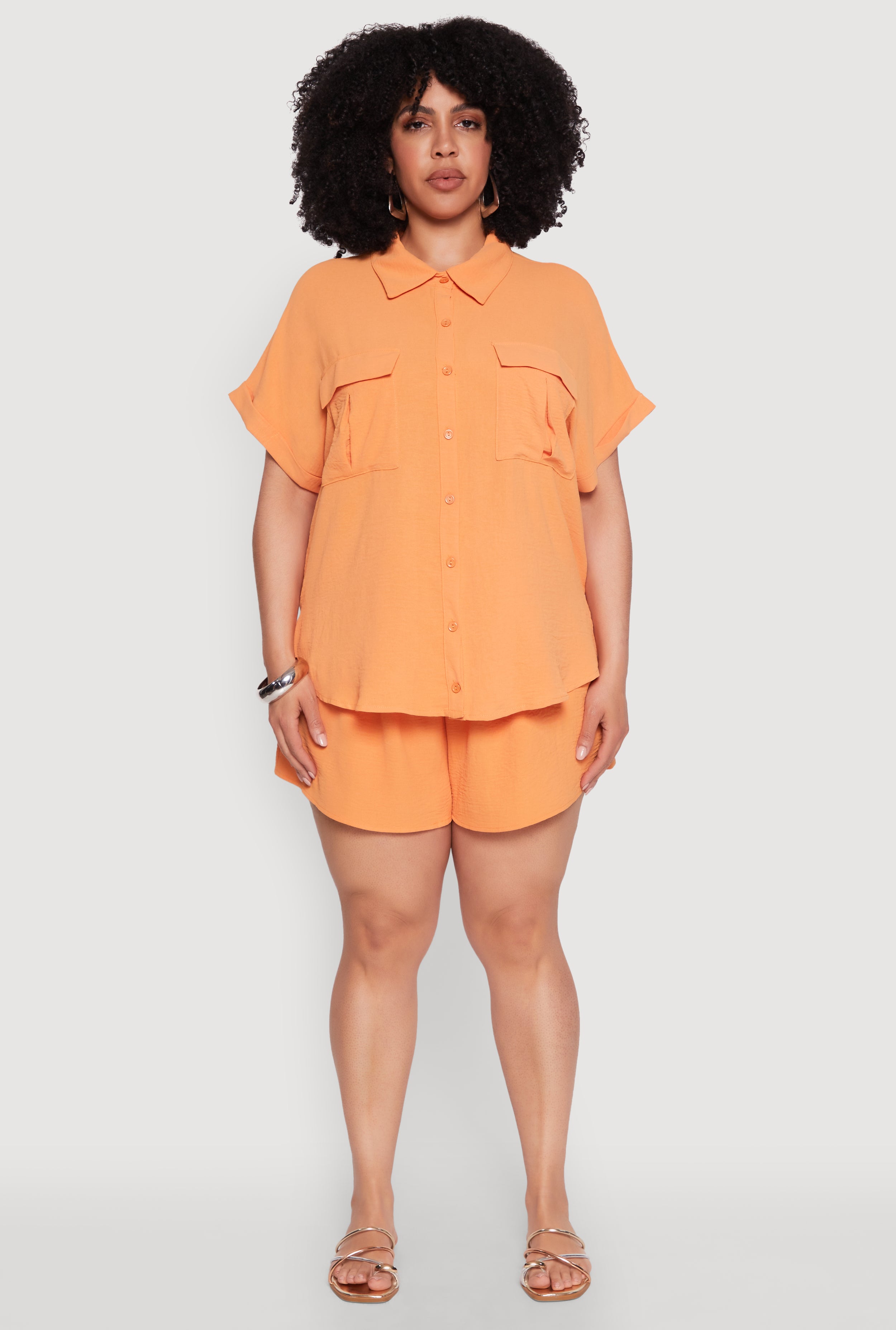 Plus Size Chic Boxy Button Front Short Sleeve Shirt