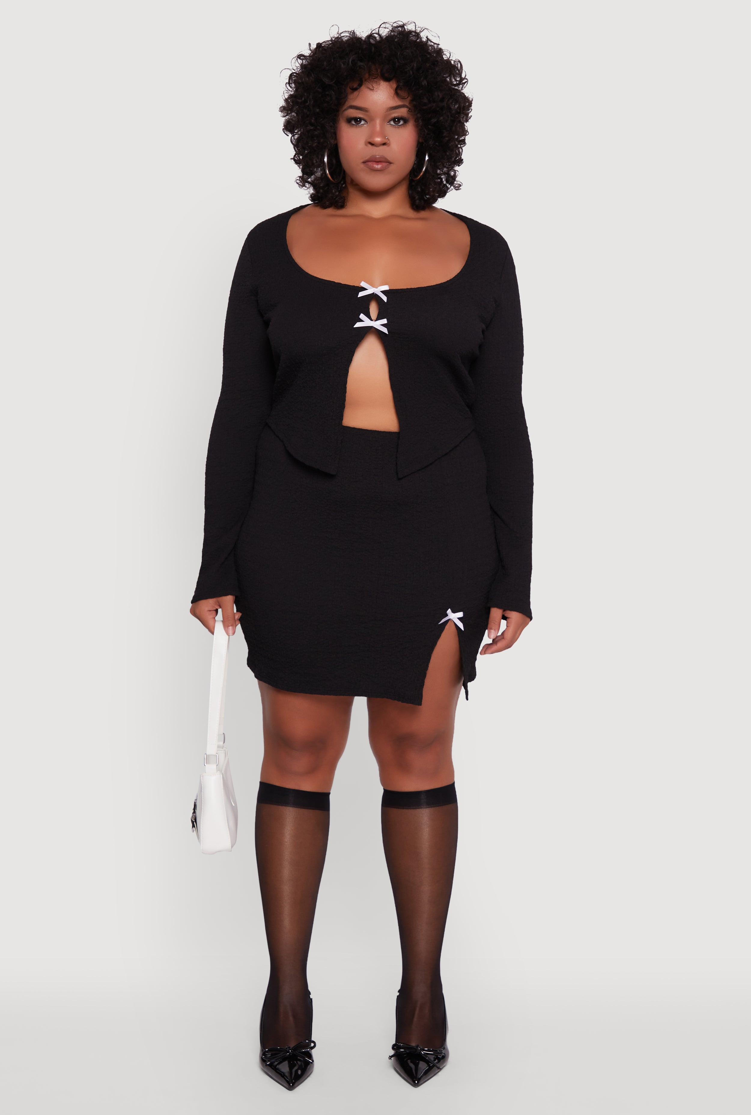Plus Size High Waisted Side Slit Bow Detail Mini Skirt
