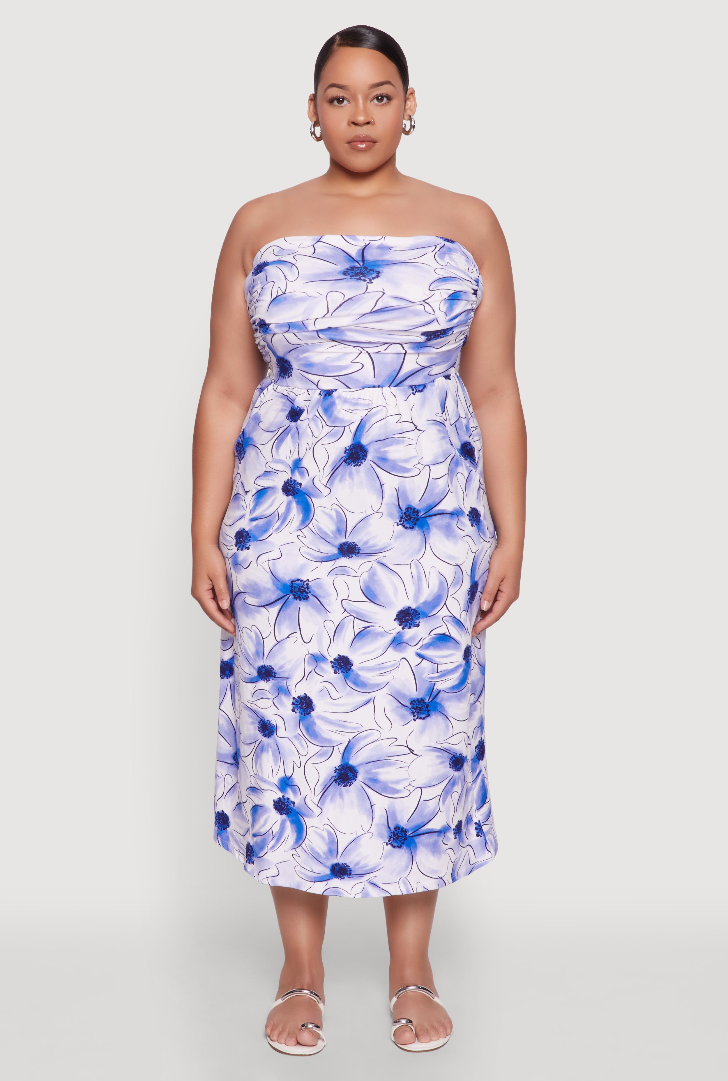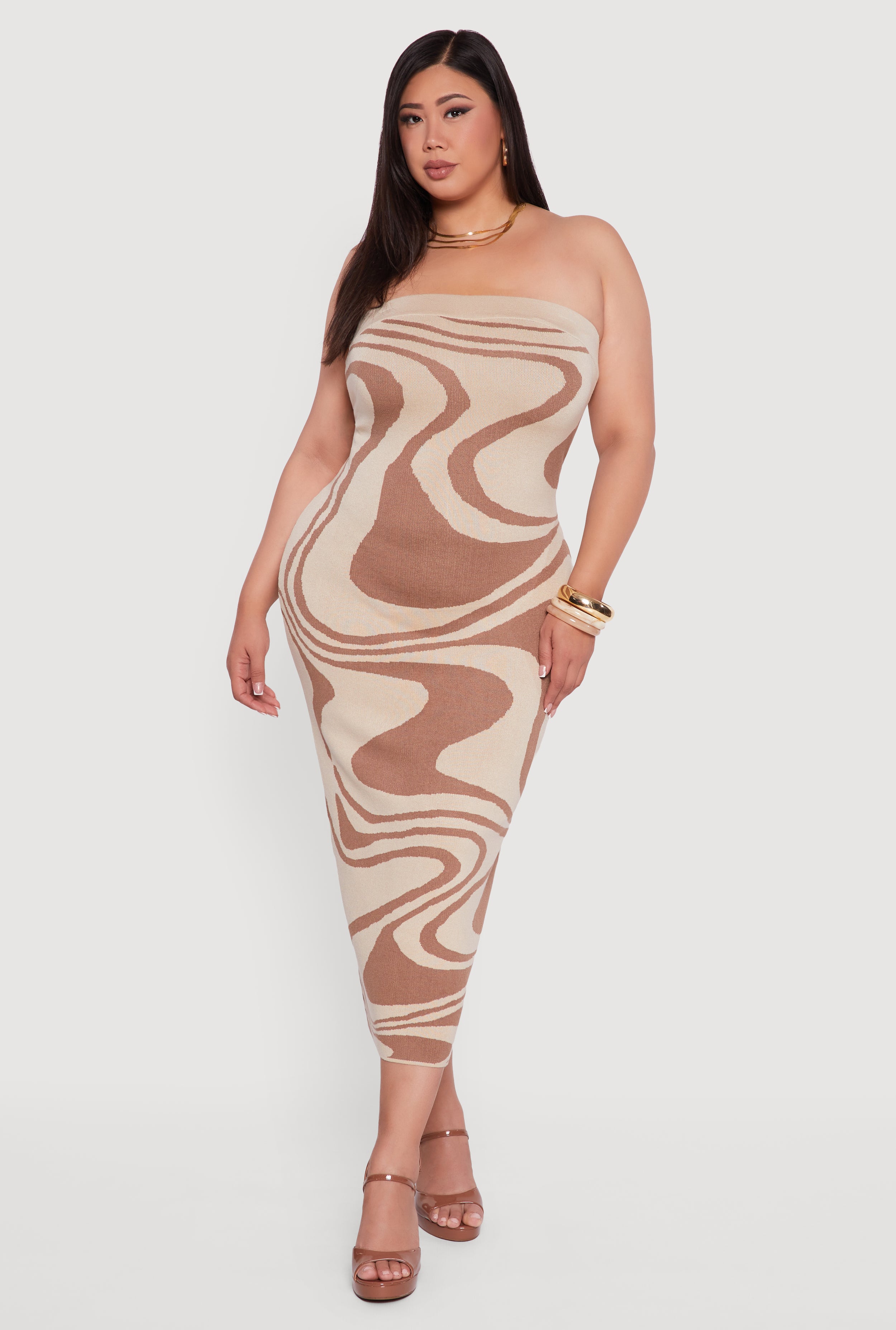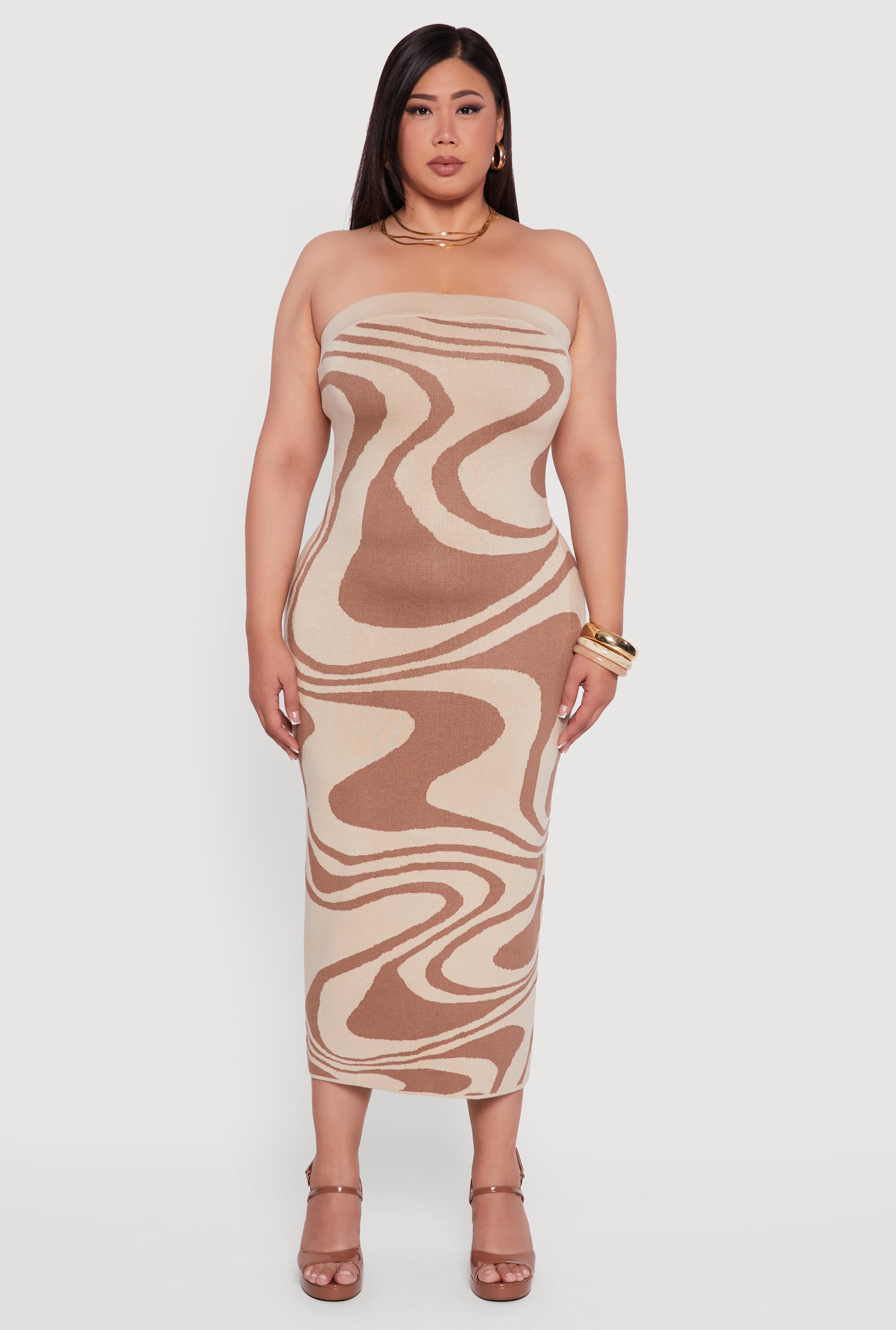 Plus Size Swirl Print Zip Back Tube Maxi Dress