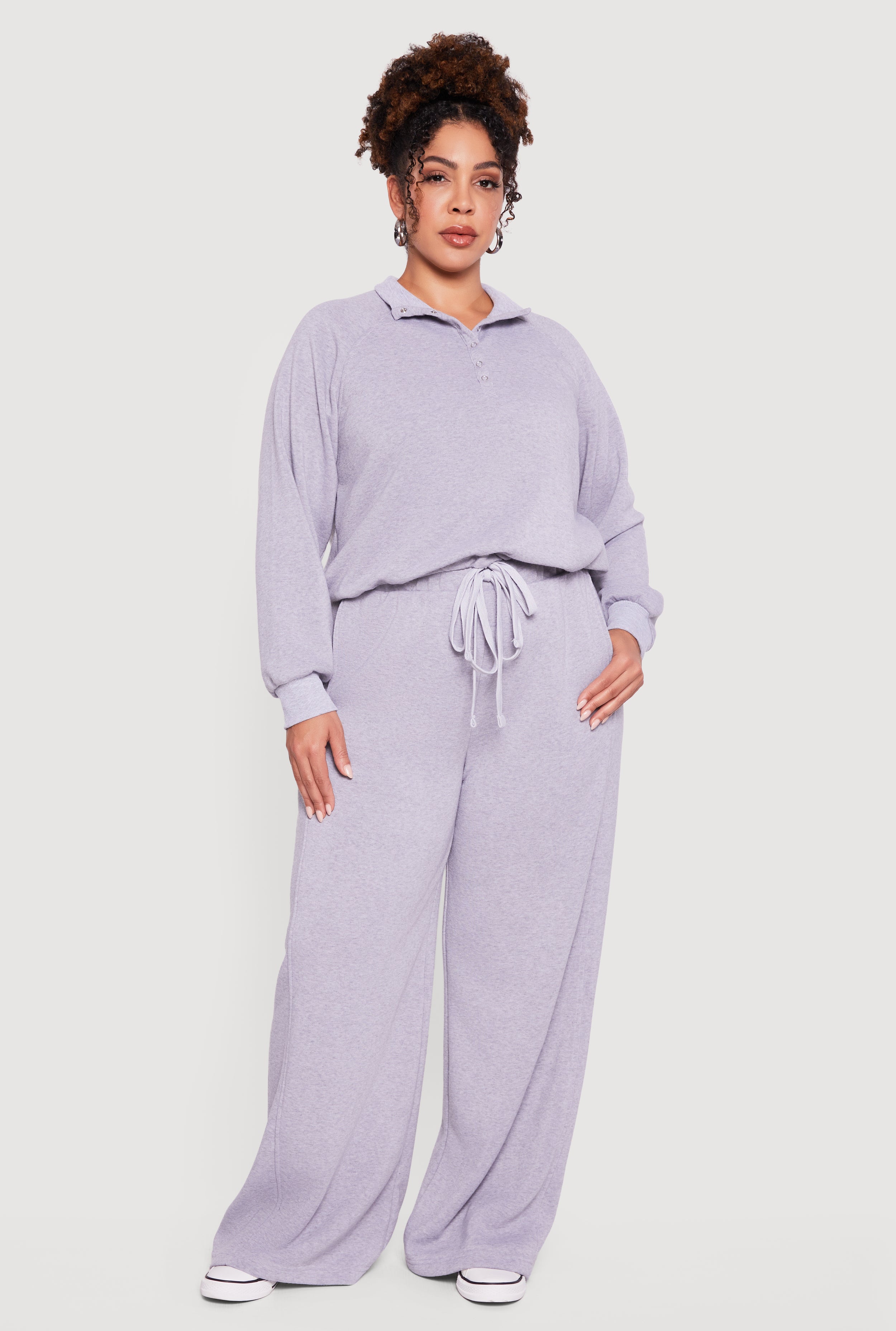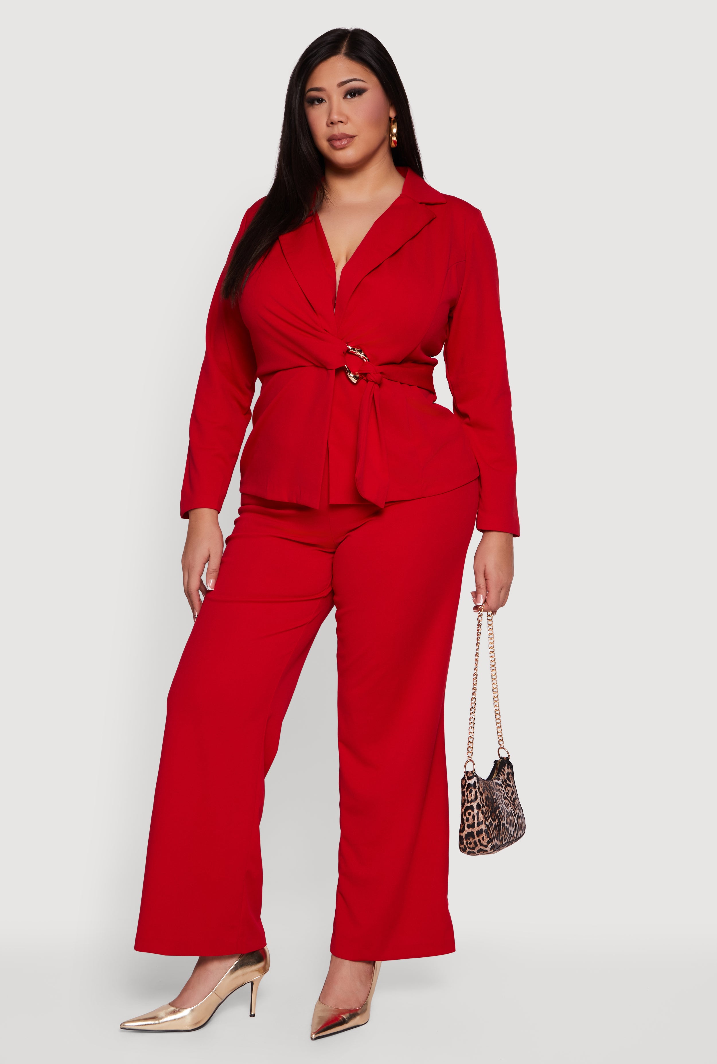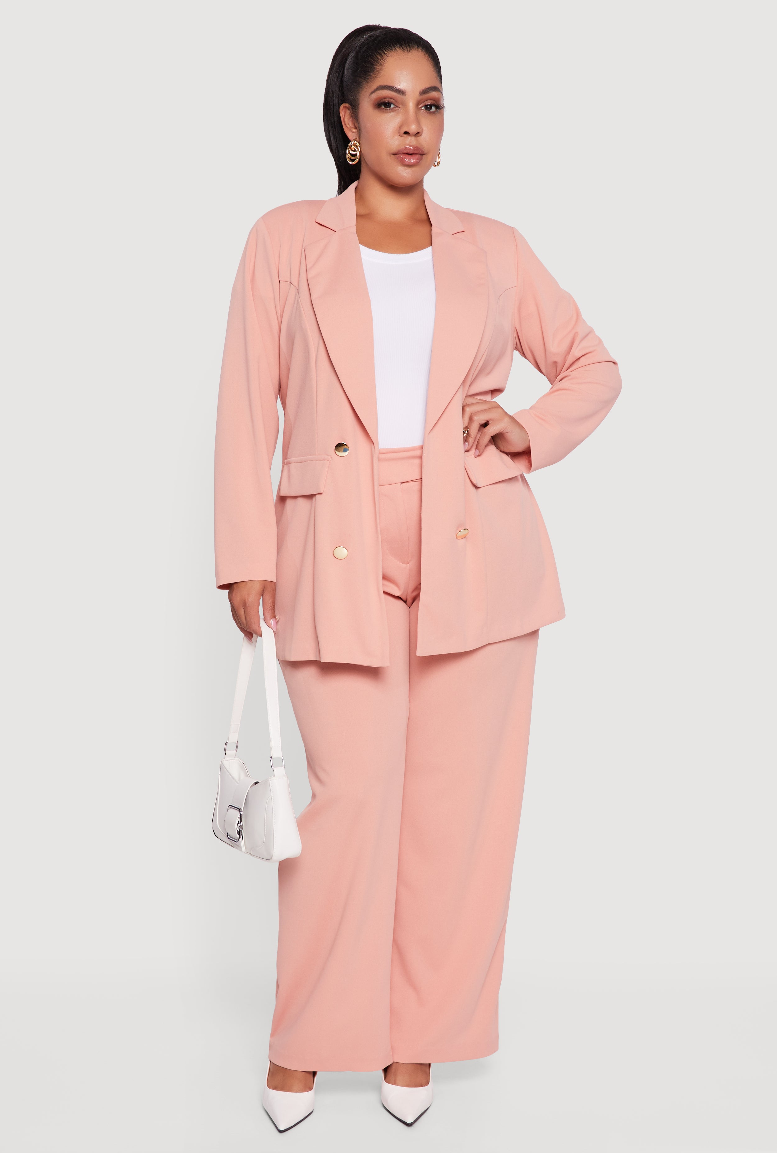 Plus Size High Waisted Crepe Knit Wide Leg Dress Pants