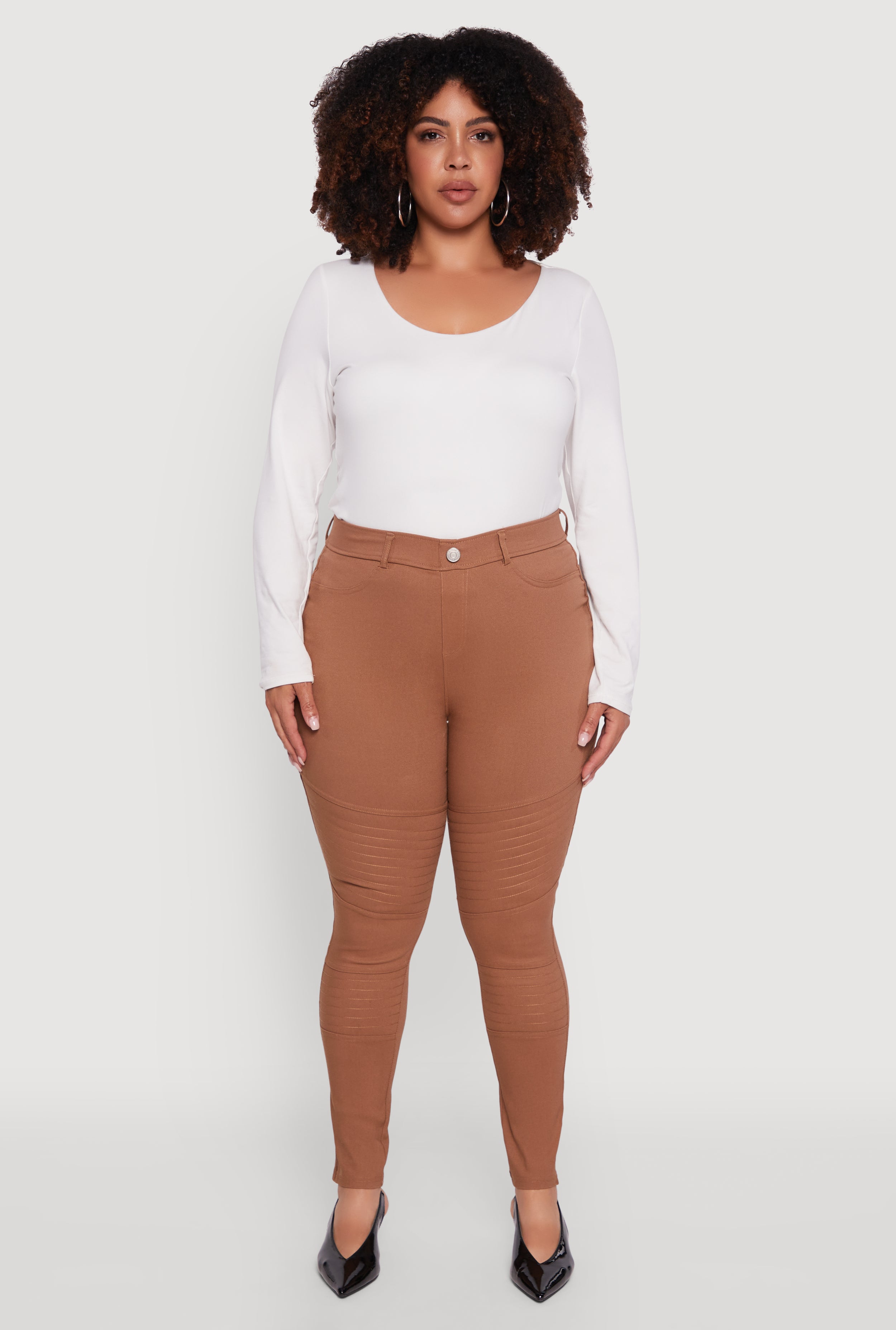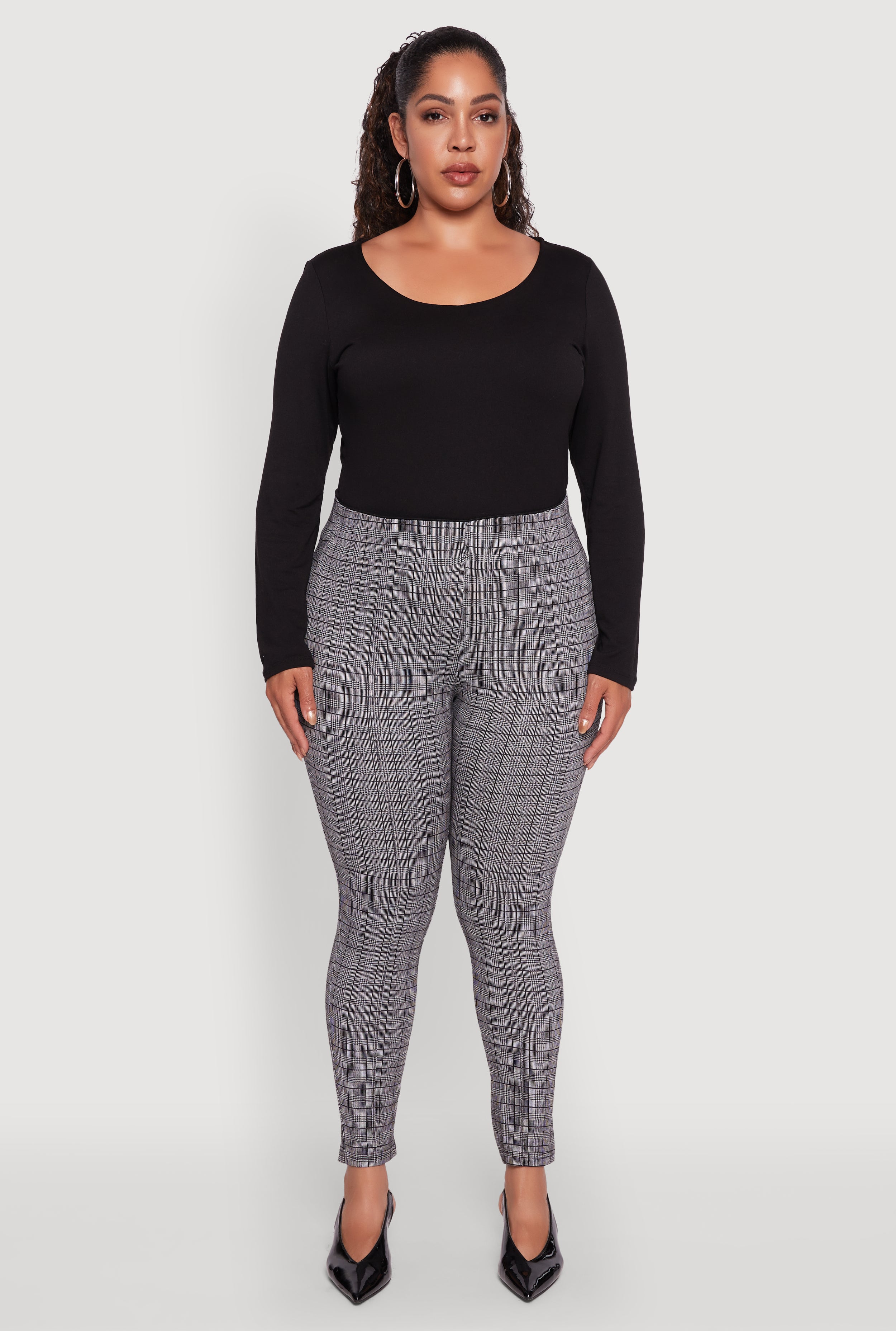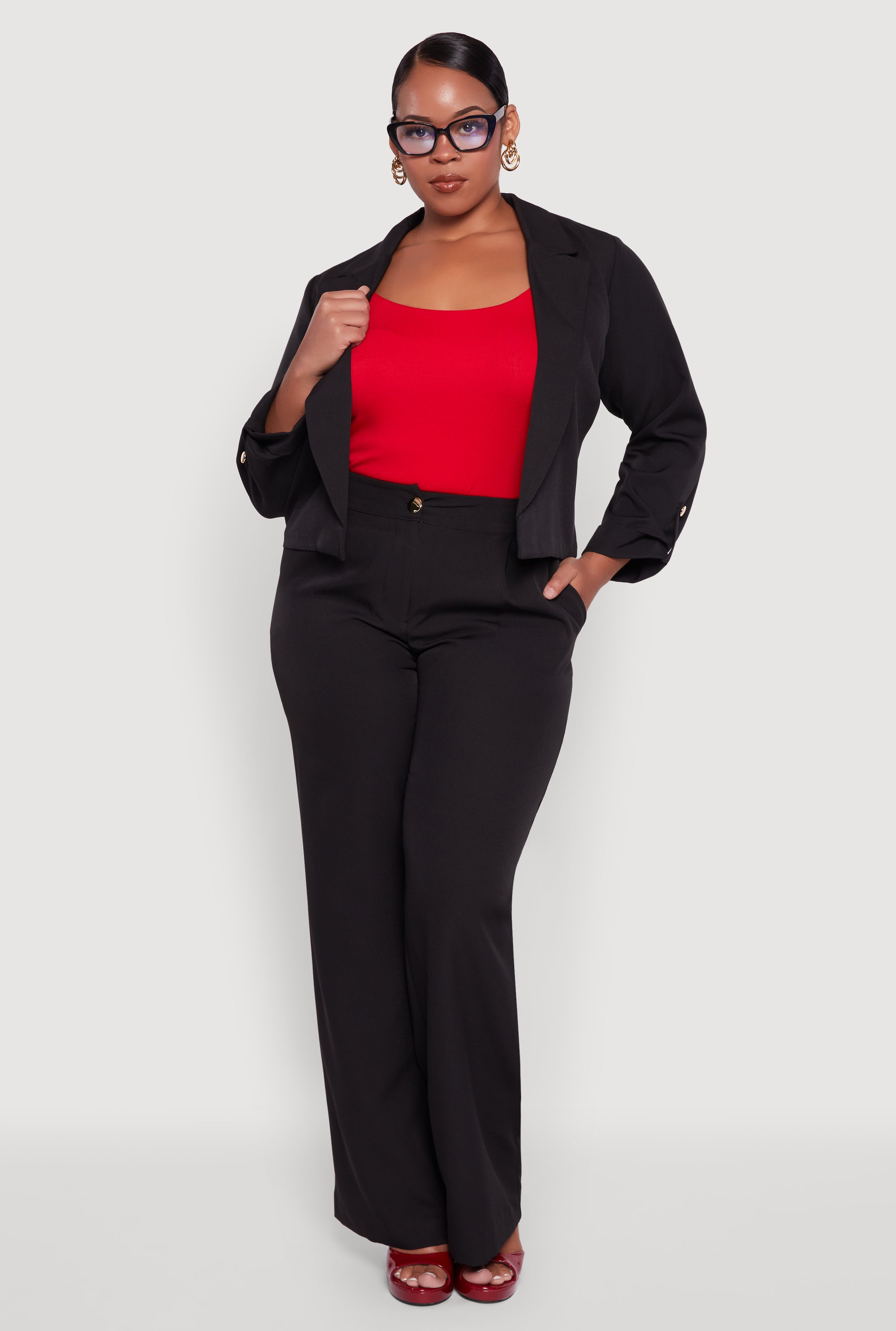 Plus Size High Waisted Hyper Stretch Dress Pants with Faux Buttons