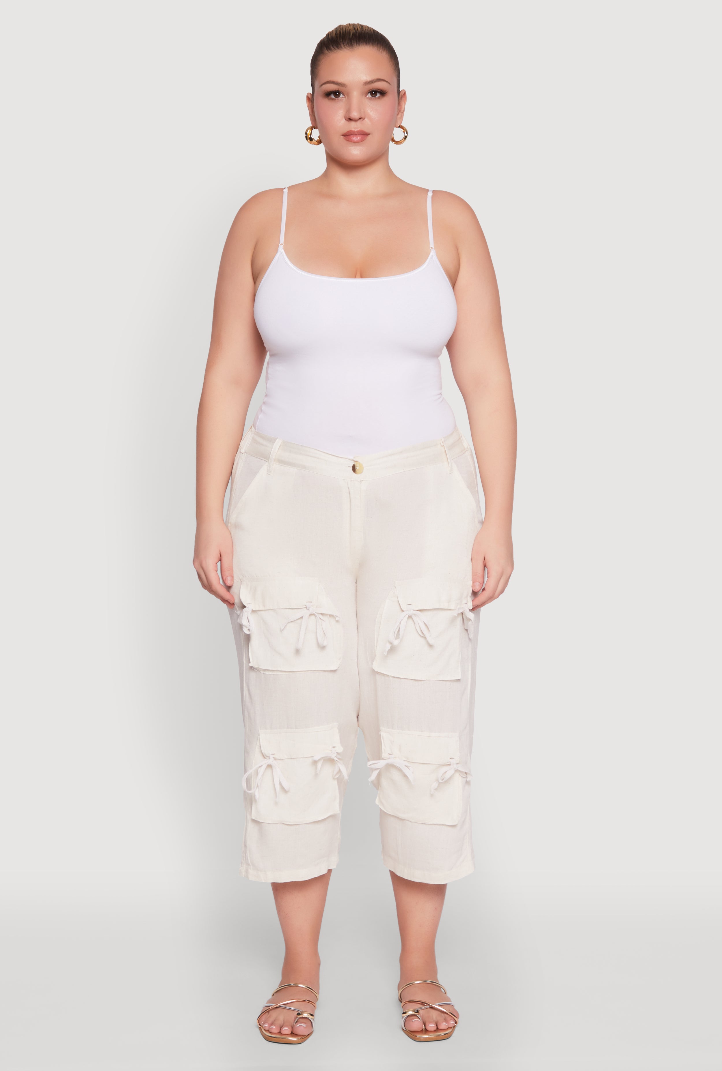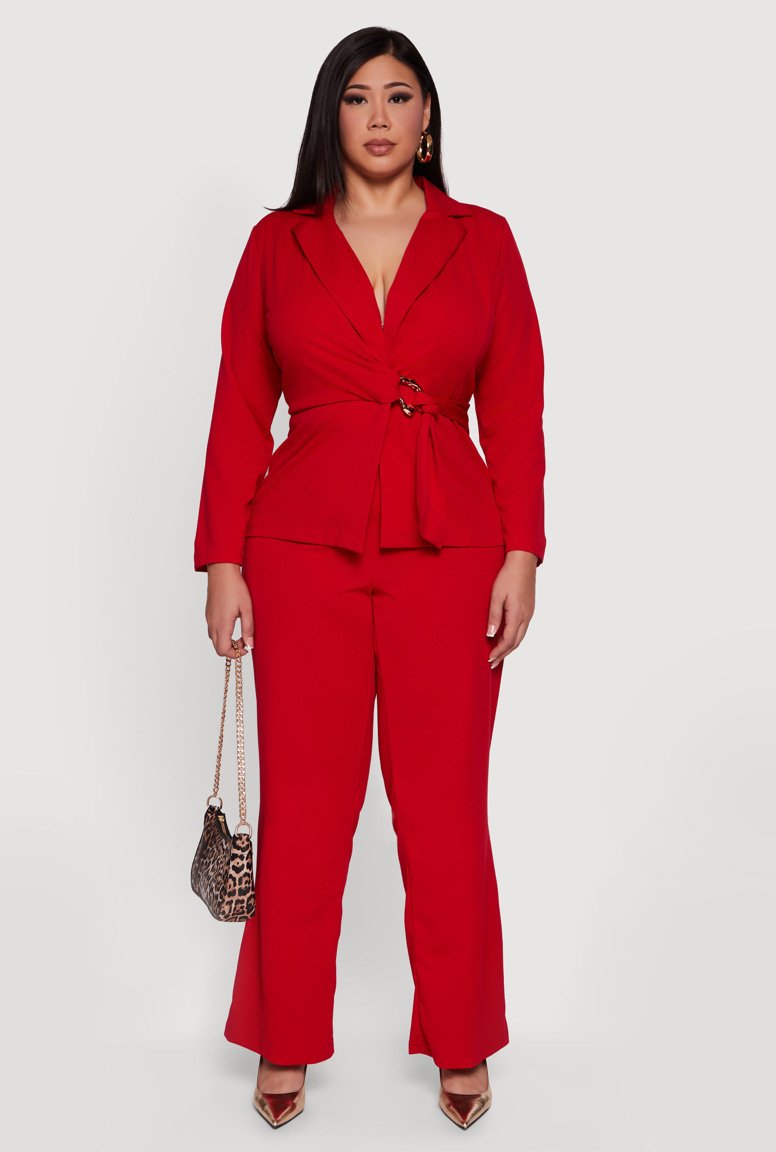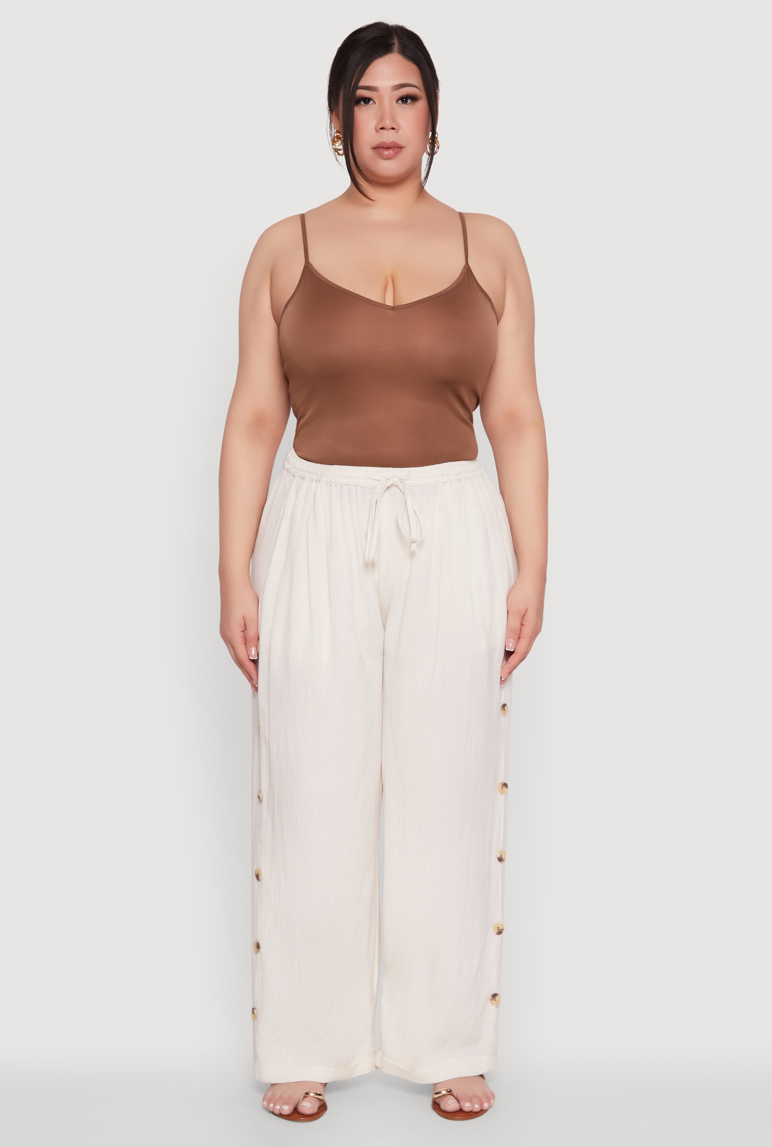 Plus Size High Waisted Hyper Stretch Dress Pants with Faux Buttons