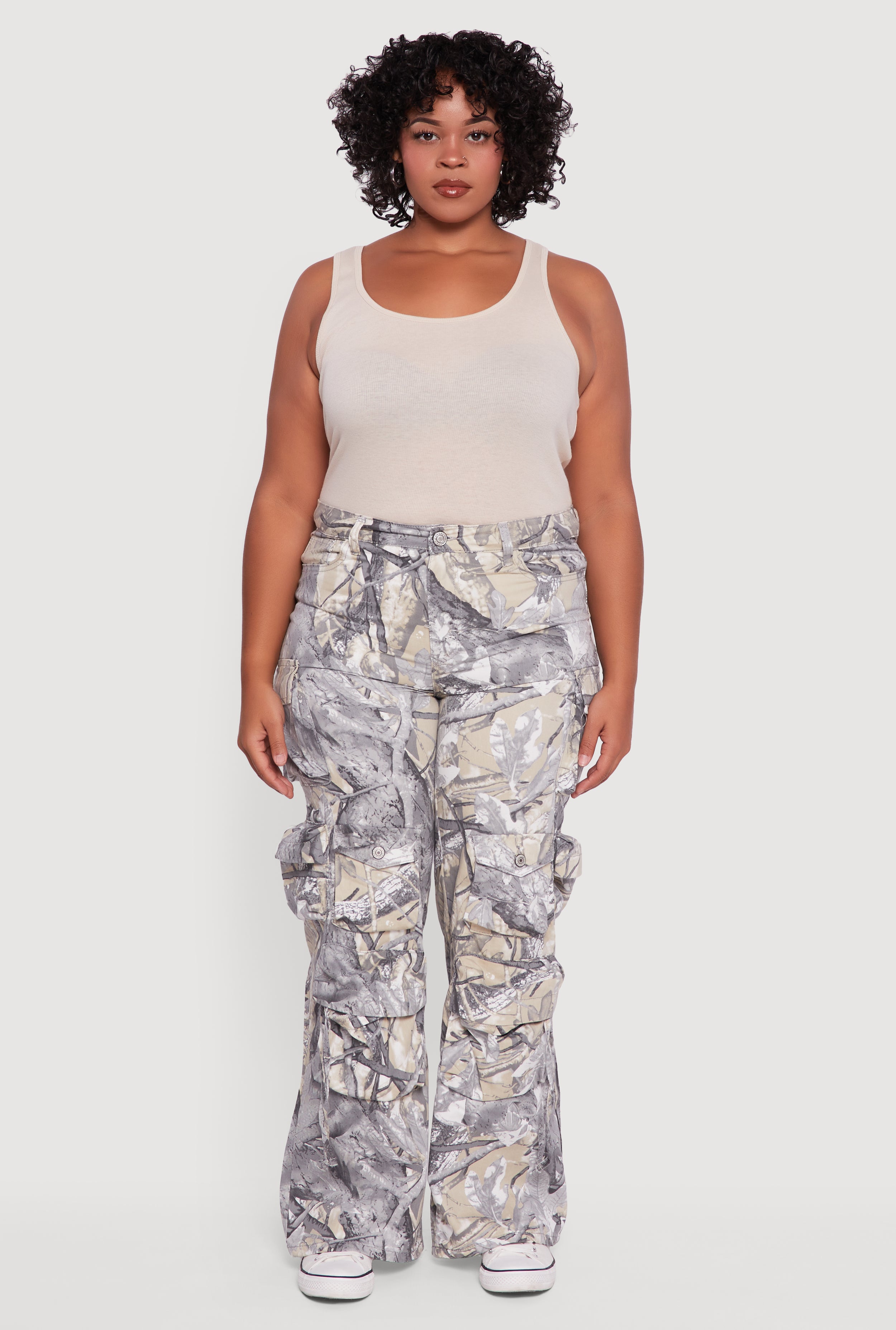 Plus Size VIP High Waisted Wide Leg Hunter Camo Cargo Pants