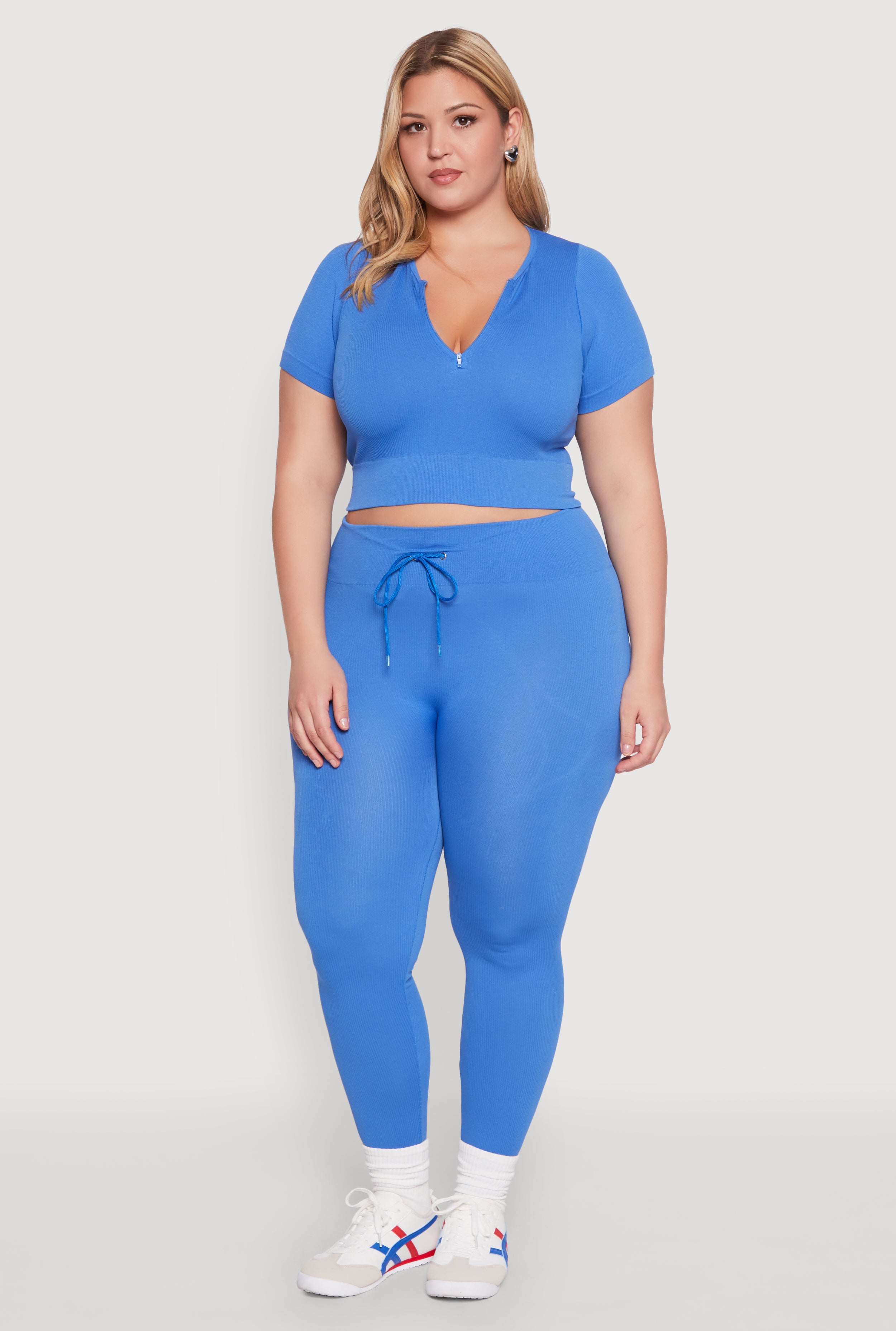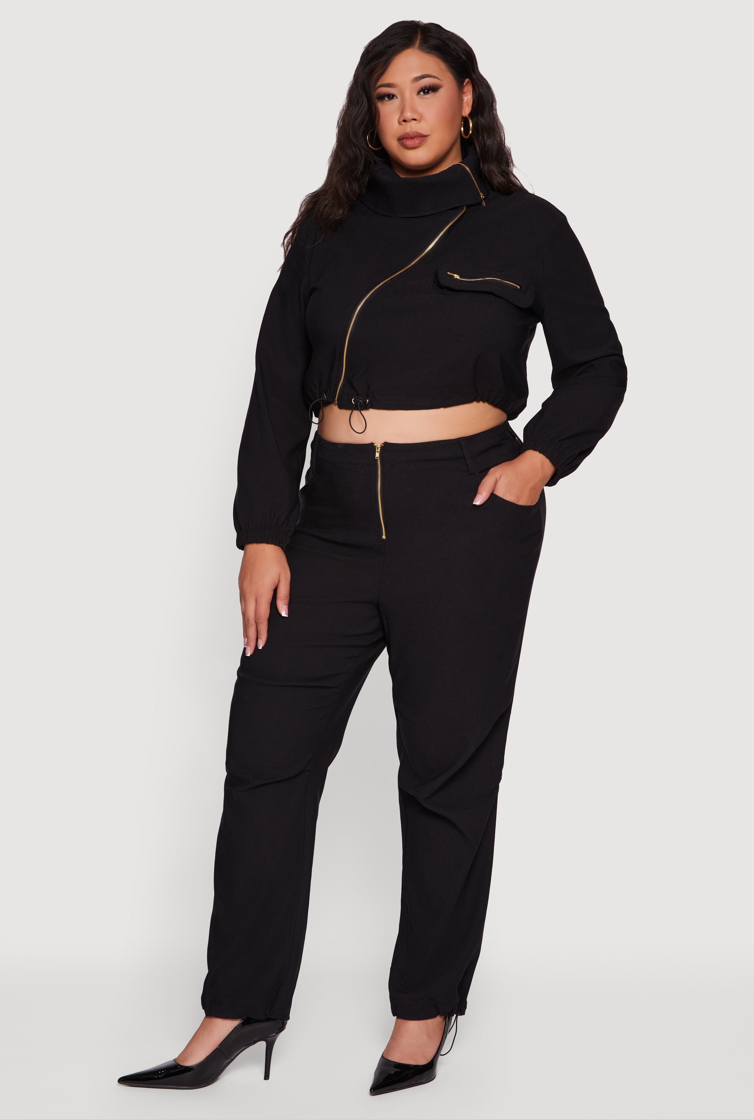 Plus Size Hyper Stretch Exposed Zip Drawstring Hem Pants