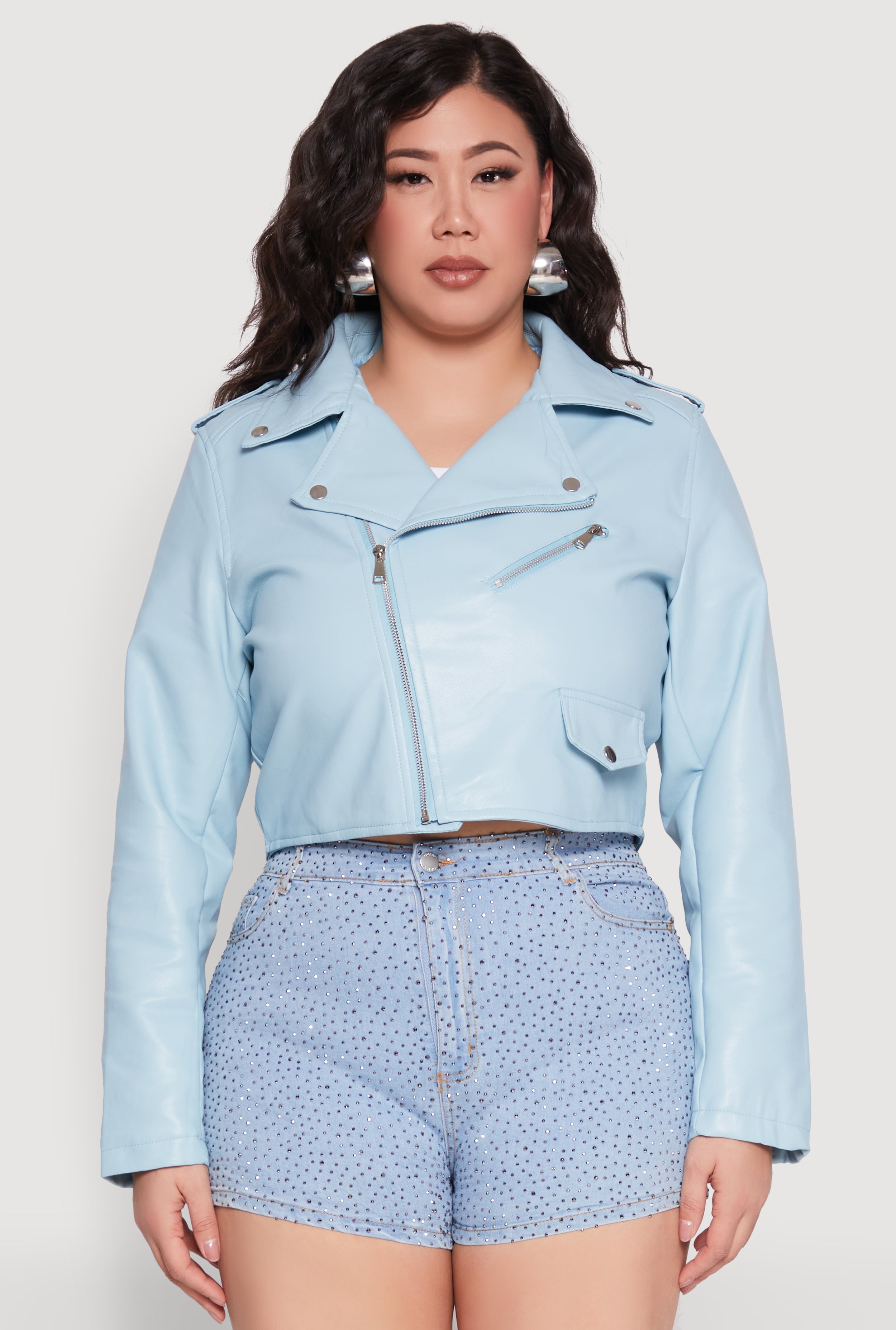 Plus Size Daisy Faux Leather Cropped Moto Jacket