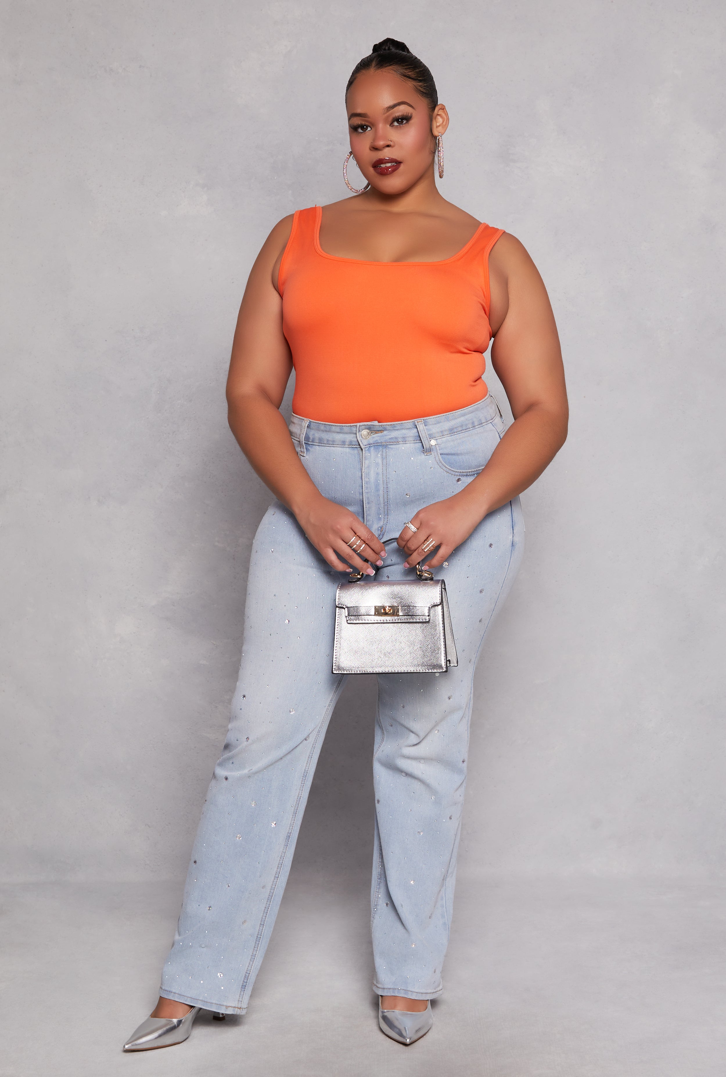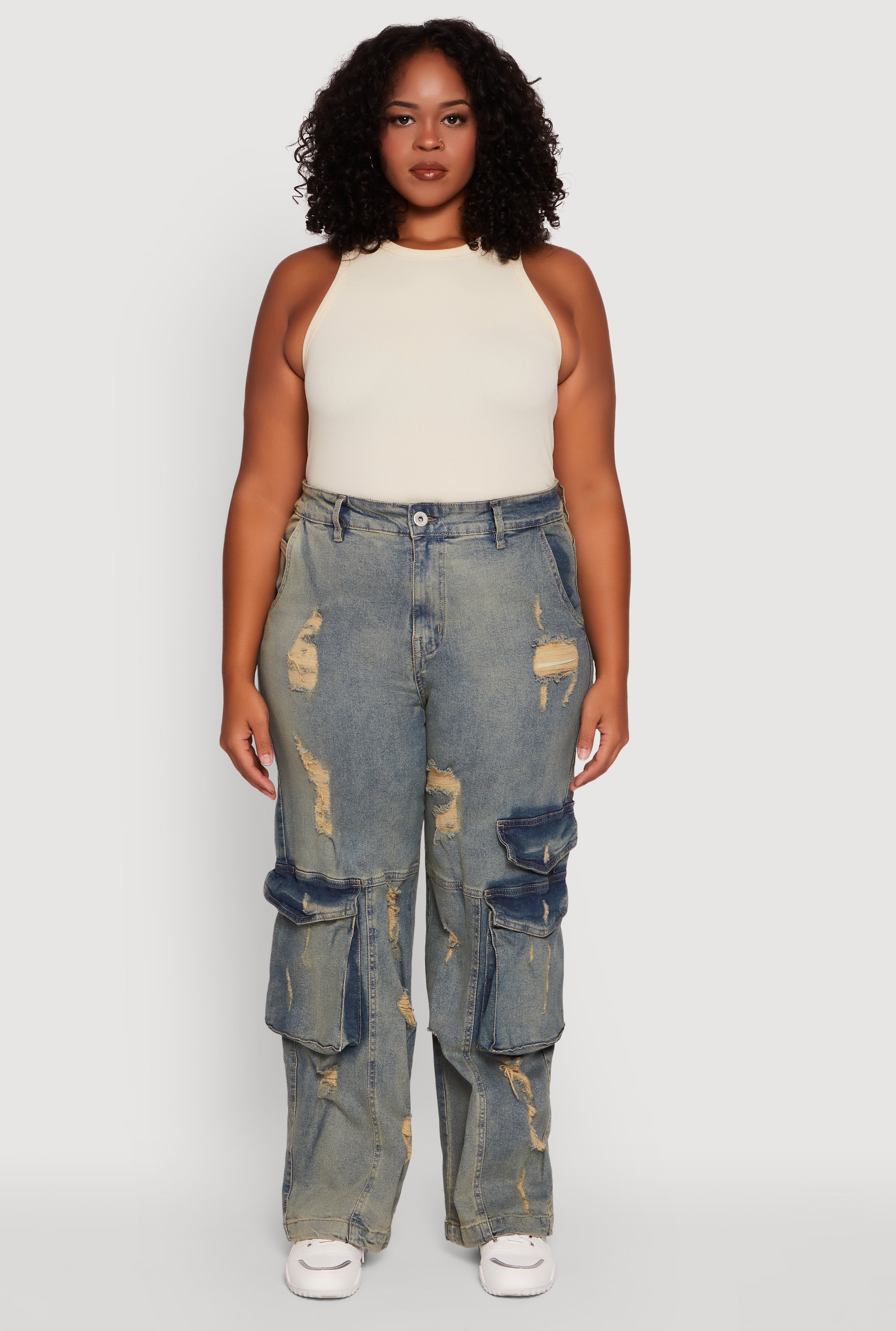 Plus Size High Waisted Distressed Acid Wash Jeans