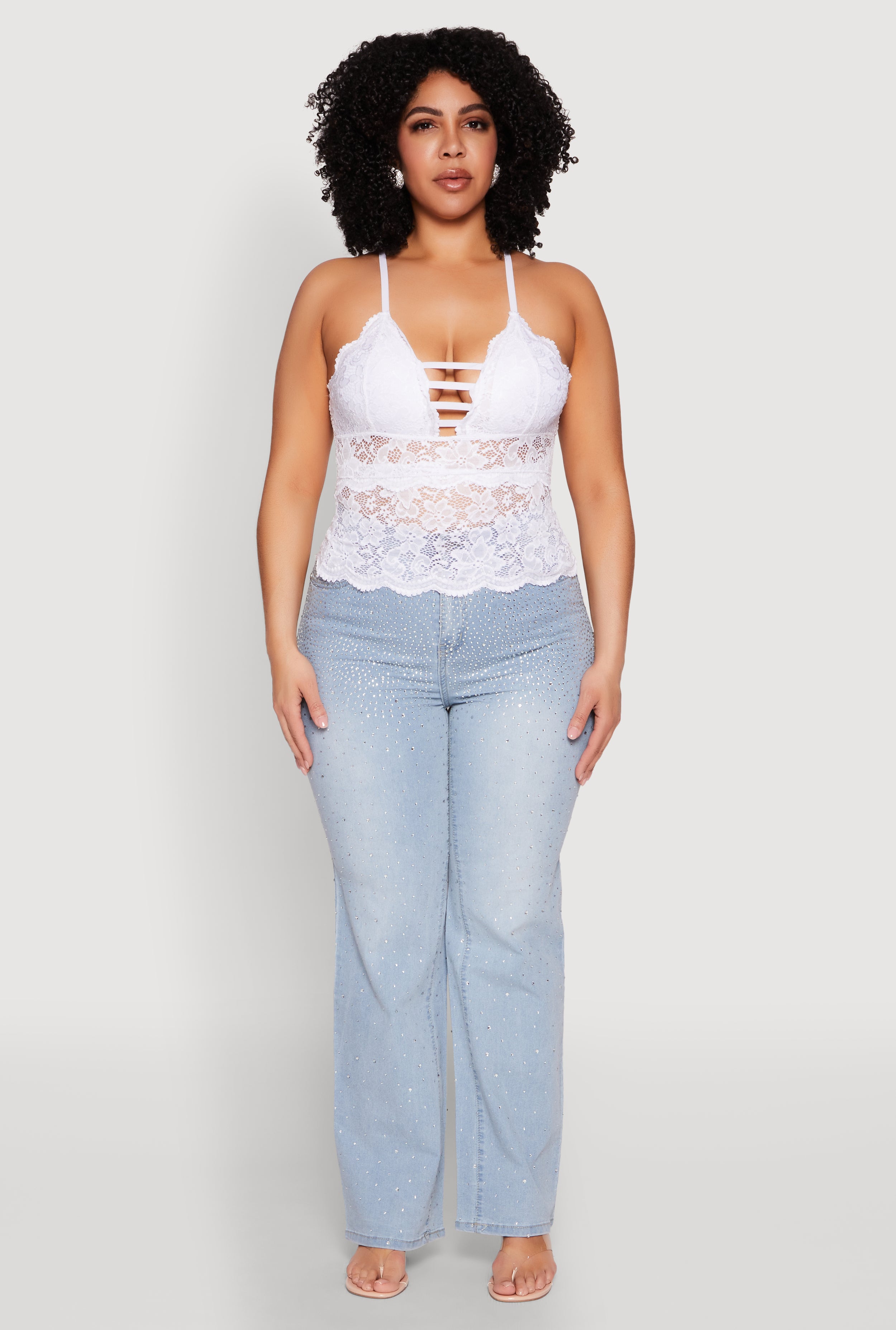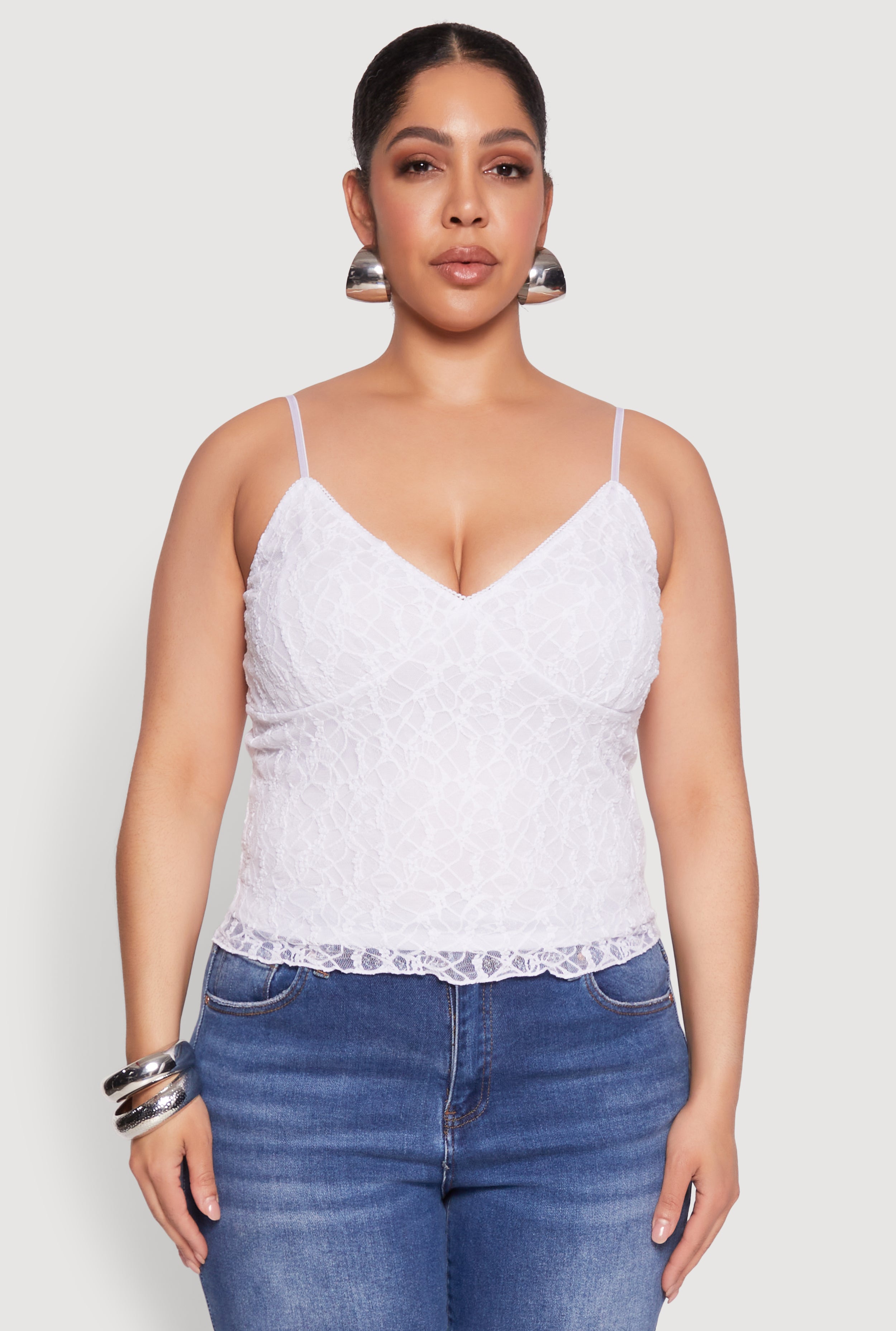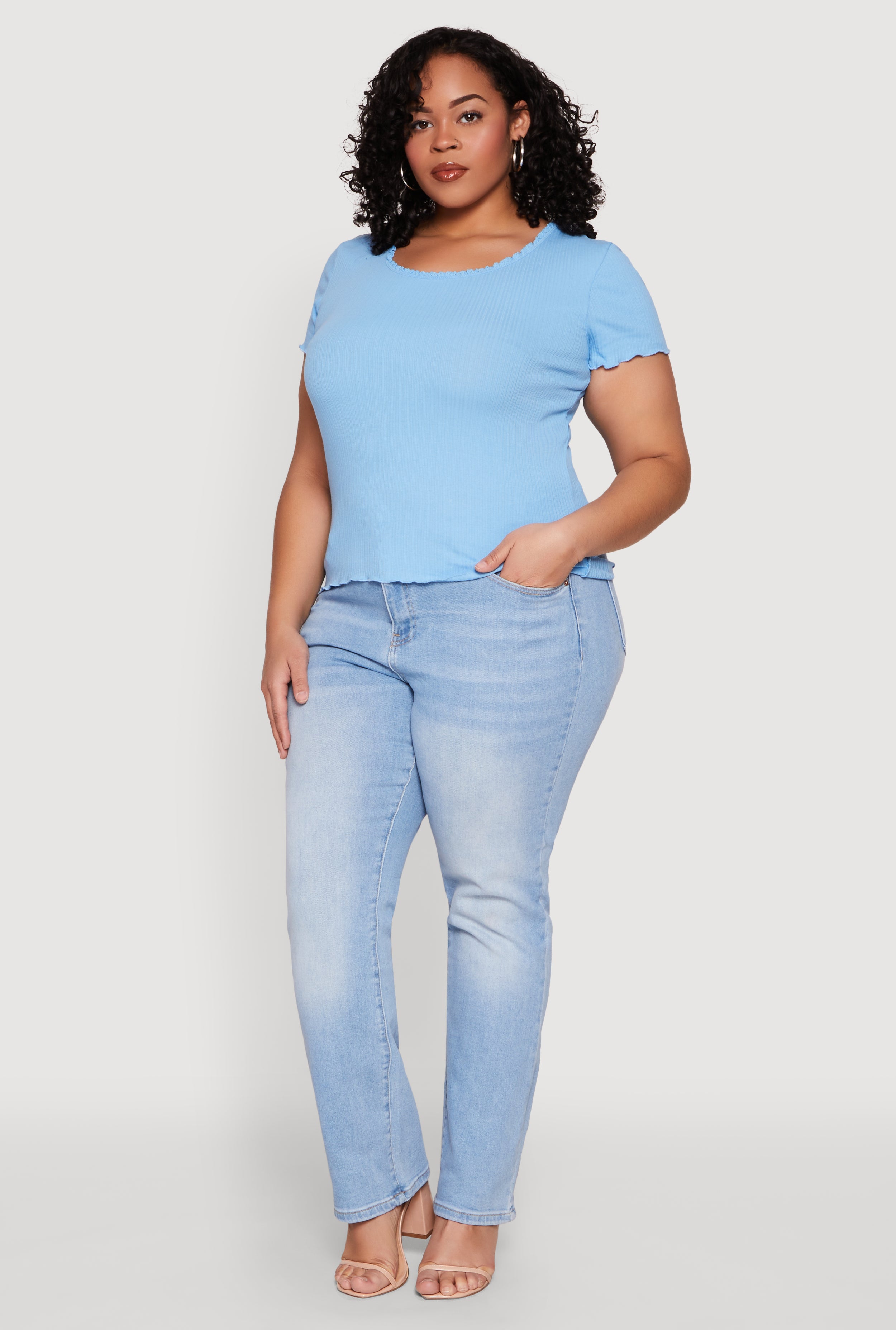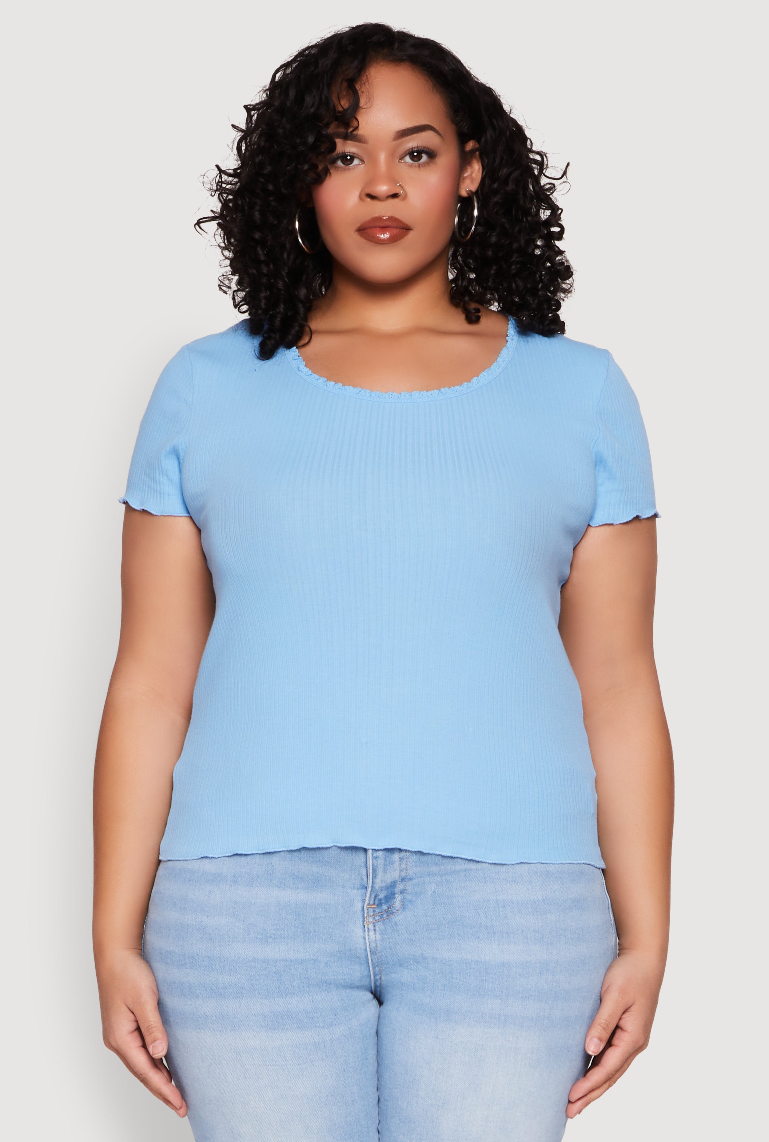 Plus Size Ribbed Lace Detail Lettuce Edge Top