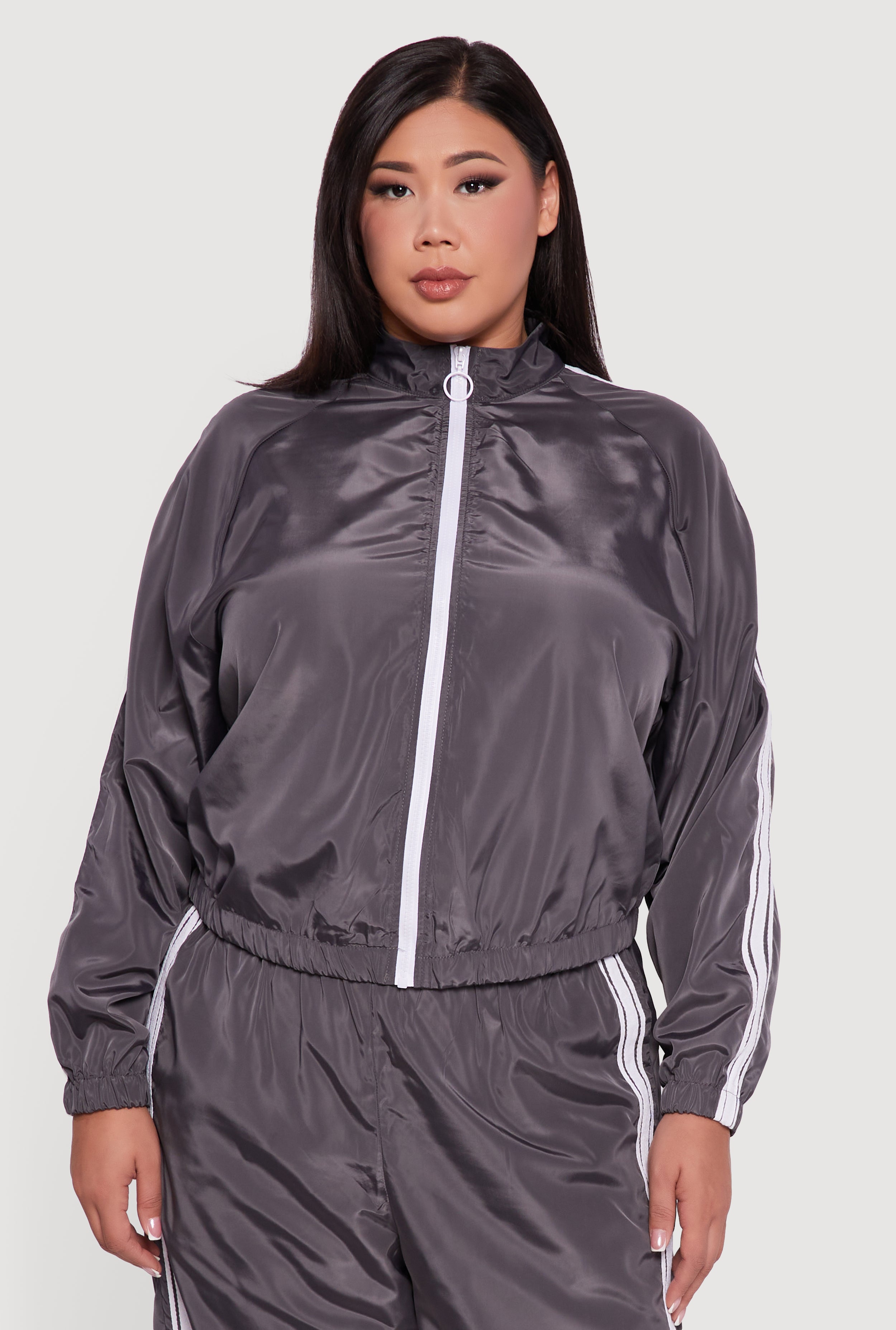 Plus Size O Ring Zip Nylon Track Jacket with Contrast Trim