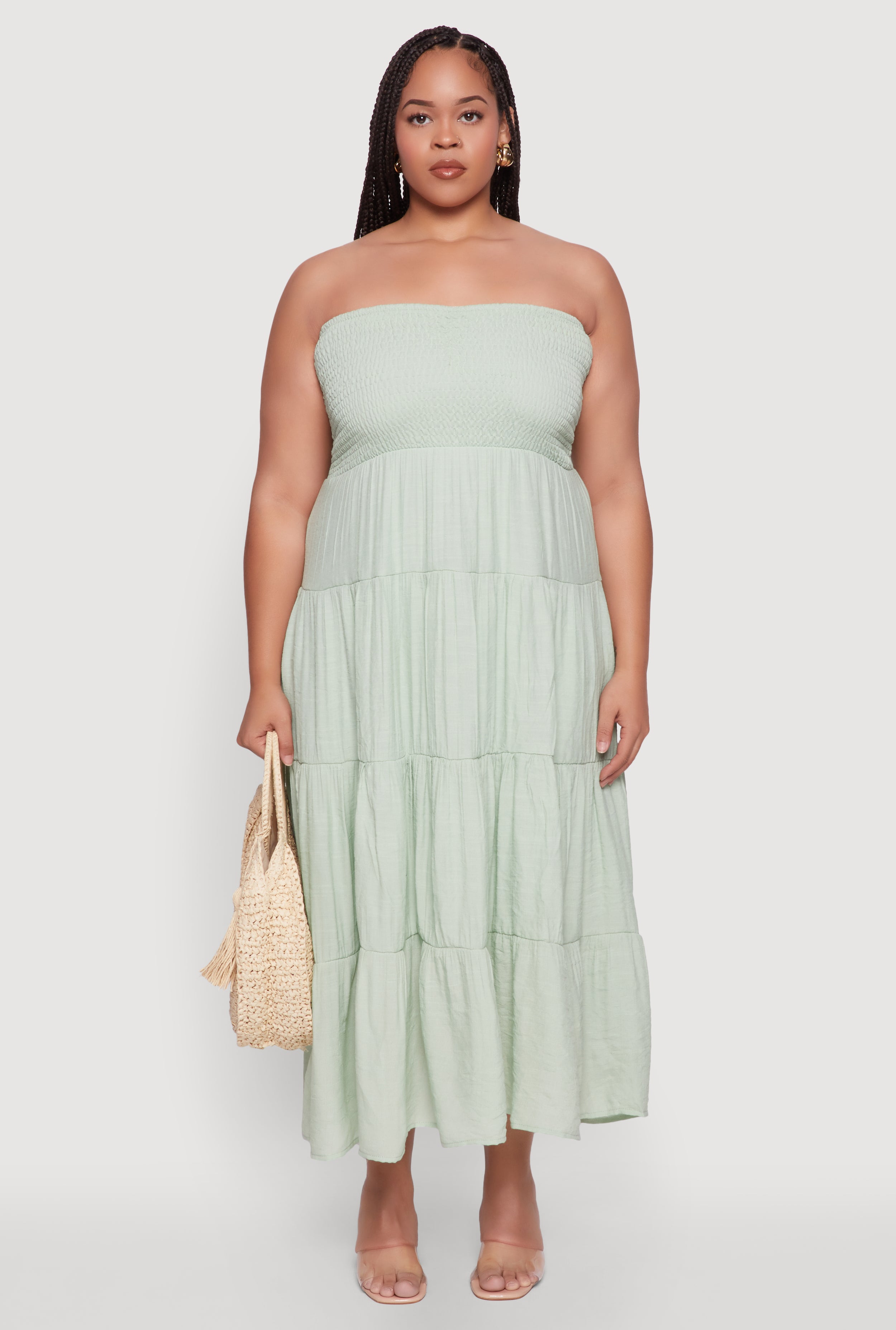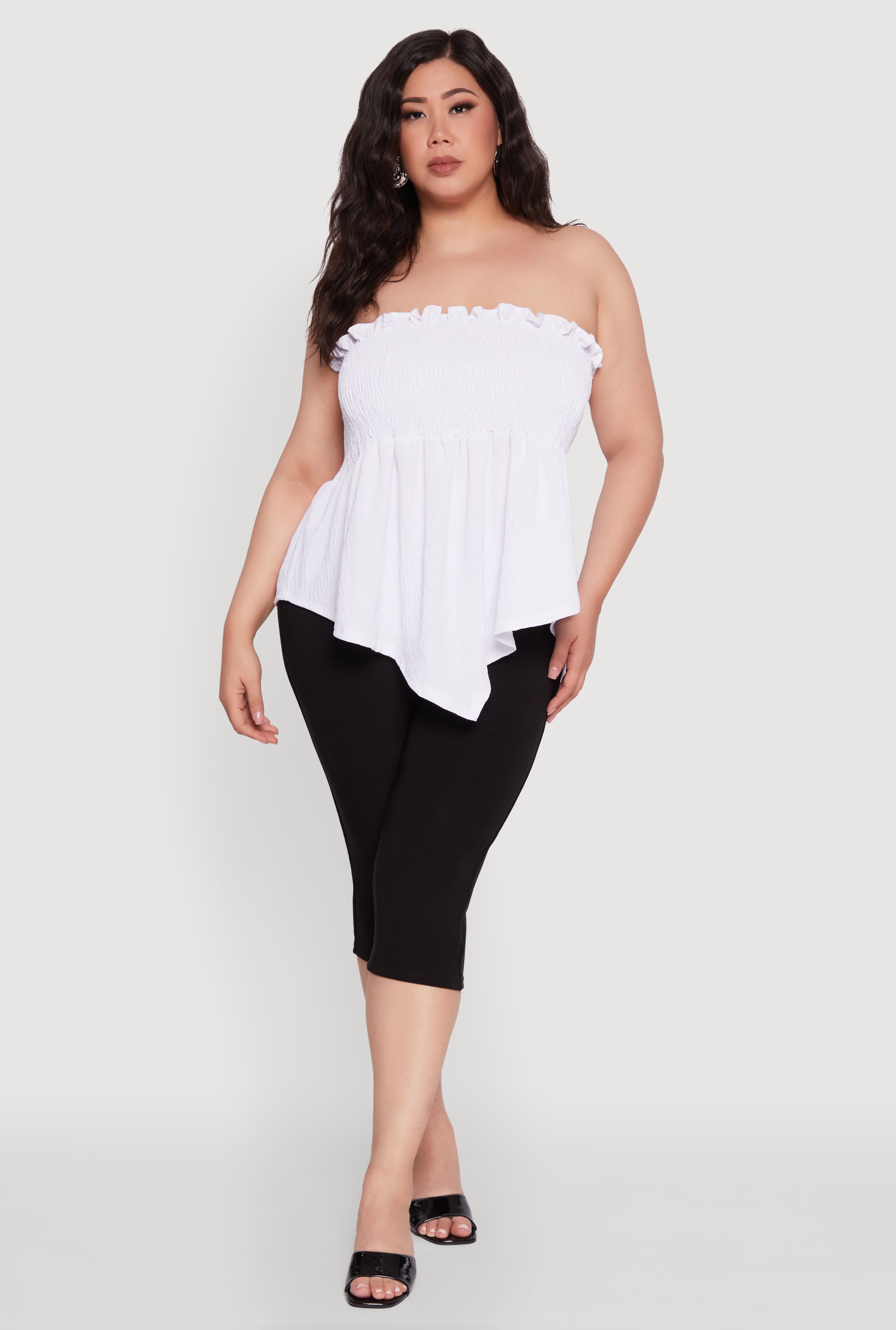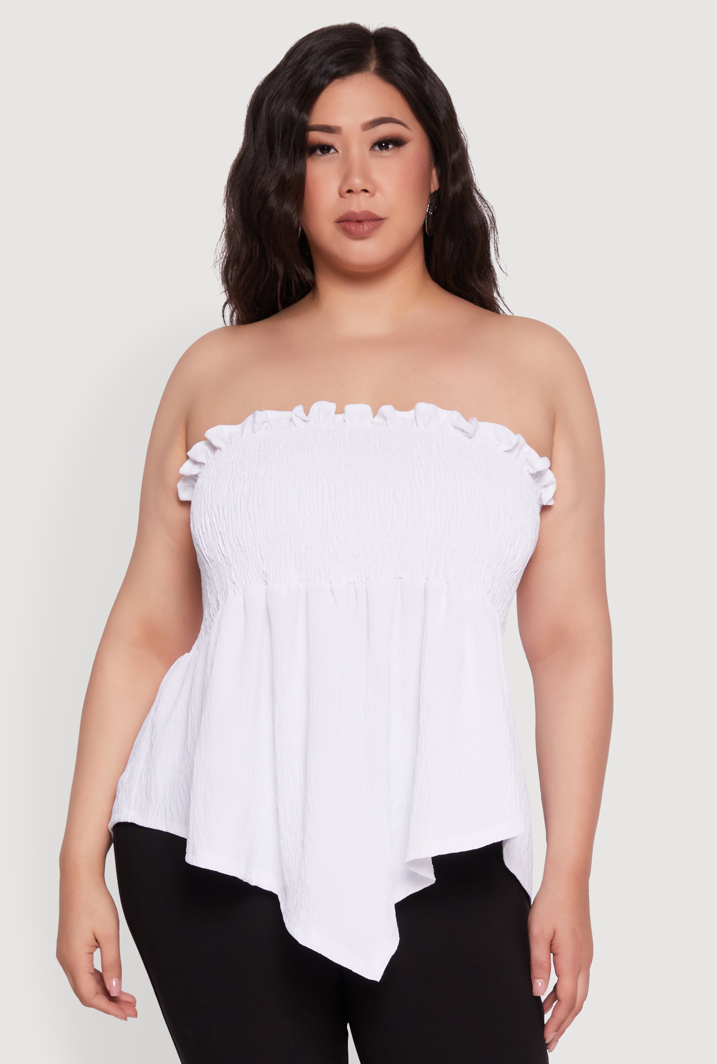 Plus Size Smocked Strapless Peplum Tube Top in Solid Crepe Knit