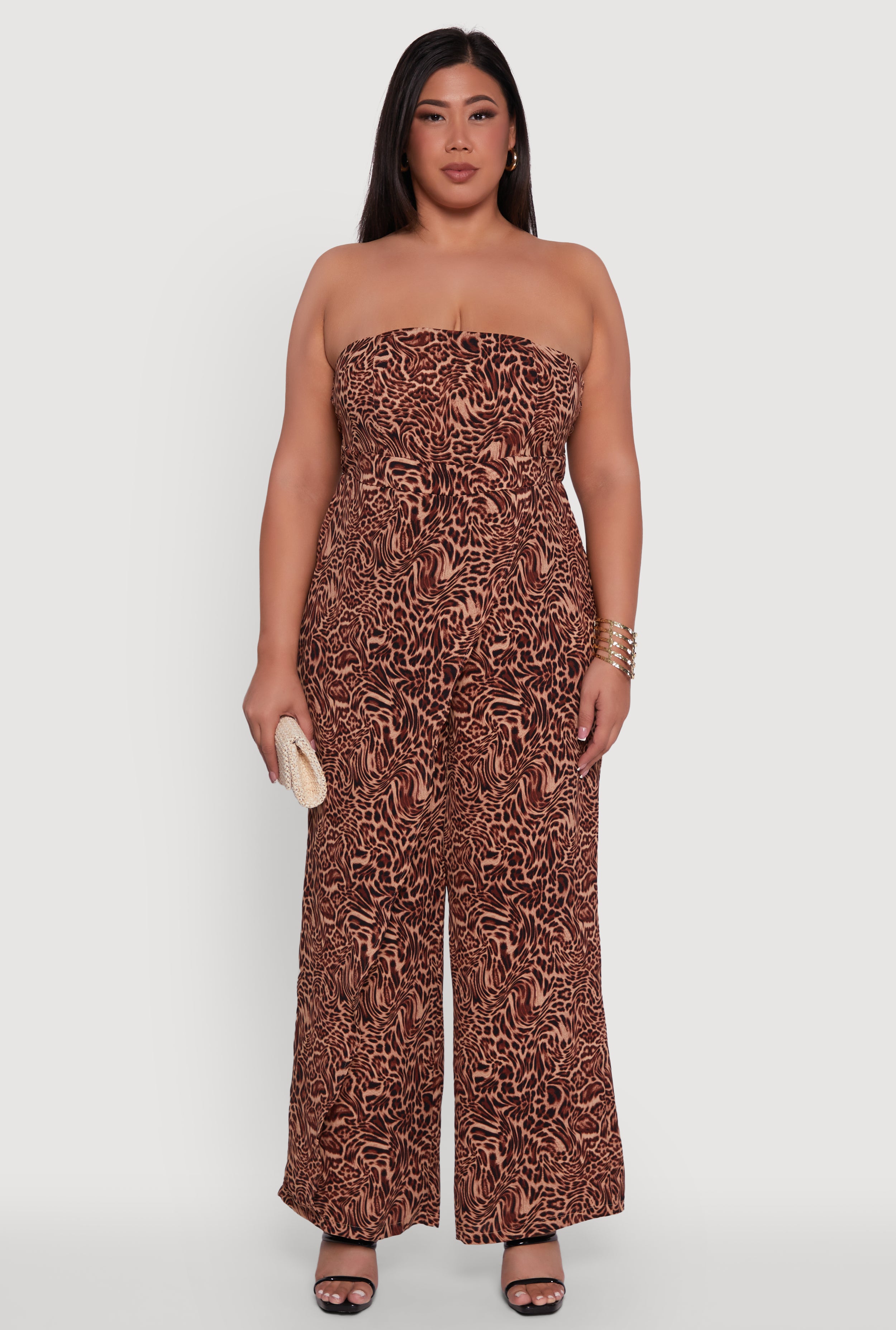 Plus Size Strapless Printed Ruffle Overlay Jumpsuit
