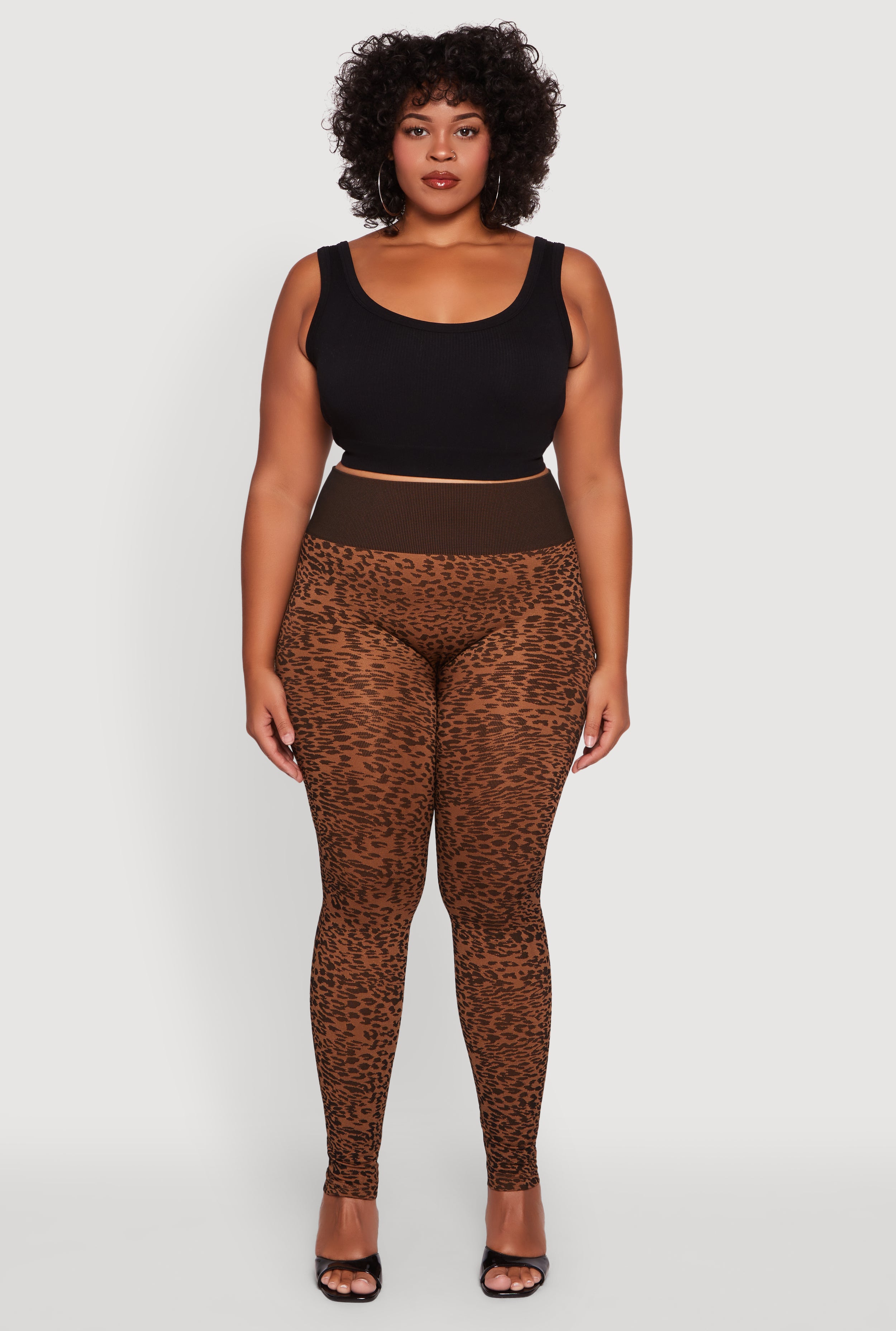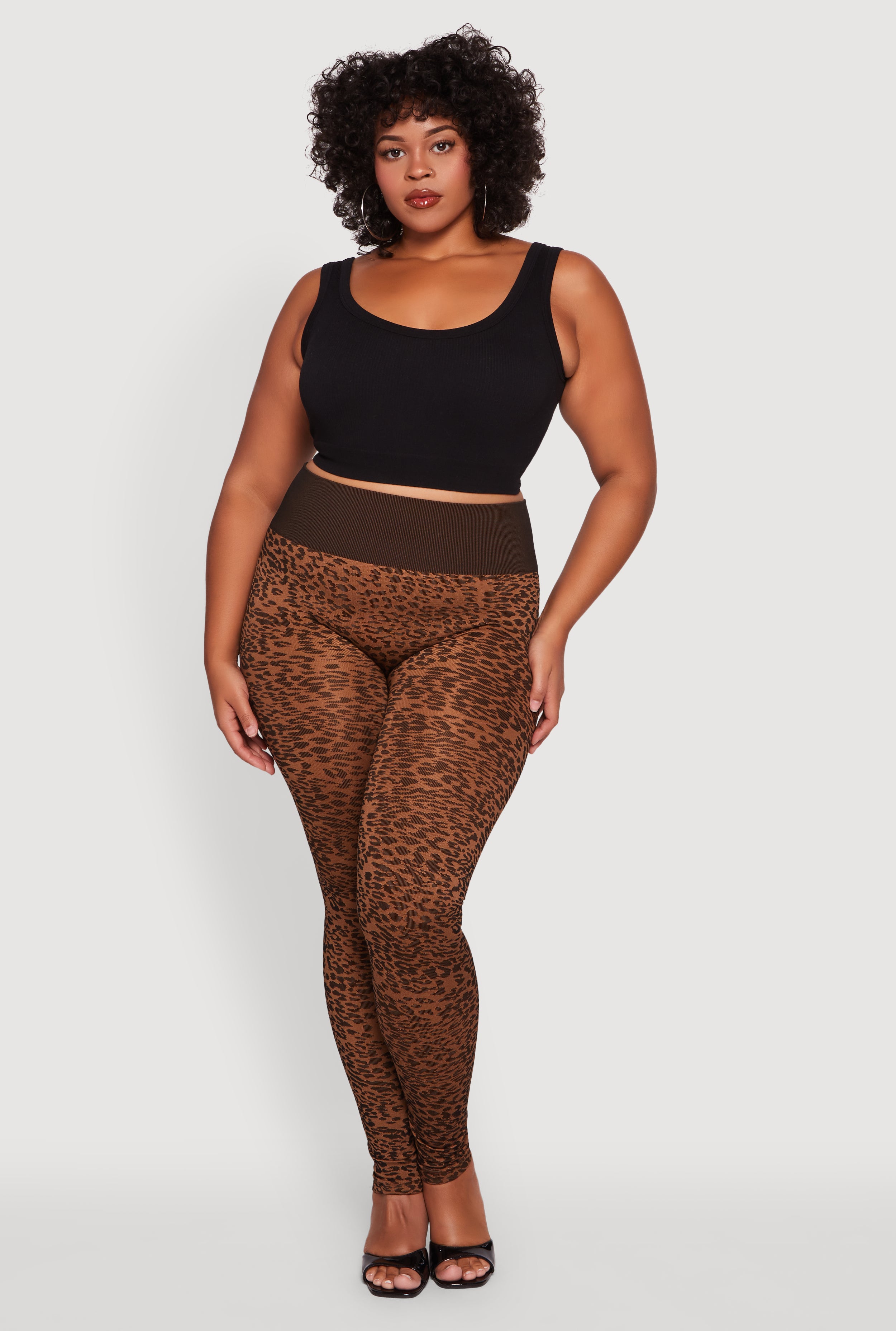Plus Size High Waisted Leopard Print Ribbed Knit Leggings