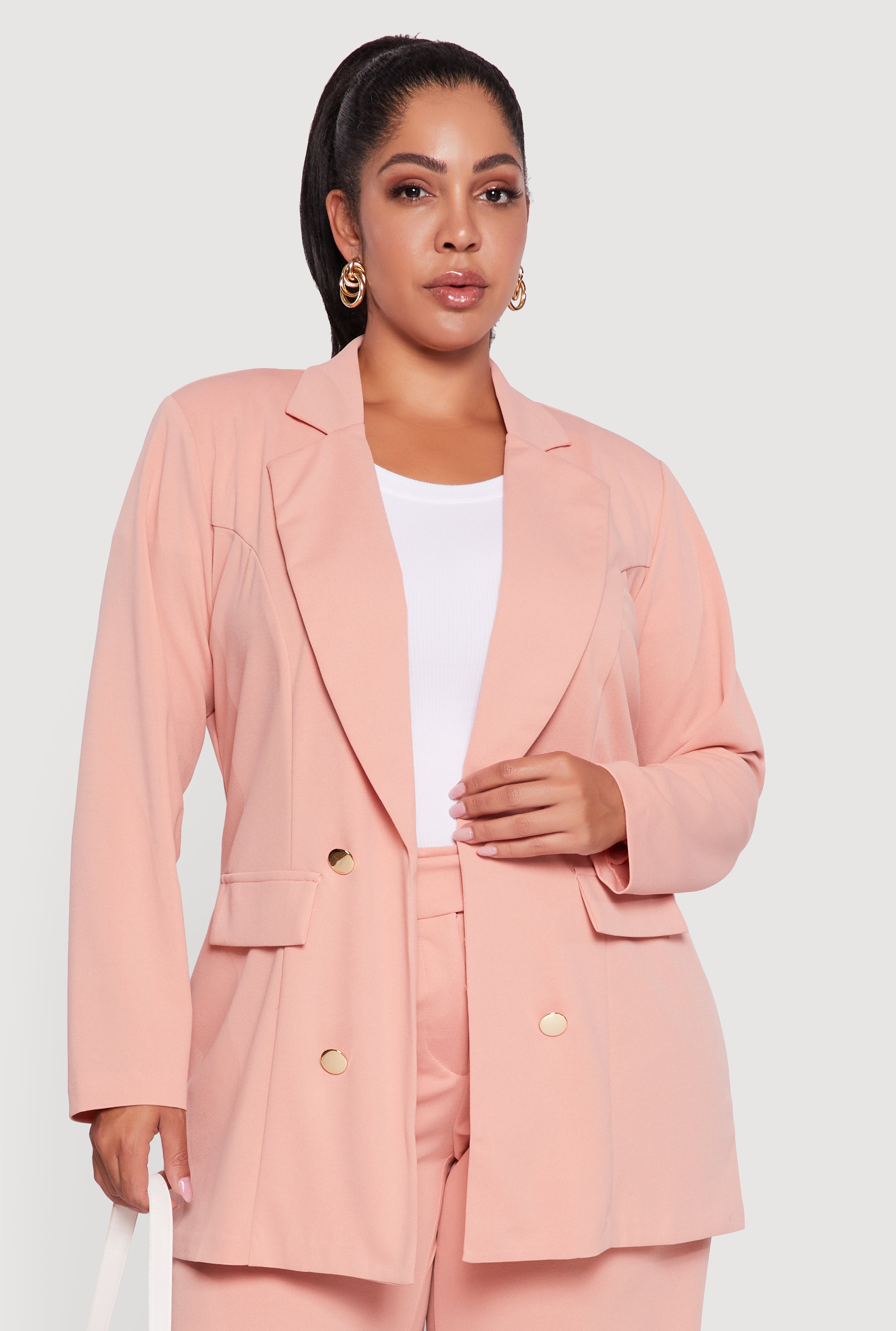 Plus Size Oversized Shoulder Padded Crepe Knit Blazer