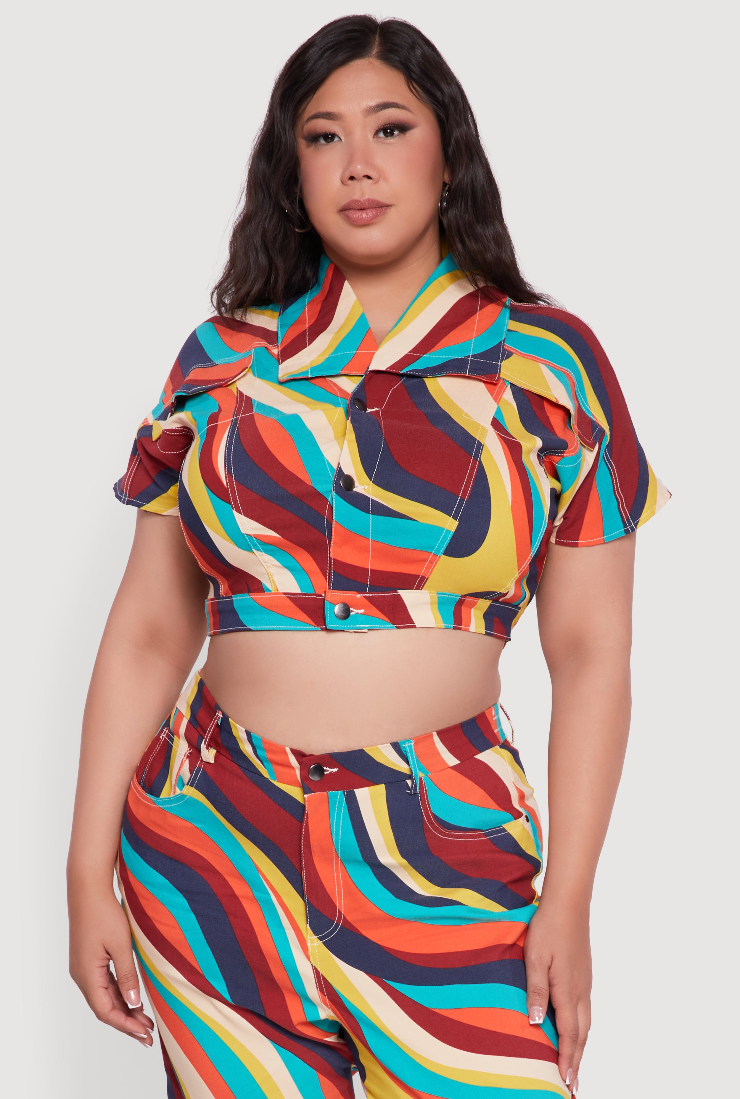 Plus Size Psychedelic Swirl Short Sleeve Cropped Jacket
