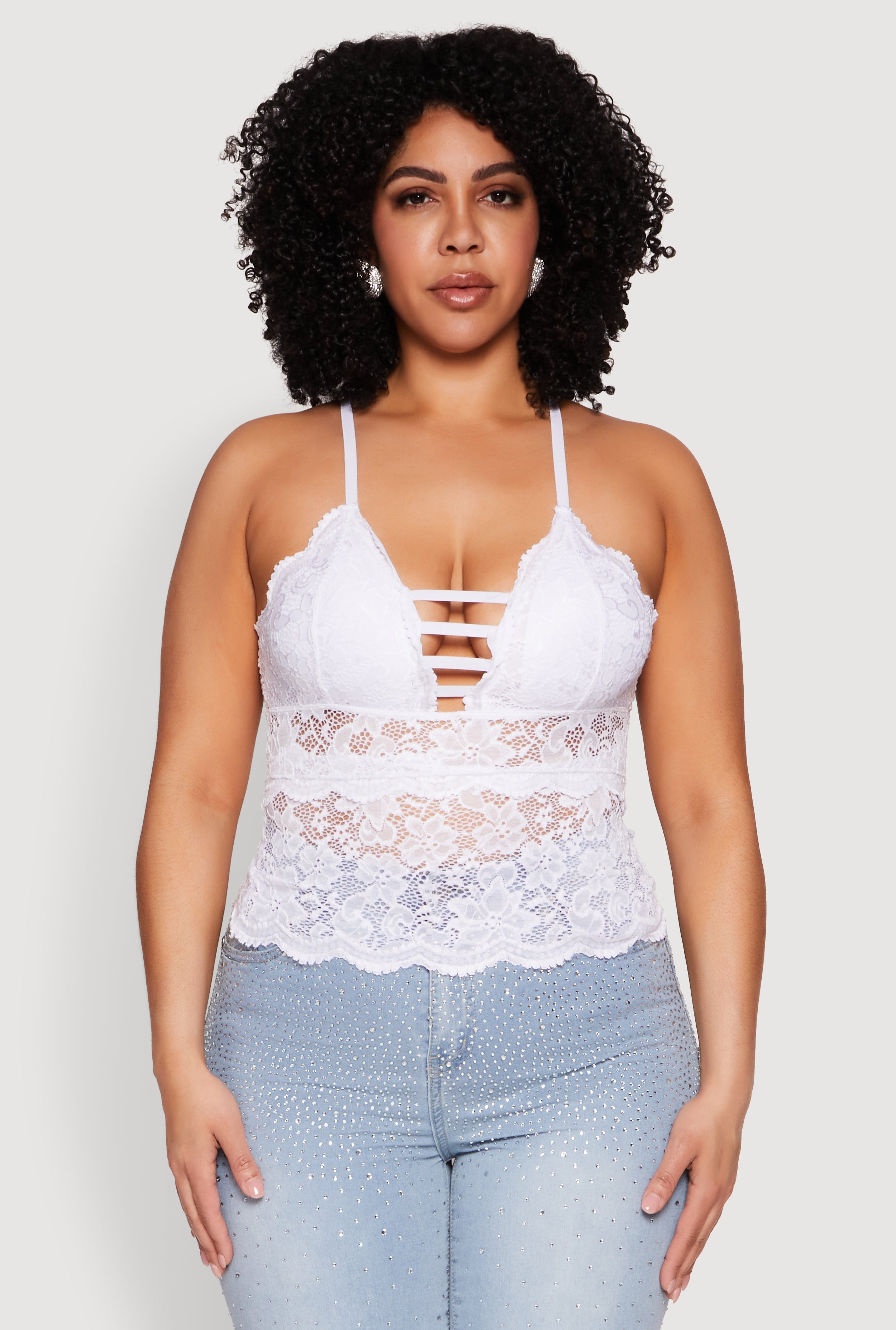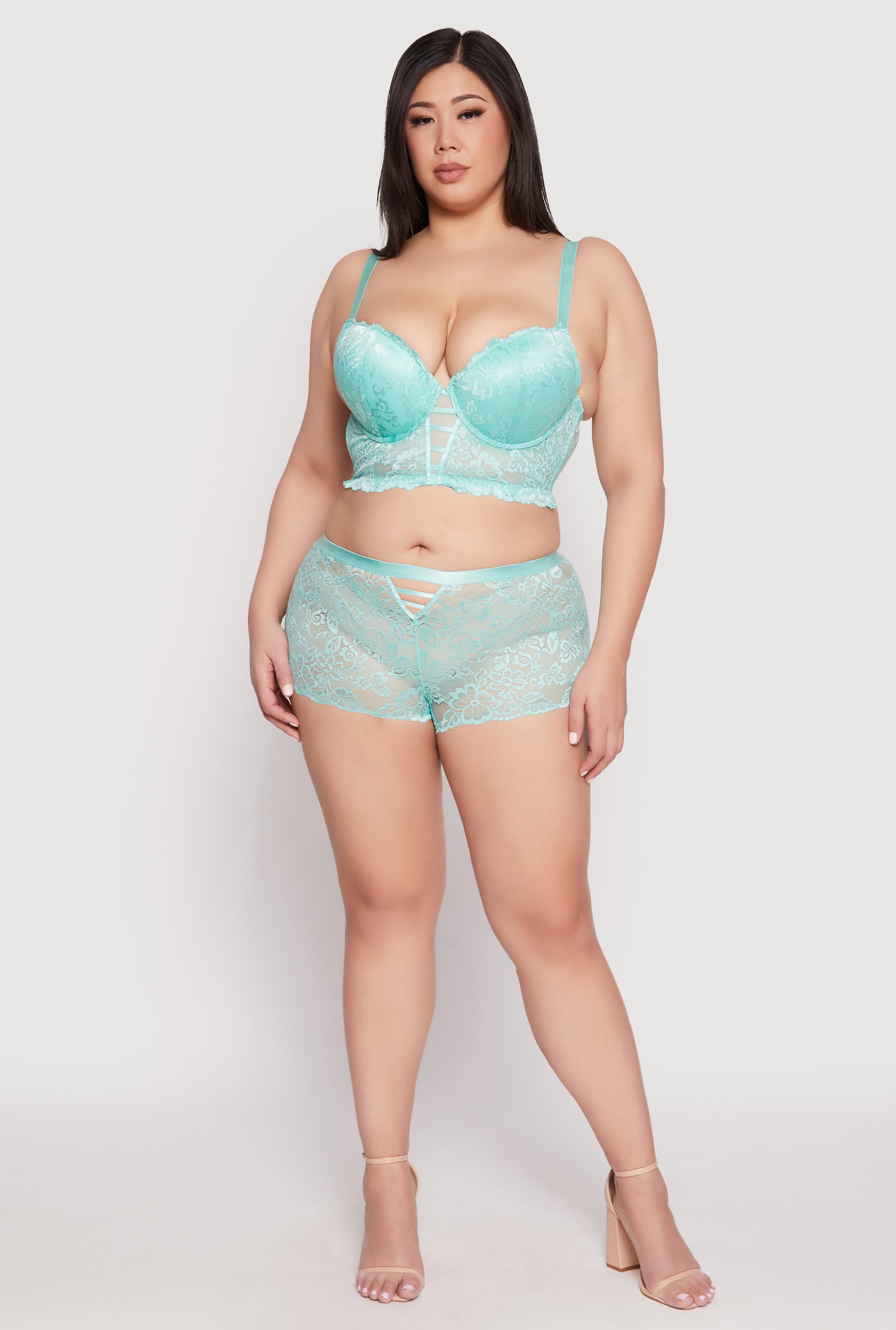 Plus Size Caged Front Floral Lace Boyshort Panty