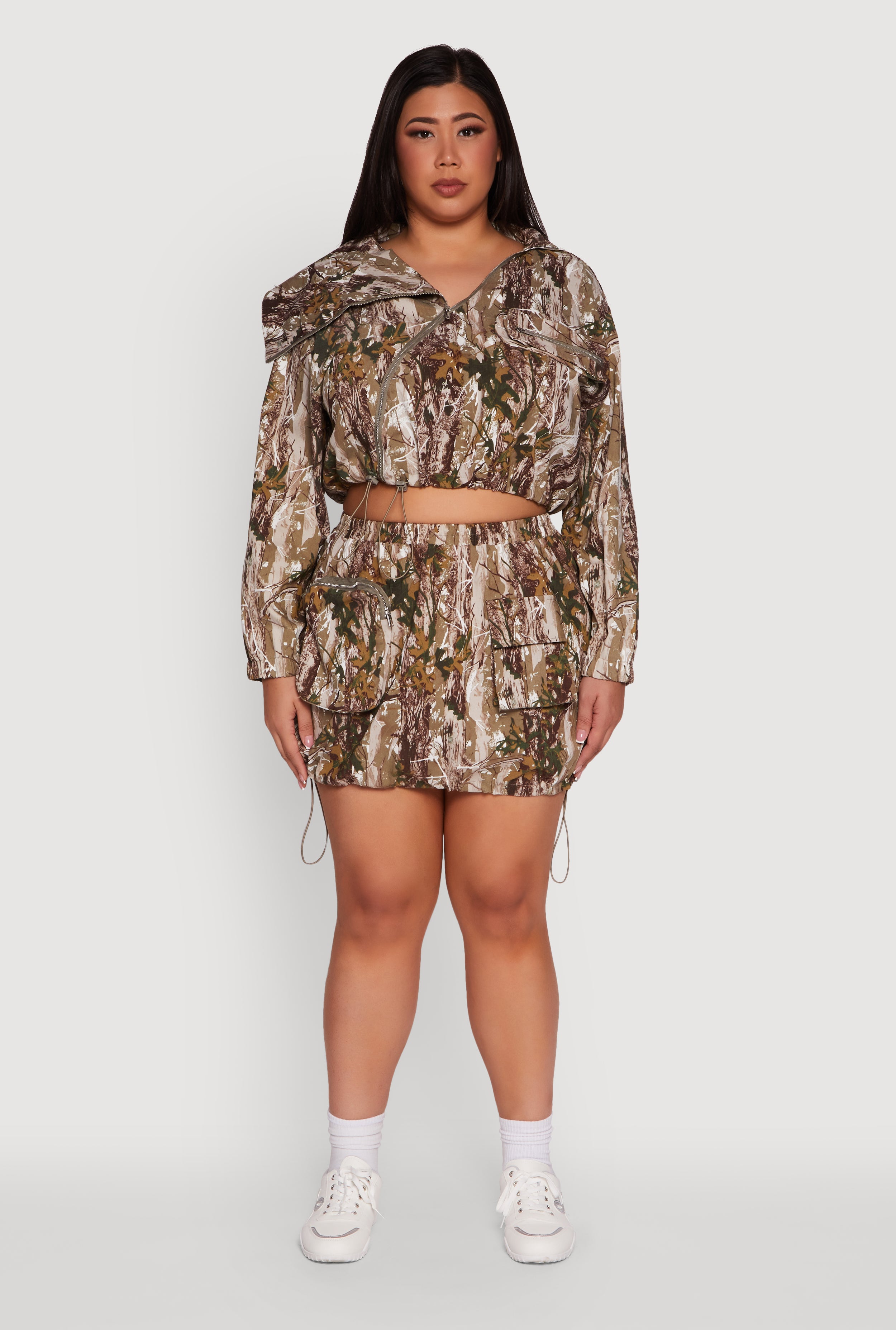 Plus Size Hunter Camo Drawstring Hem Cargo Mini Skirt