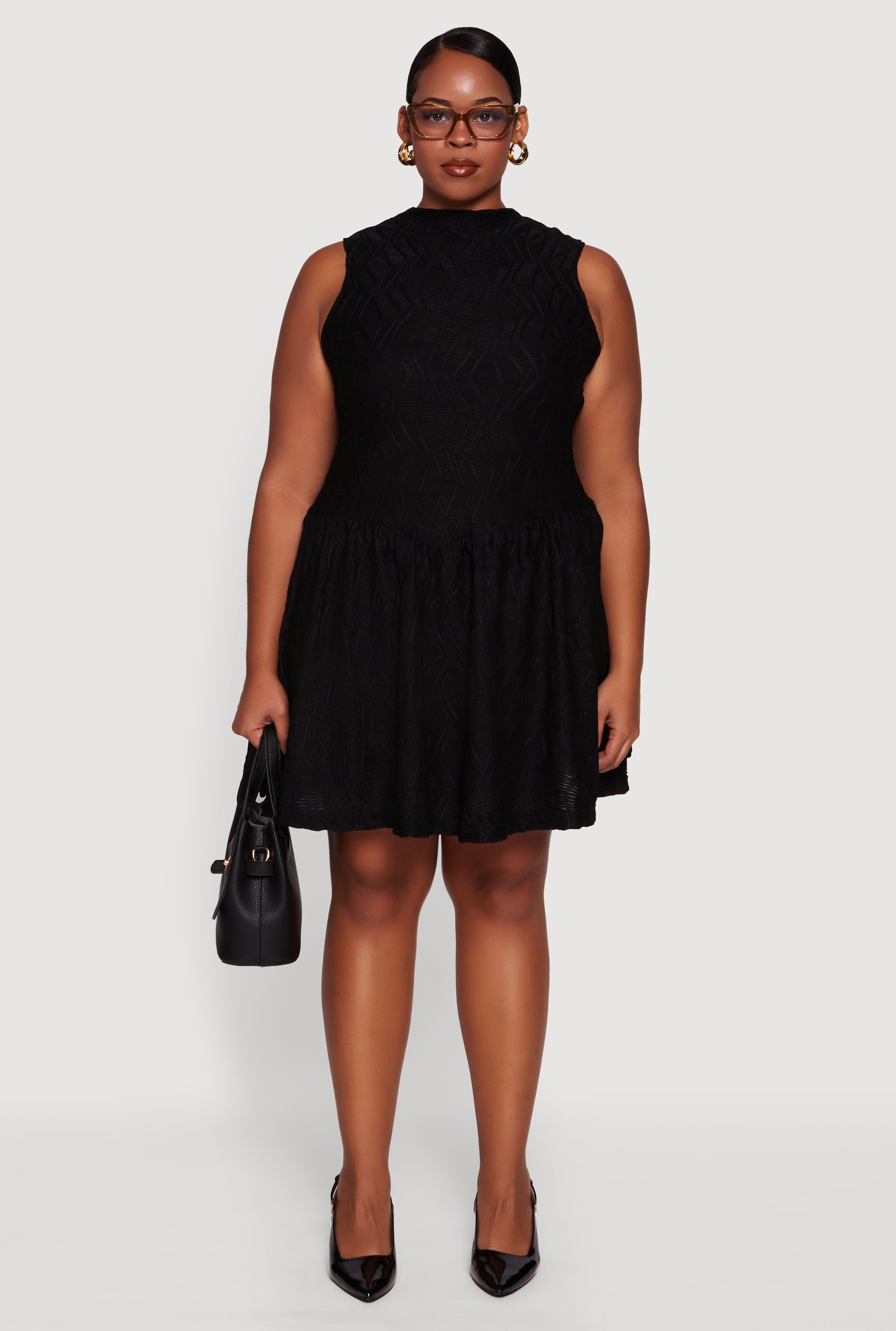 Plus Size Textured Knit High Neck Sleeveless Skater Dress