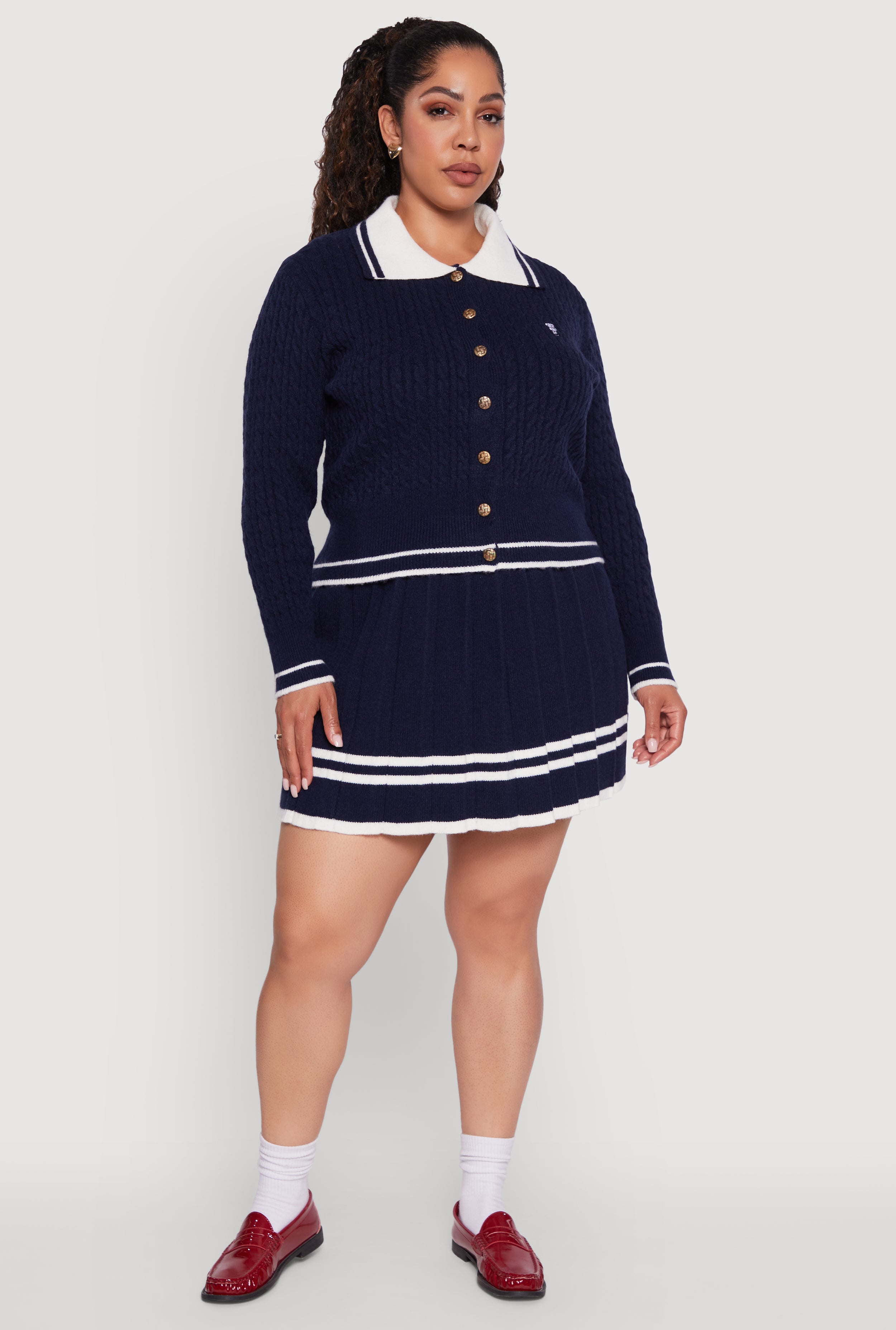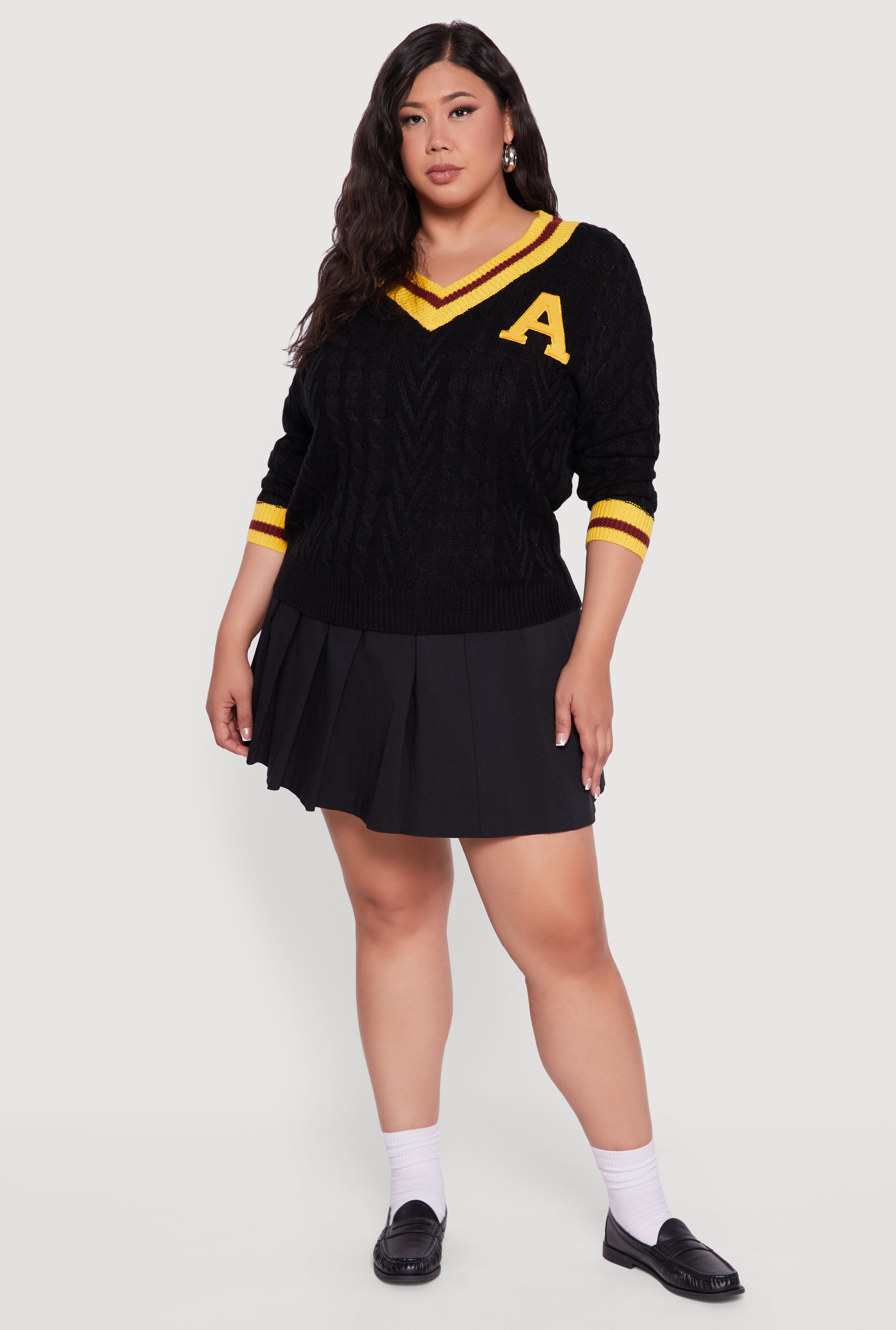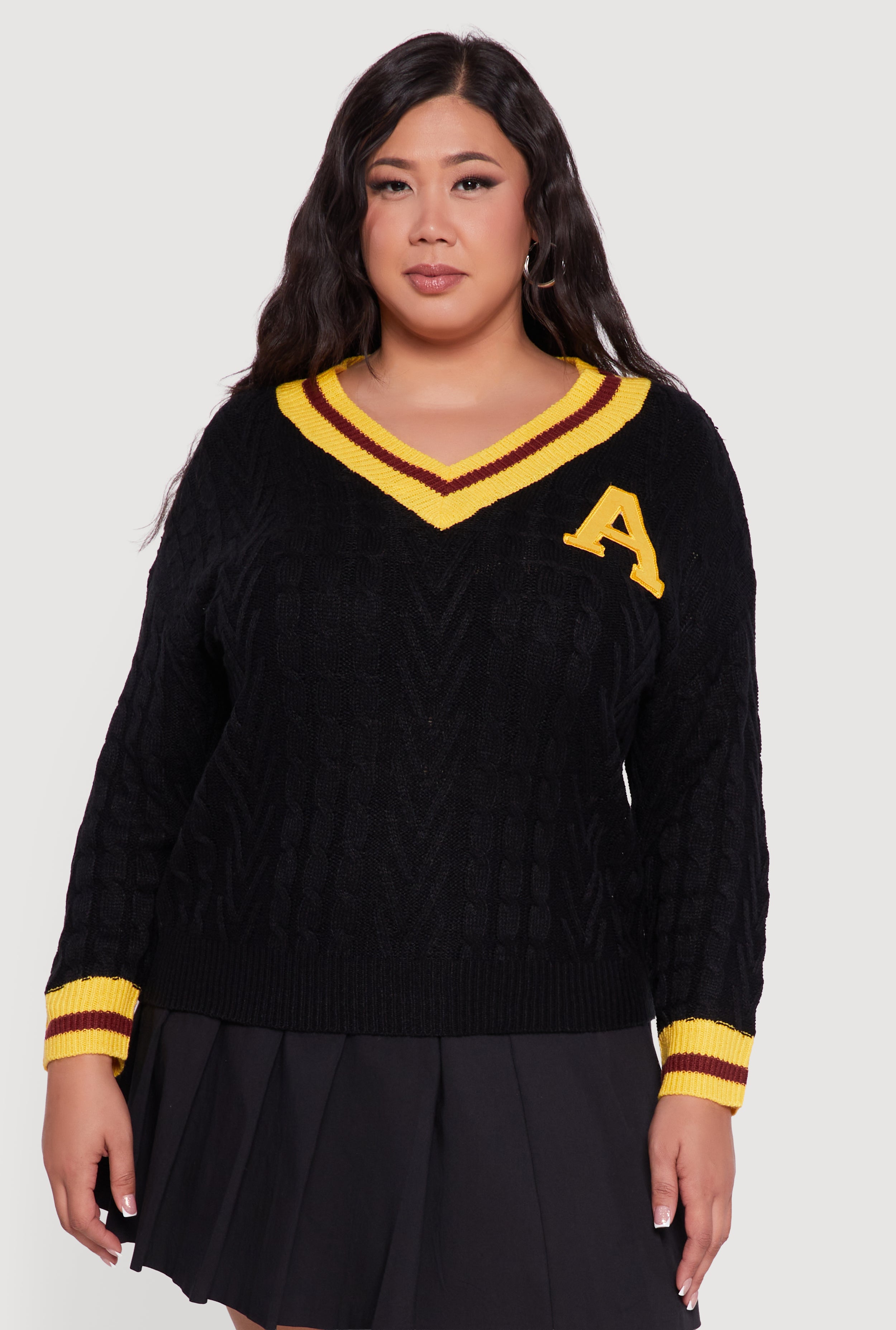 Plus Size Bear Patch Graphic Varsity Stripe Cardigan