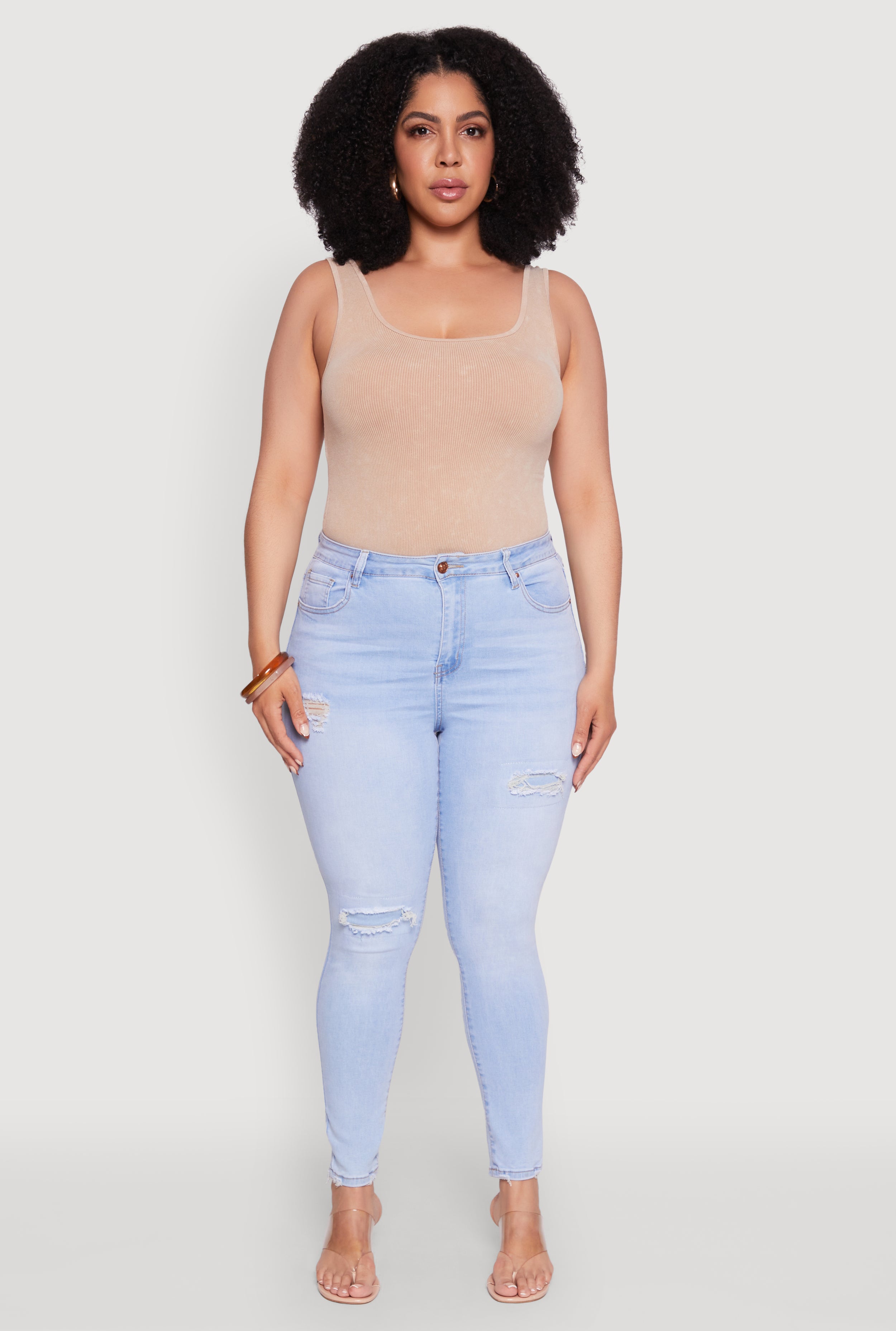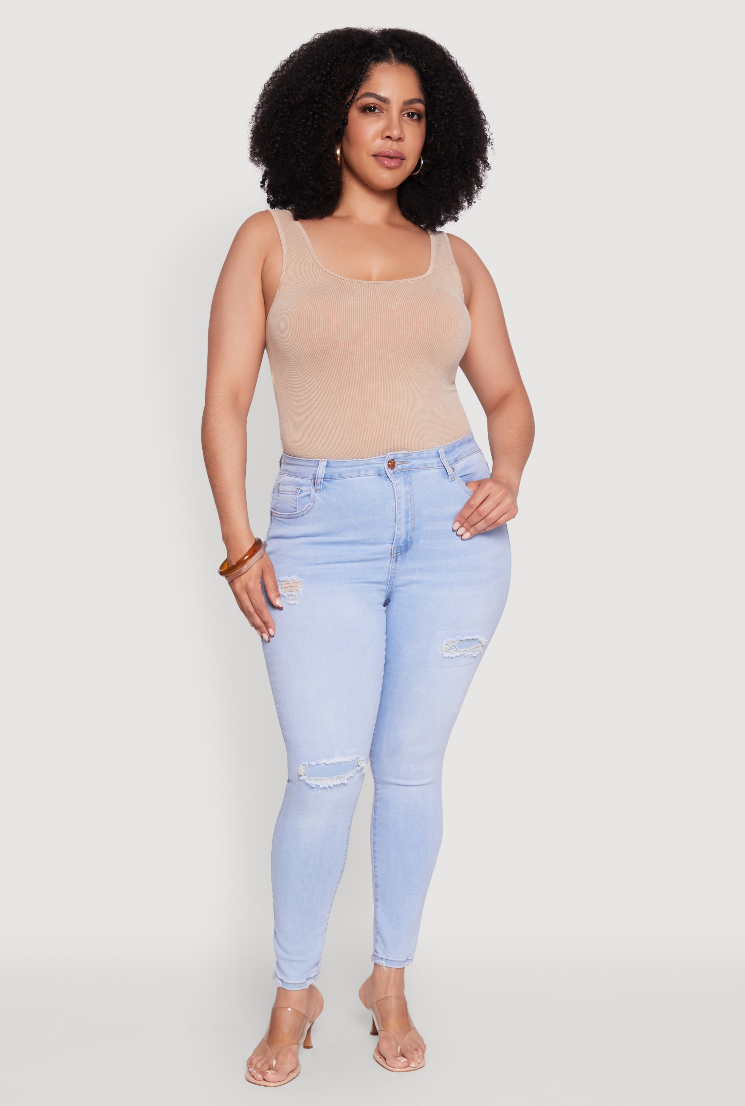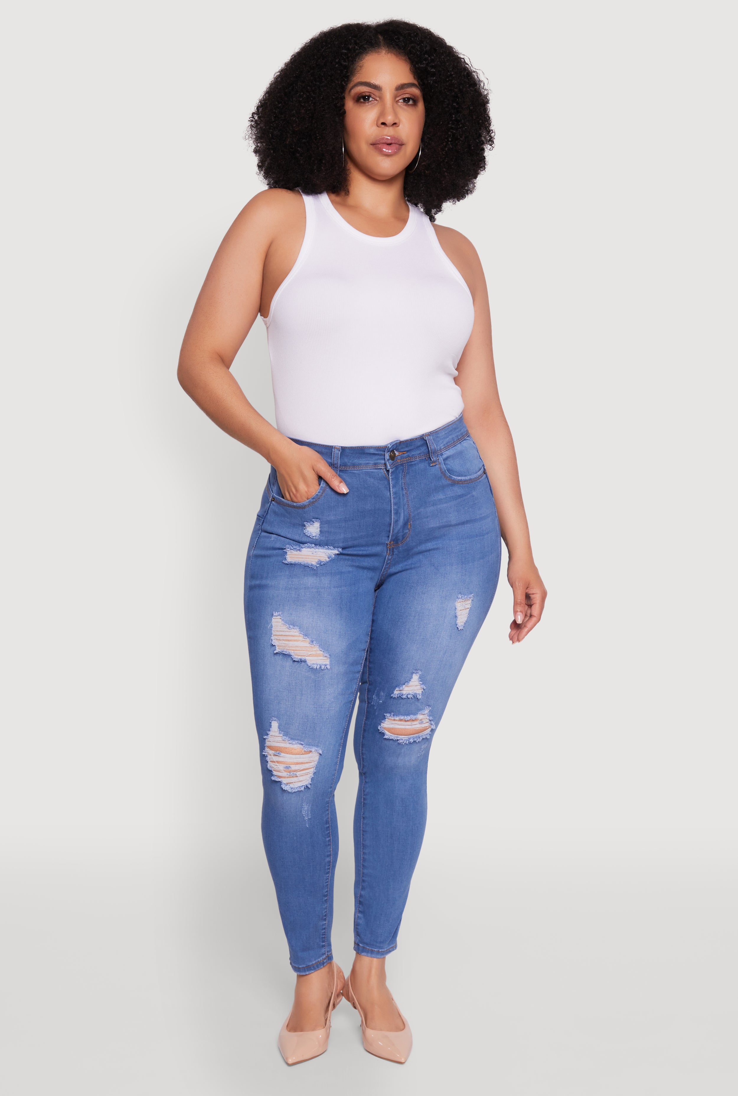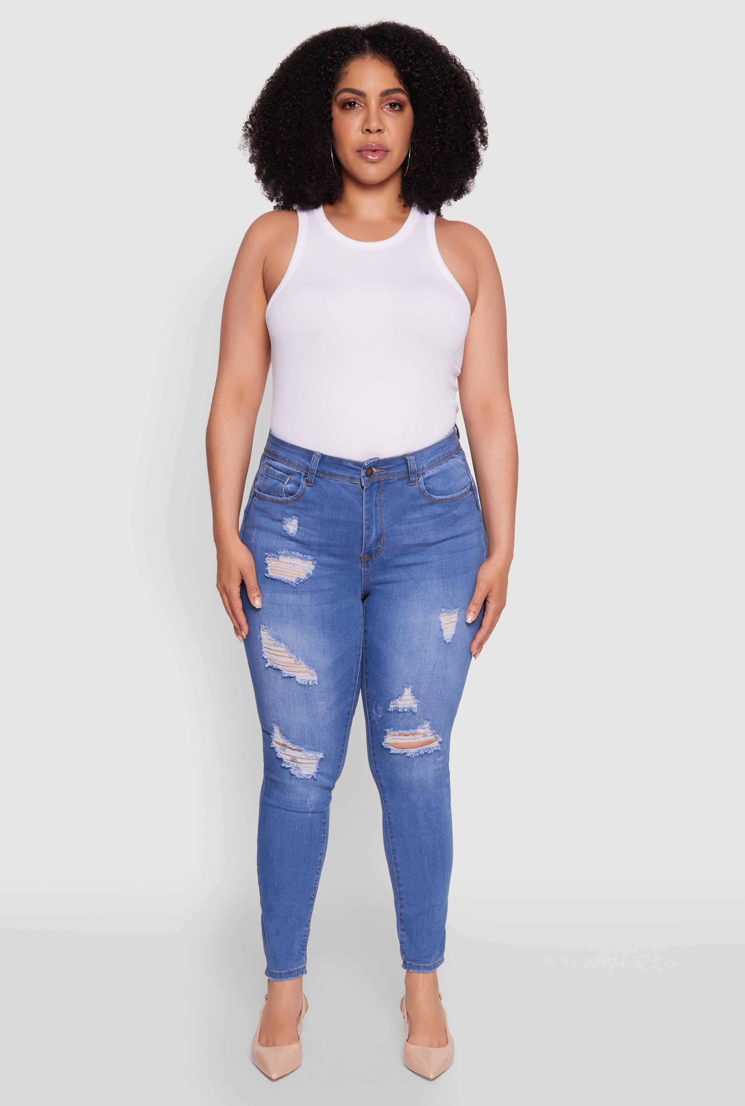 Plus Size WAX High Waisted Distressed Skinny Jeans