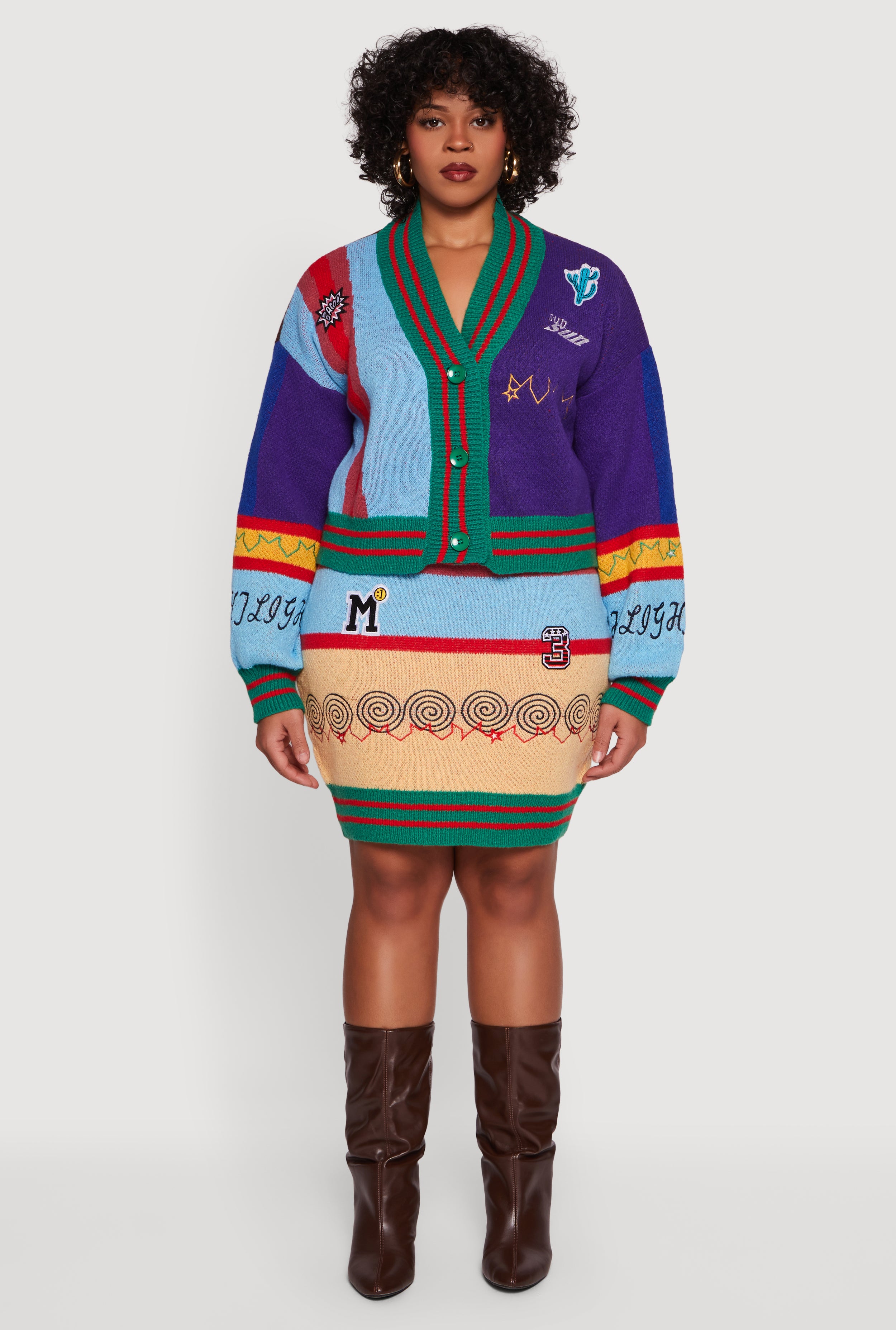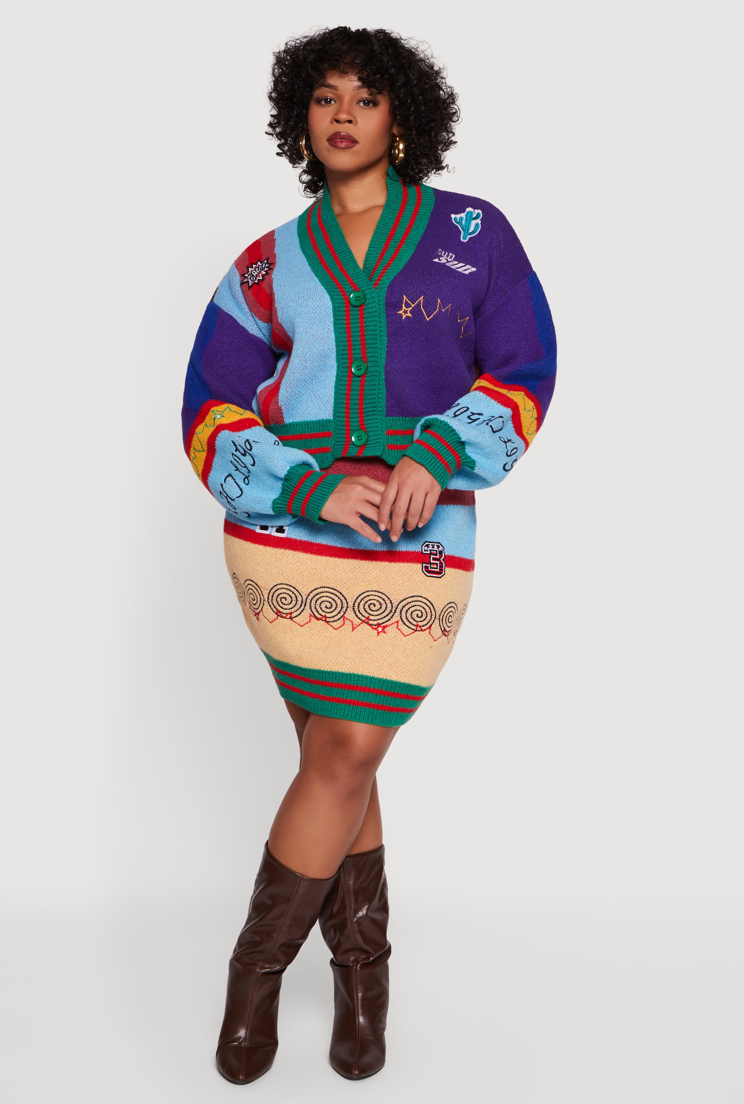 Plus Size Graphic Patch Color Blocked Knitted Mini Skirt