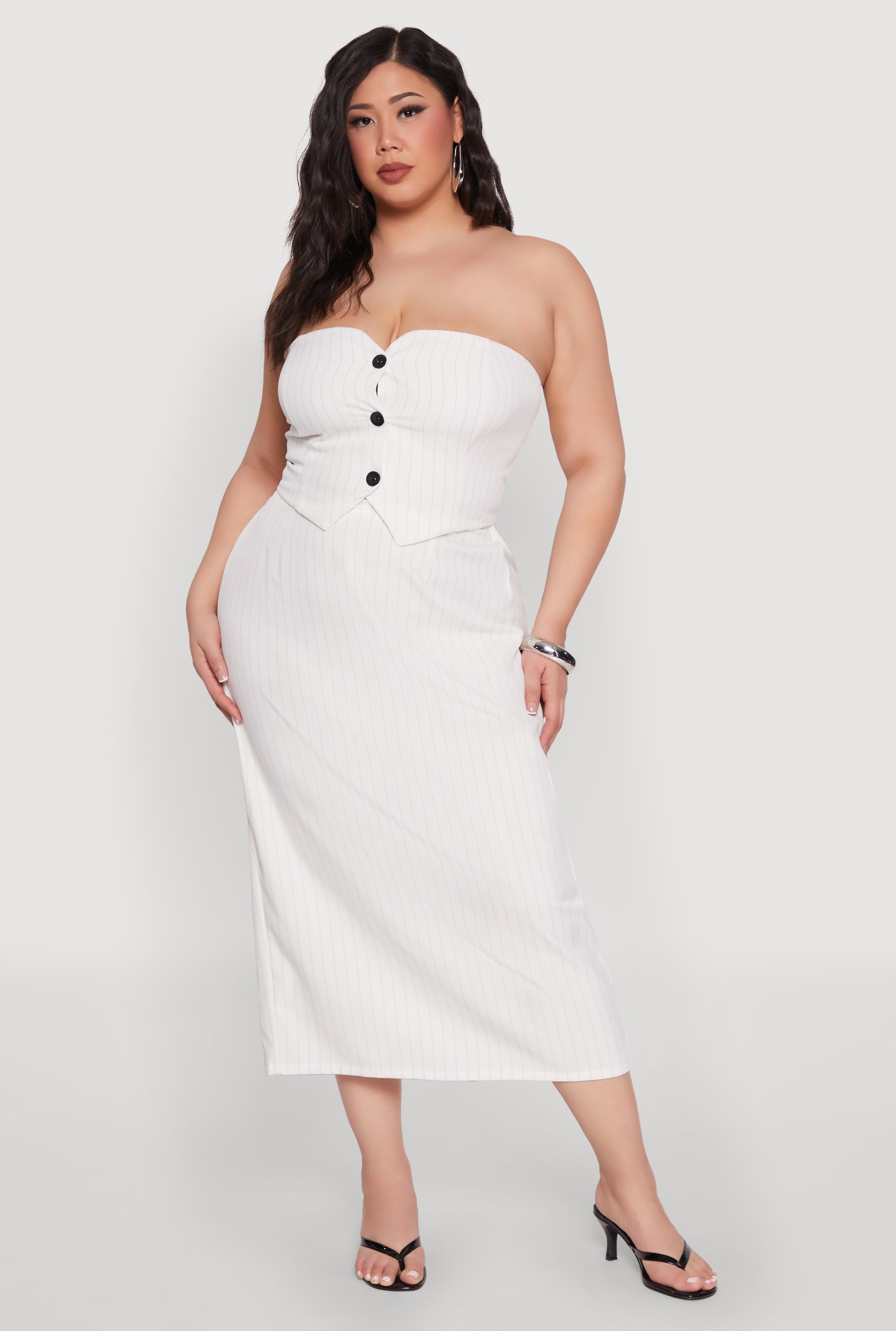 Plus Size Pinstripe High Waist Skirt