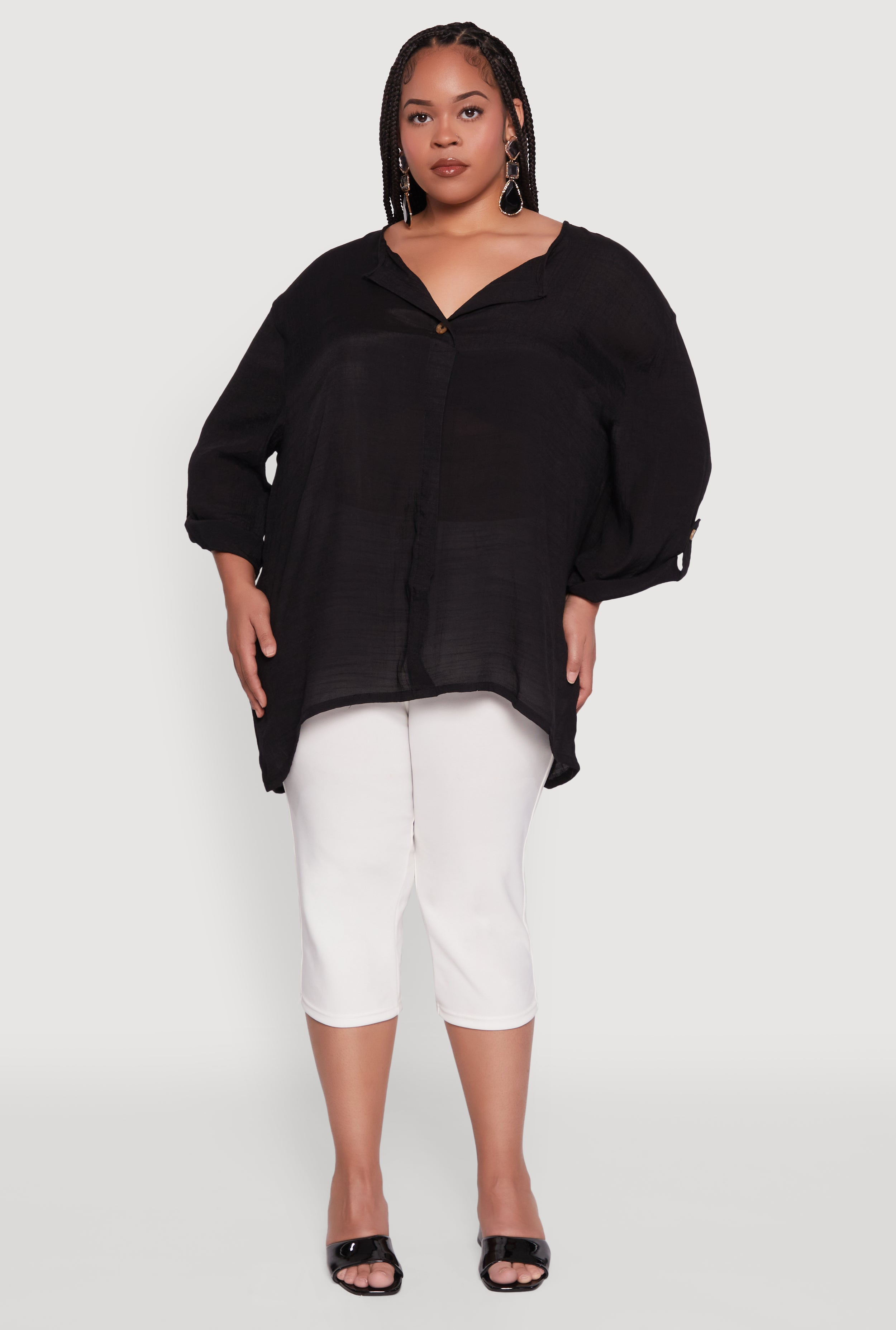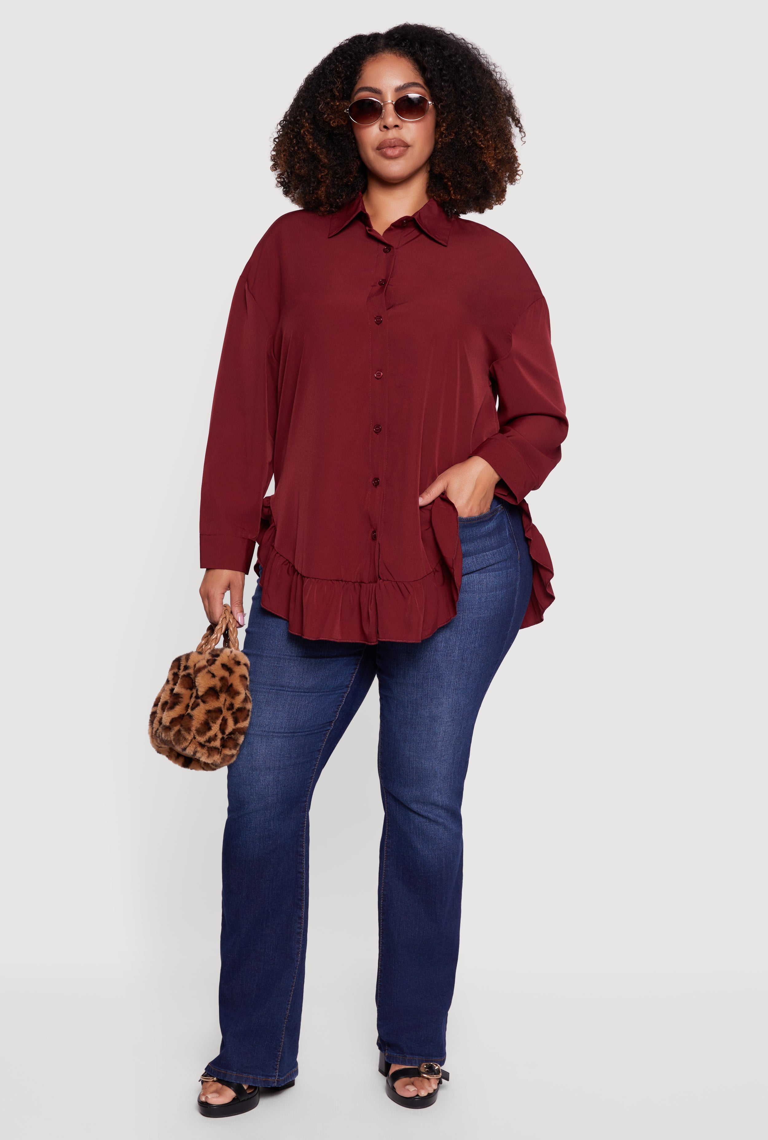 Plus Size Flounce Hem Button Front Shirt