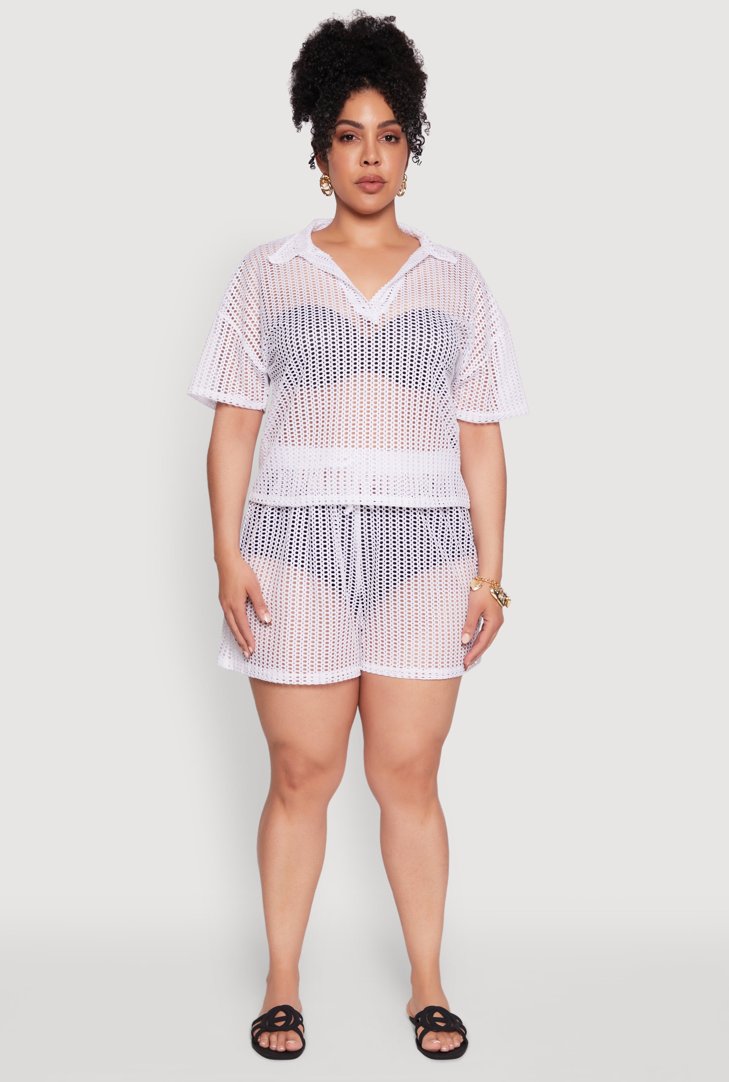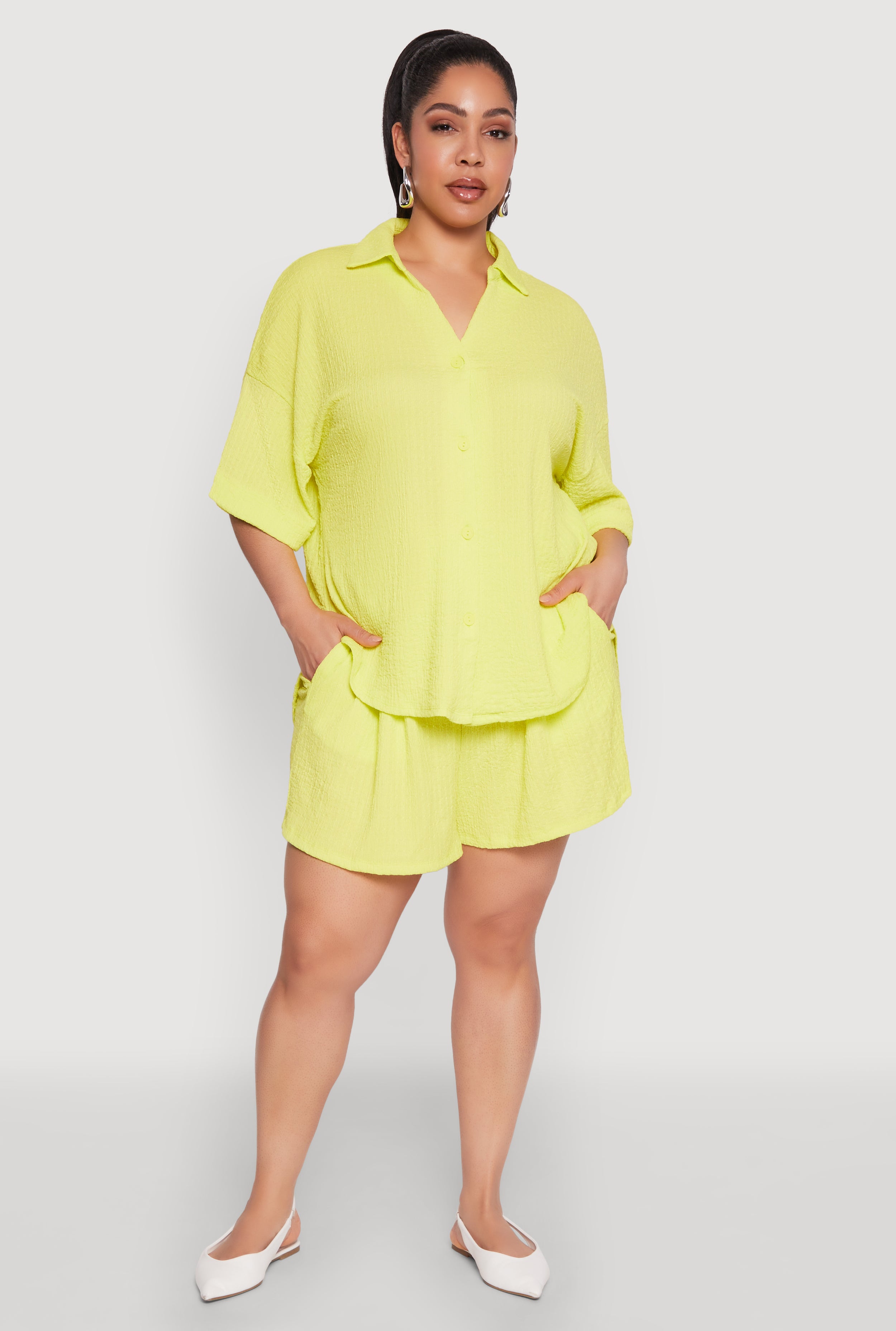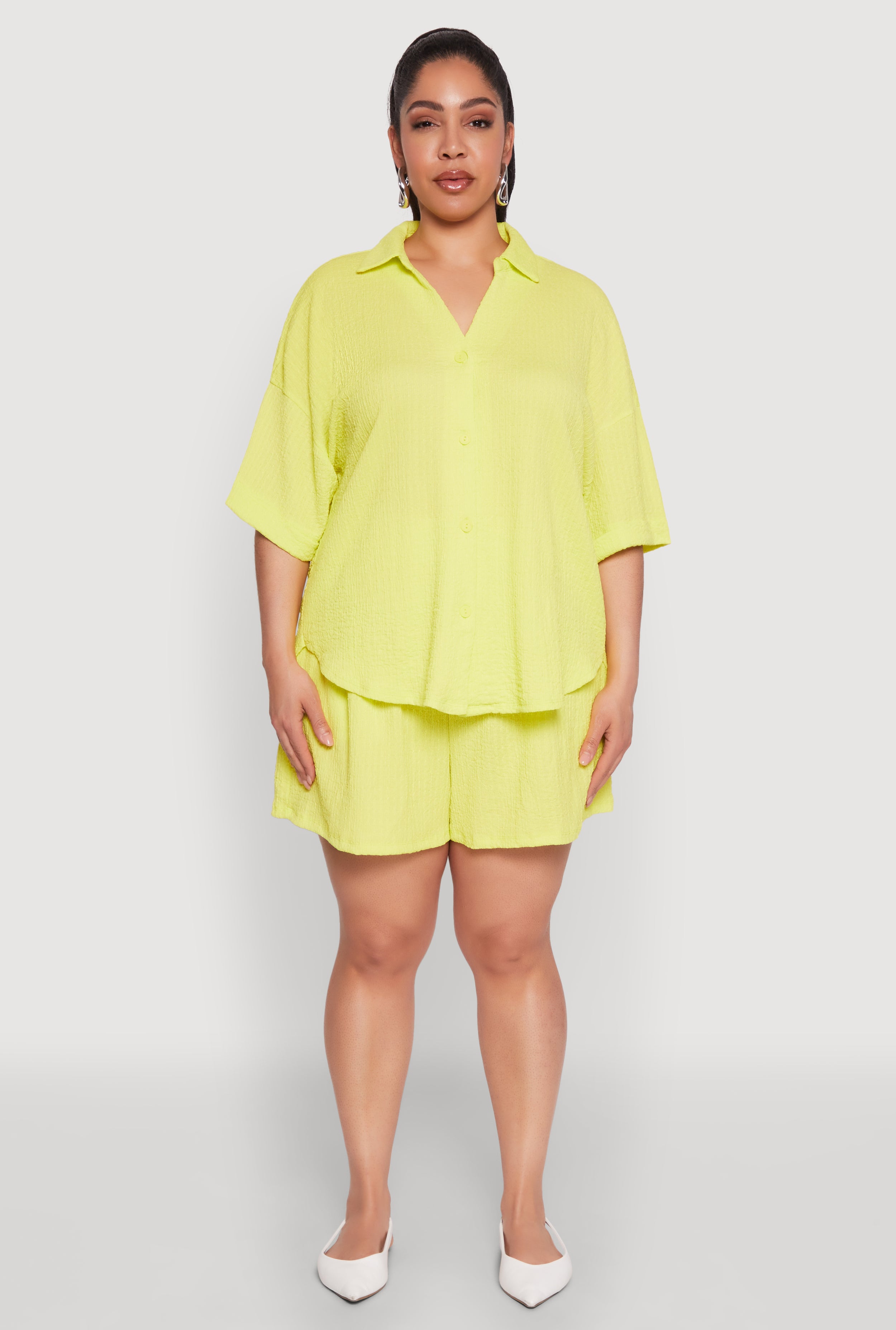 Plus Size Textured Knit Oversized Shirt